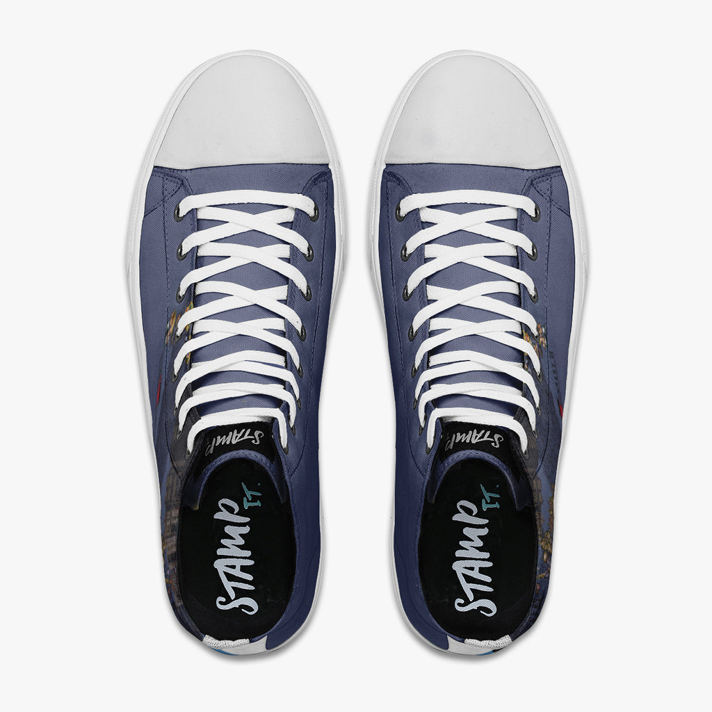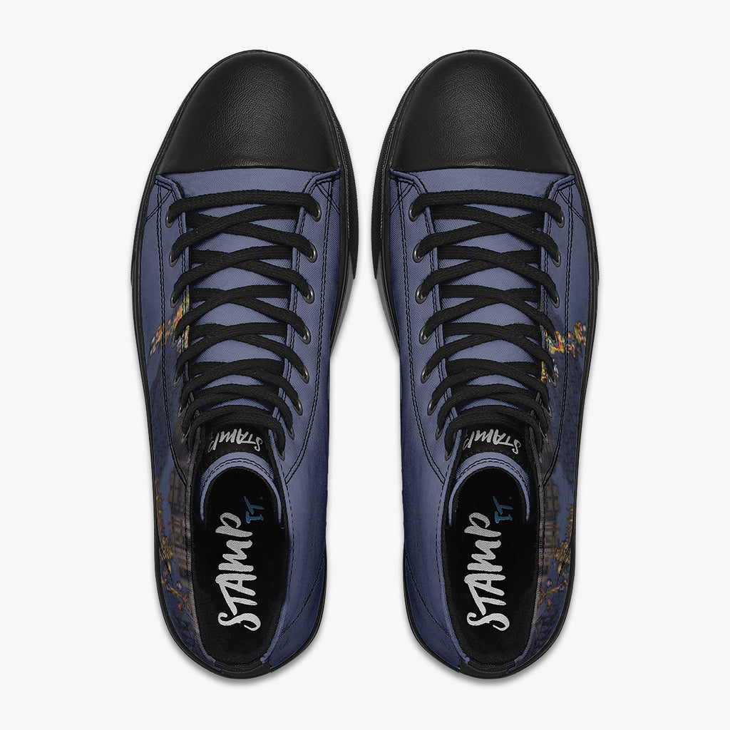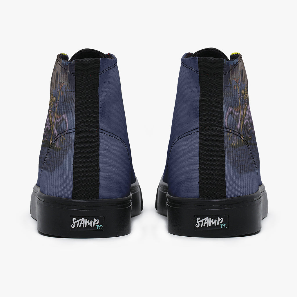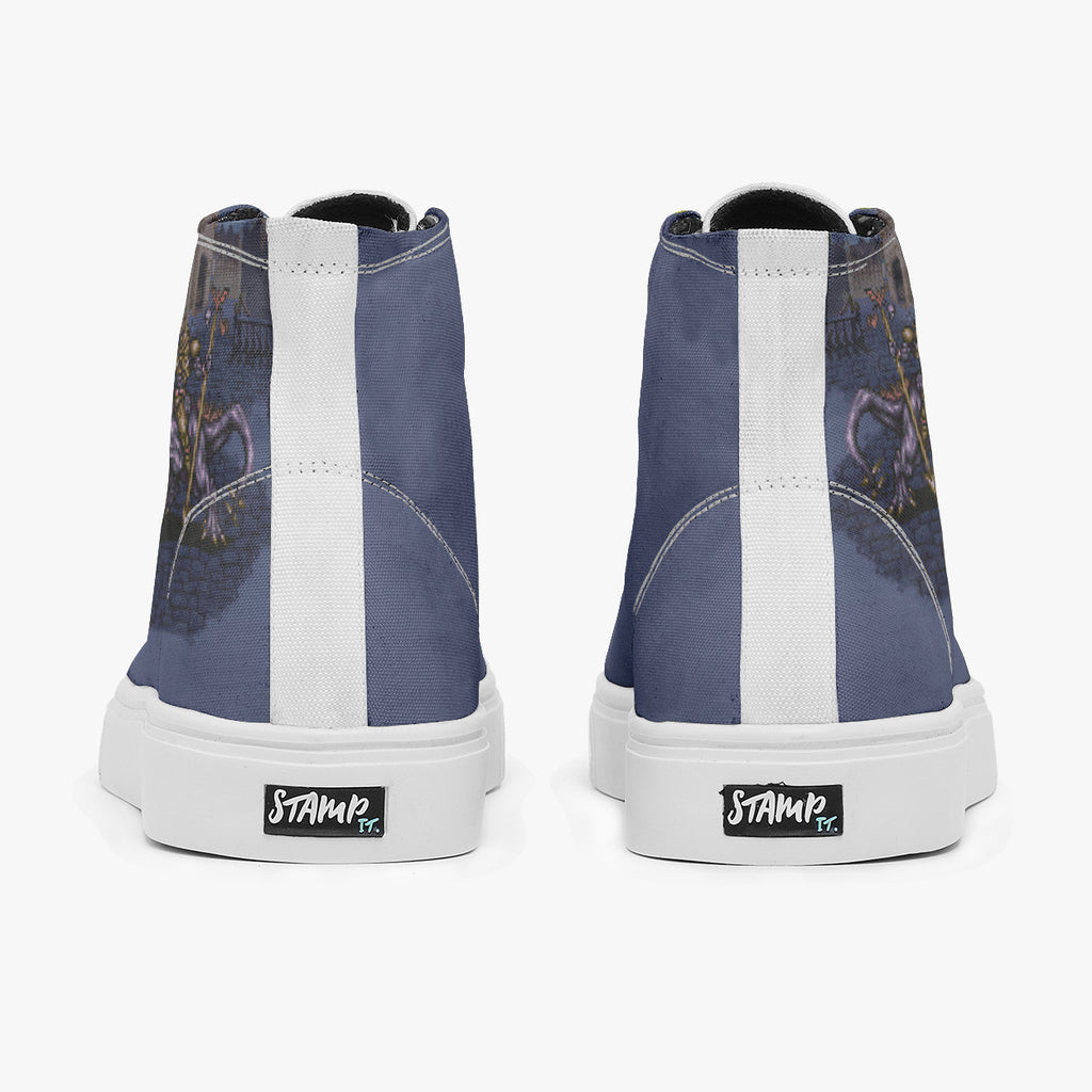 Tênis Cano Alto Cinza Jogos Clássicos Final Fantasy 6 The Battle Games, confeccionado em lona, com cores e estampas exclusivas.