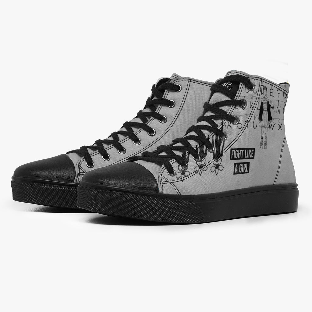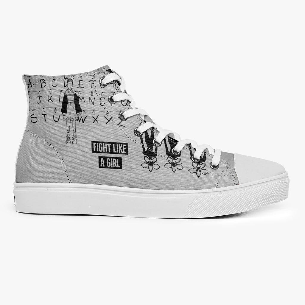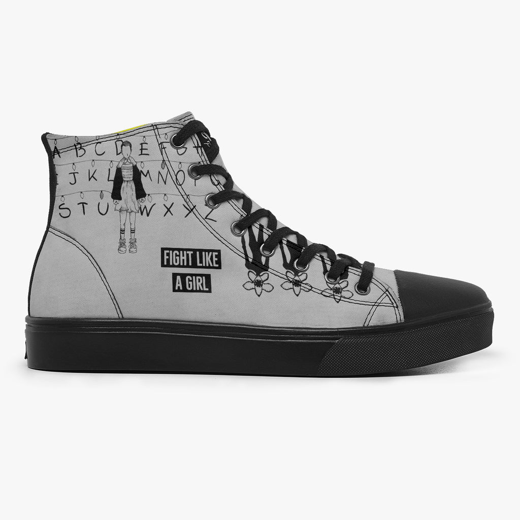 Tênis Cano Alto Cinza Stranger Things Fight Like Girl Upside Down Séries e Filmes