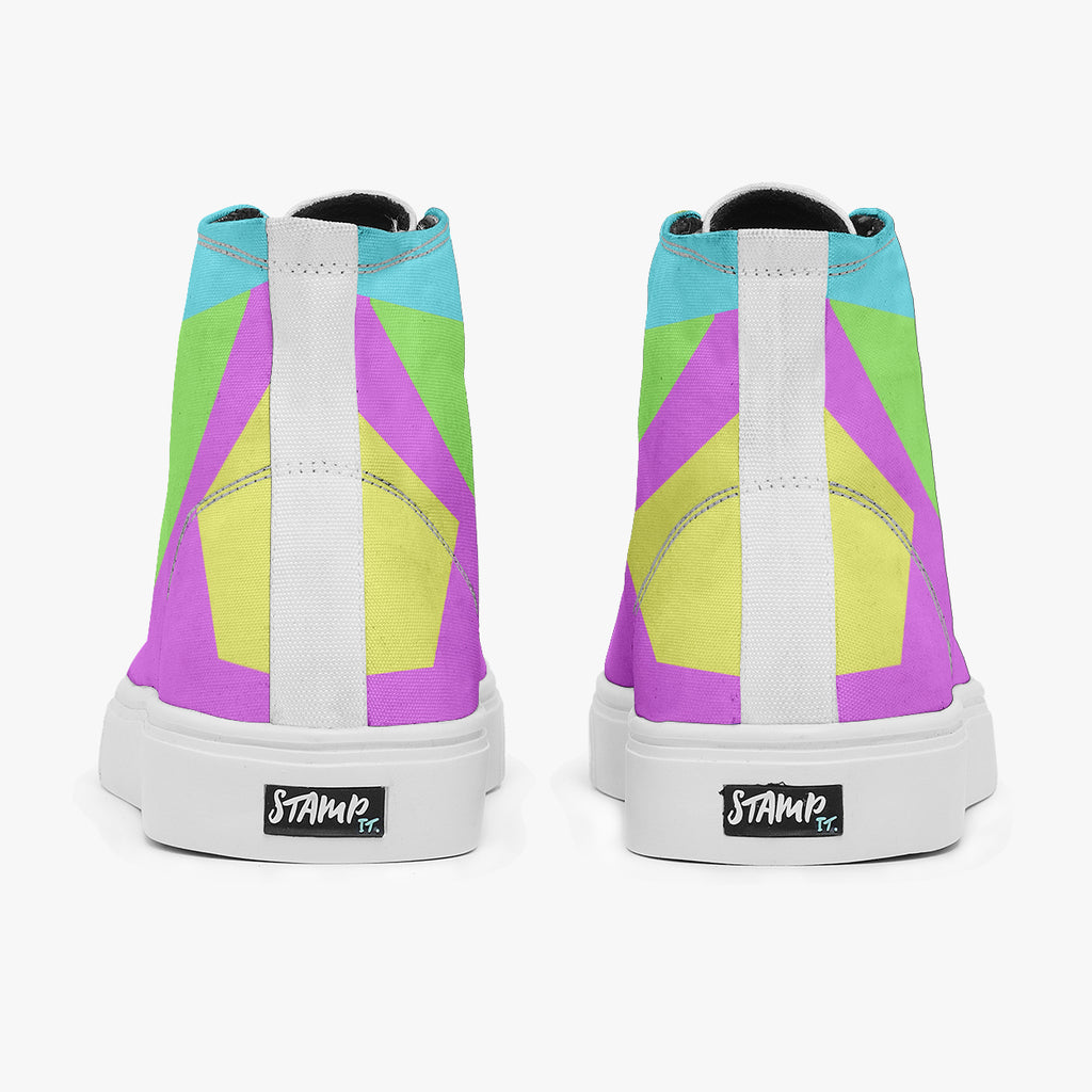 Tênis Cano Alto Colorido Formas Geométricas Abstratas Cubismo