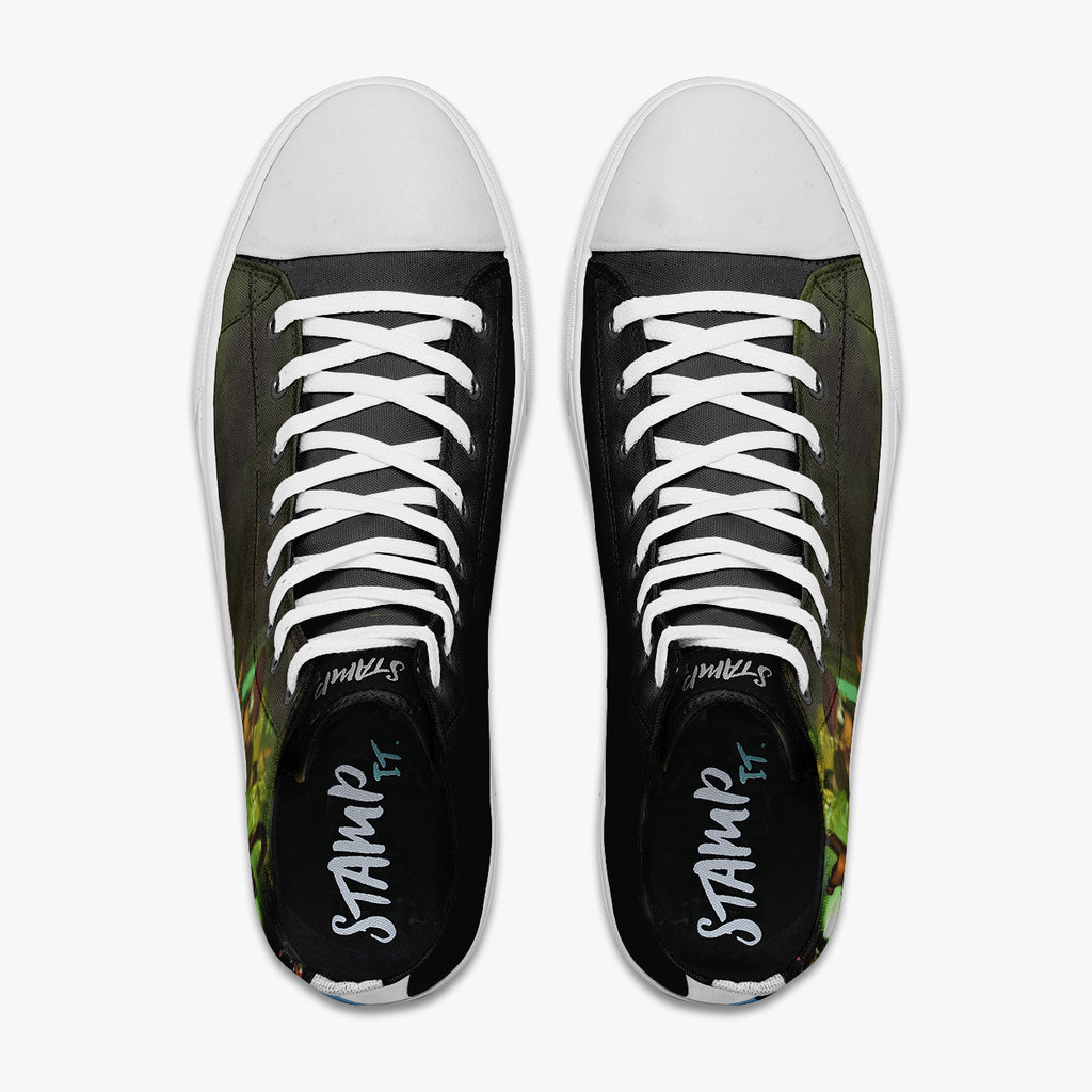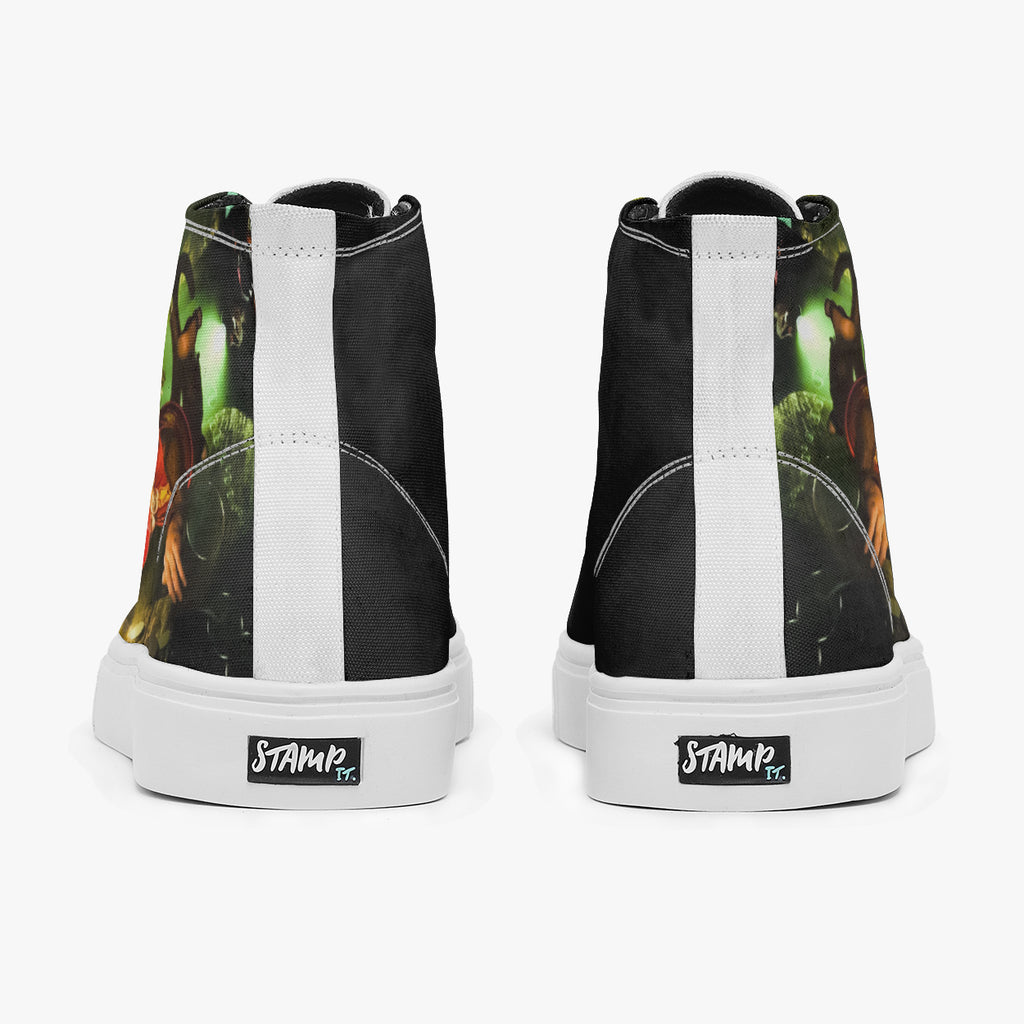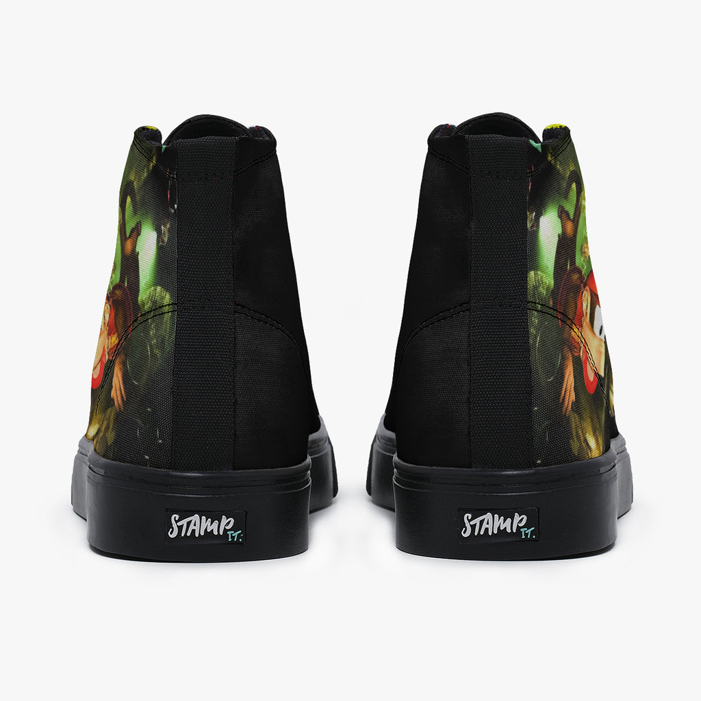 Tênis Cano Alto Colorido Jogos Clássicos Donkey Kong Country 2 Monkeys Games, confeccionado em lona, com cores e estampas exclusivas.