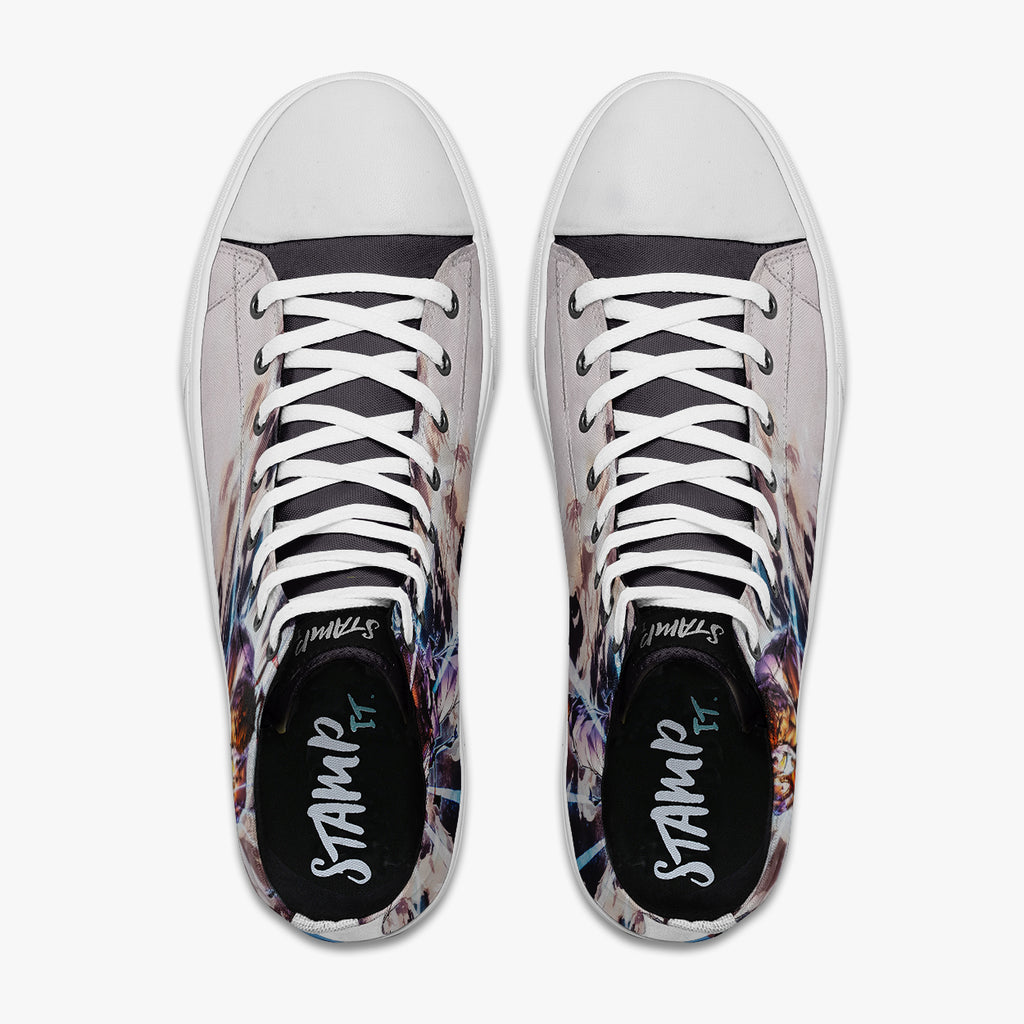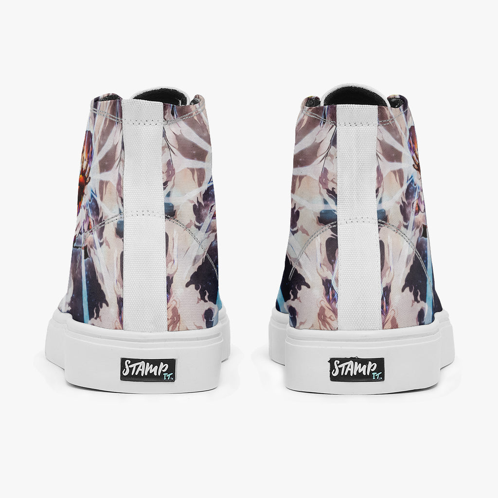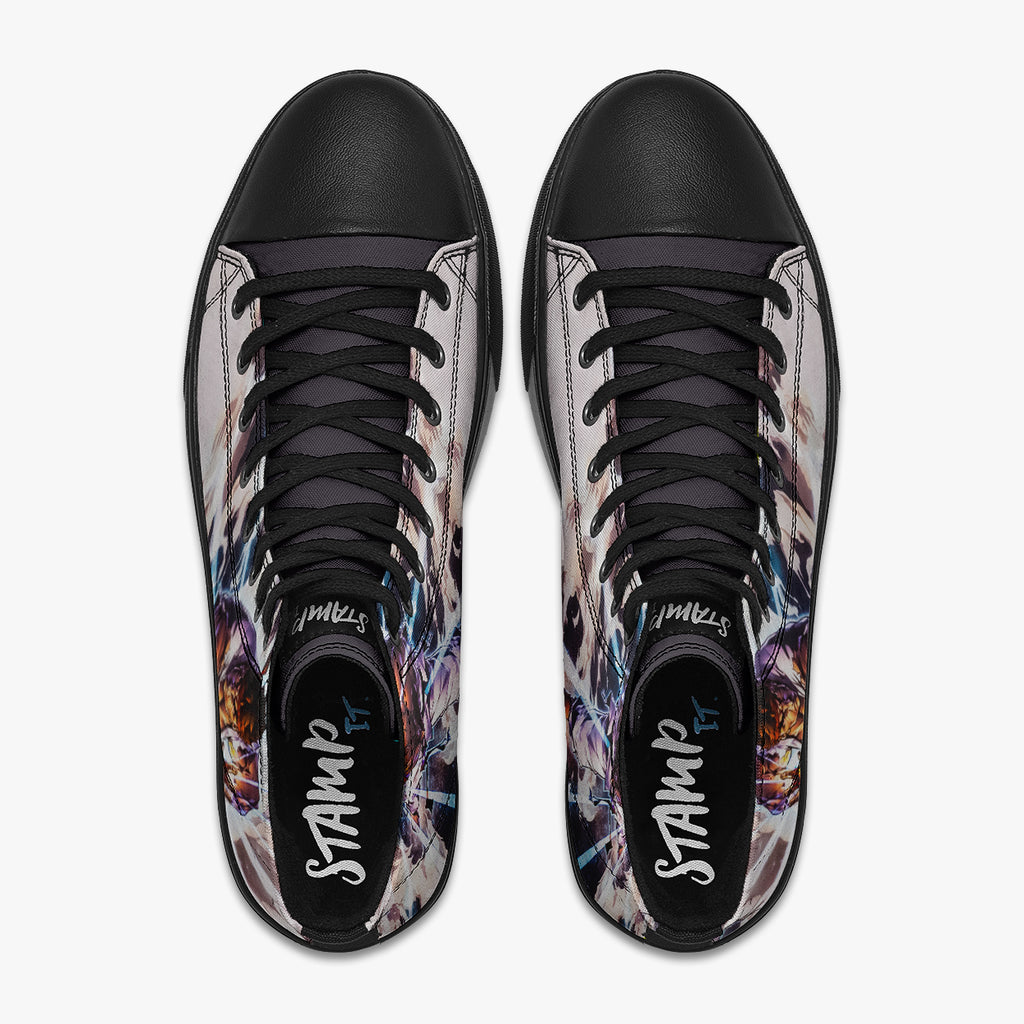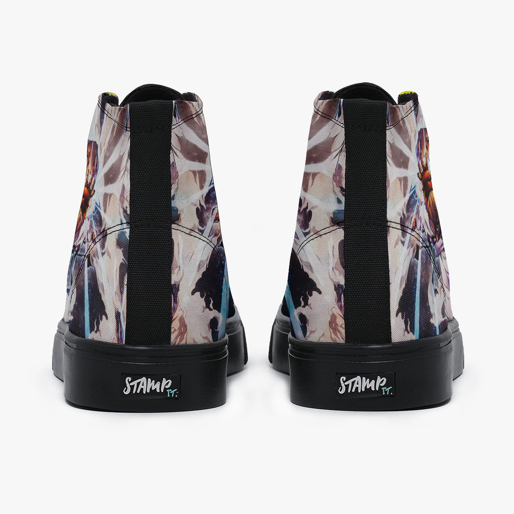 Tênis Cano Alto Colorido Jogos Clássicos Street Fighter Ryu Hadouken! Games, confeccionado em lona, com cores e estampas exclusivas.