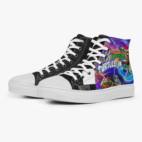 Tênis Cano Alto Colorido Jogos Clássicos Teenage Mutant Ninja Turtles 4 Turma Games, confeccionado em lona, com cores e estampas exclusivas.