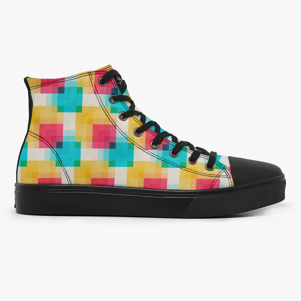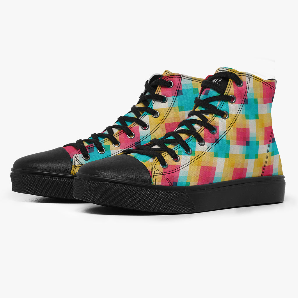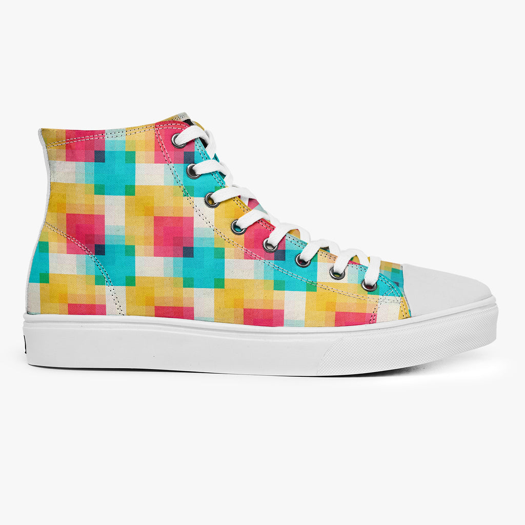 Tênis Cano Alto Colorido Quadriculado Xadrez Abstrato
