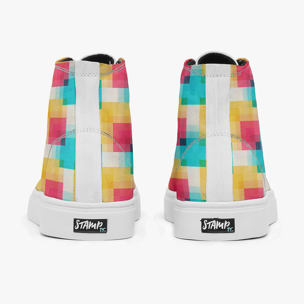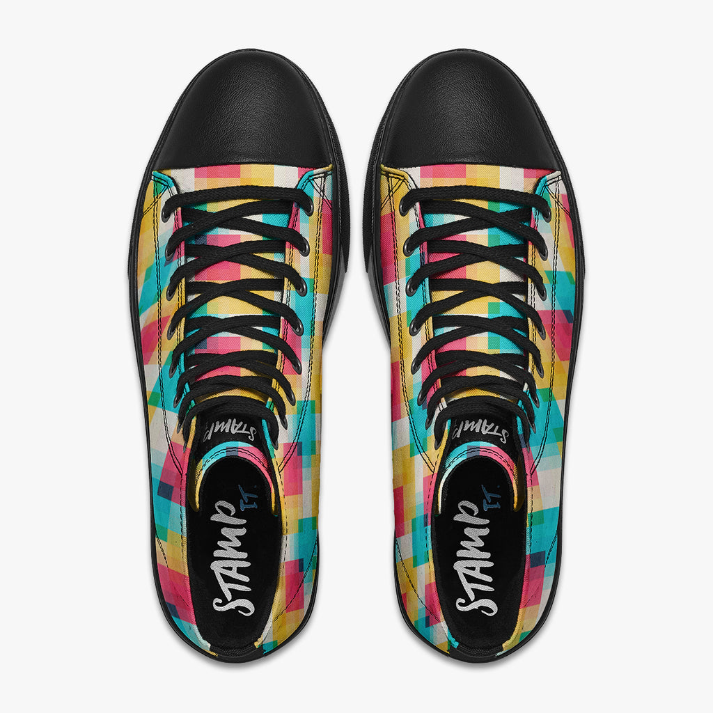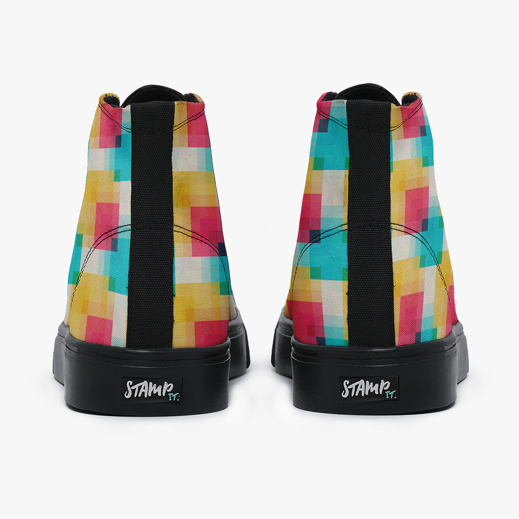 Tênis Cano Alto Colorido Quadriculado Xadrez Abstrato