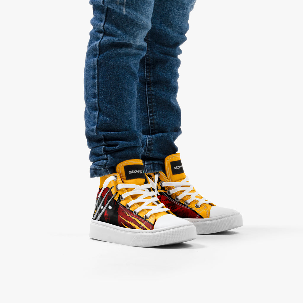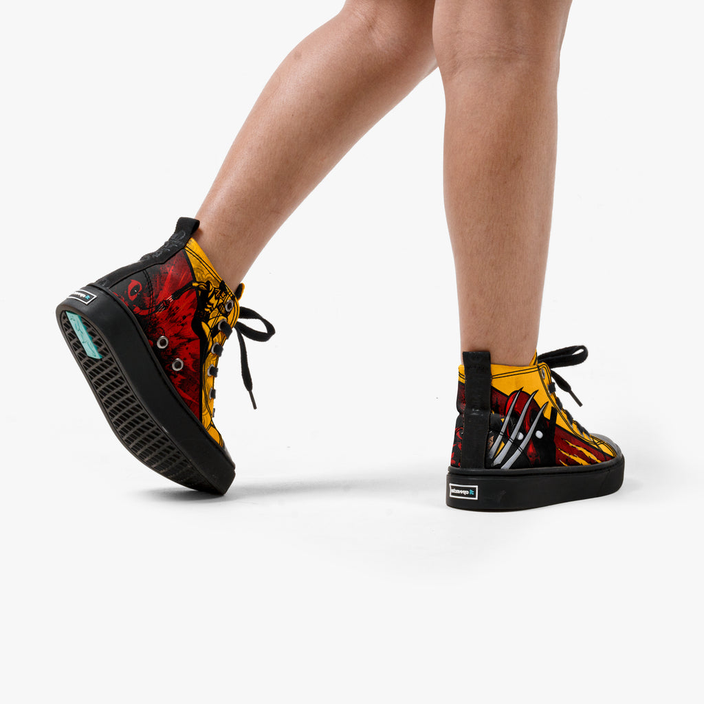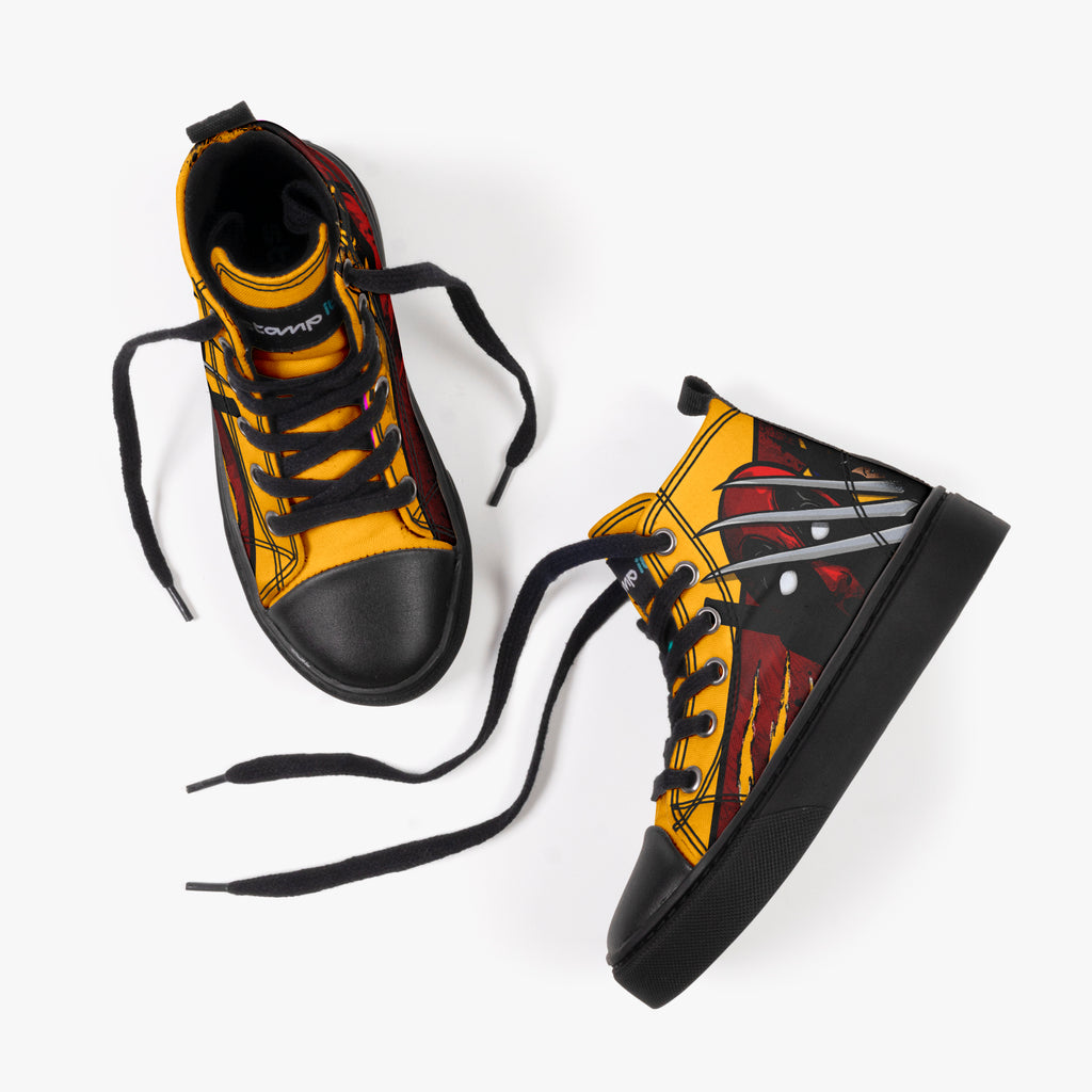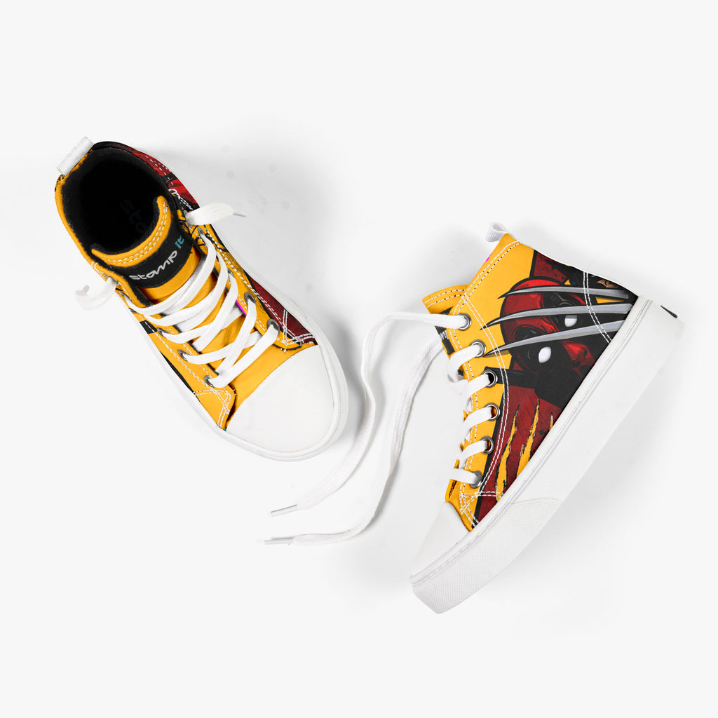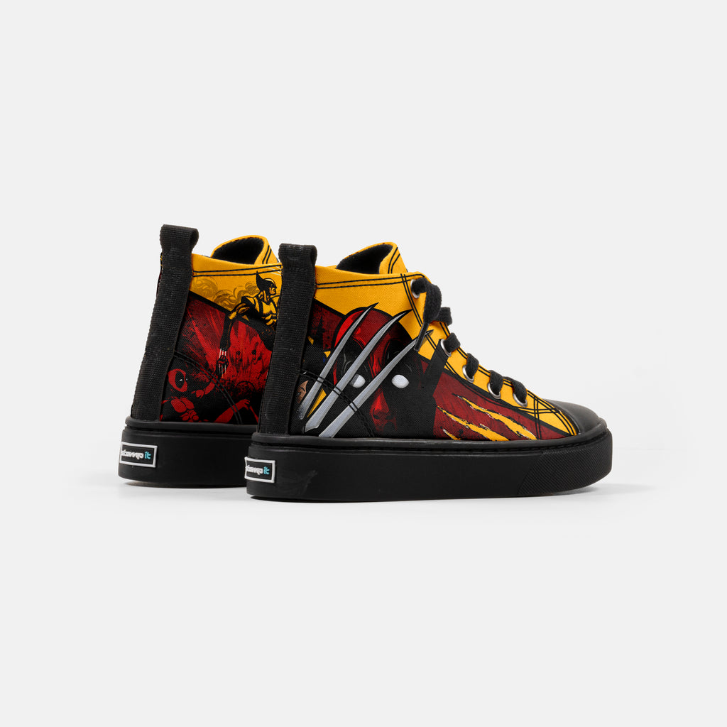 Tênis Cano Alto Infantil Amarelo e Vermelho Deadpool e Wolverine Zamb Fanart