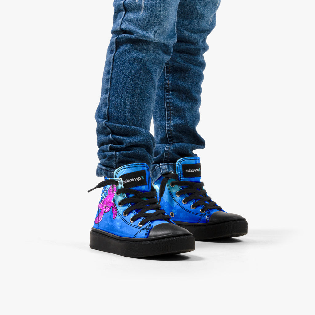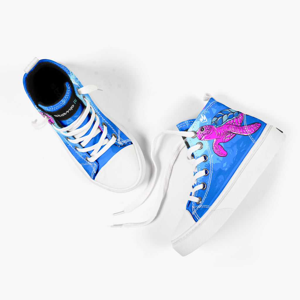 Tênis Cano Alto Infantil Azul Tartaruga Graffiti By Galvão