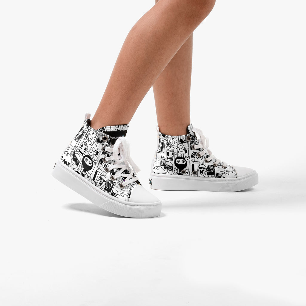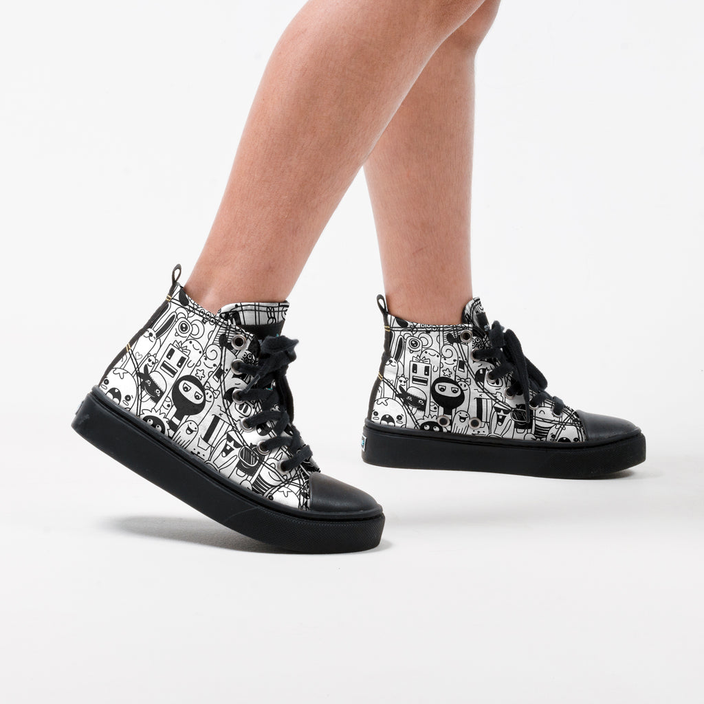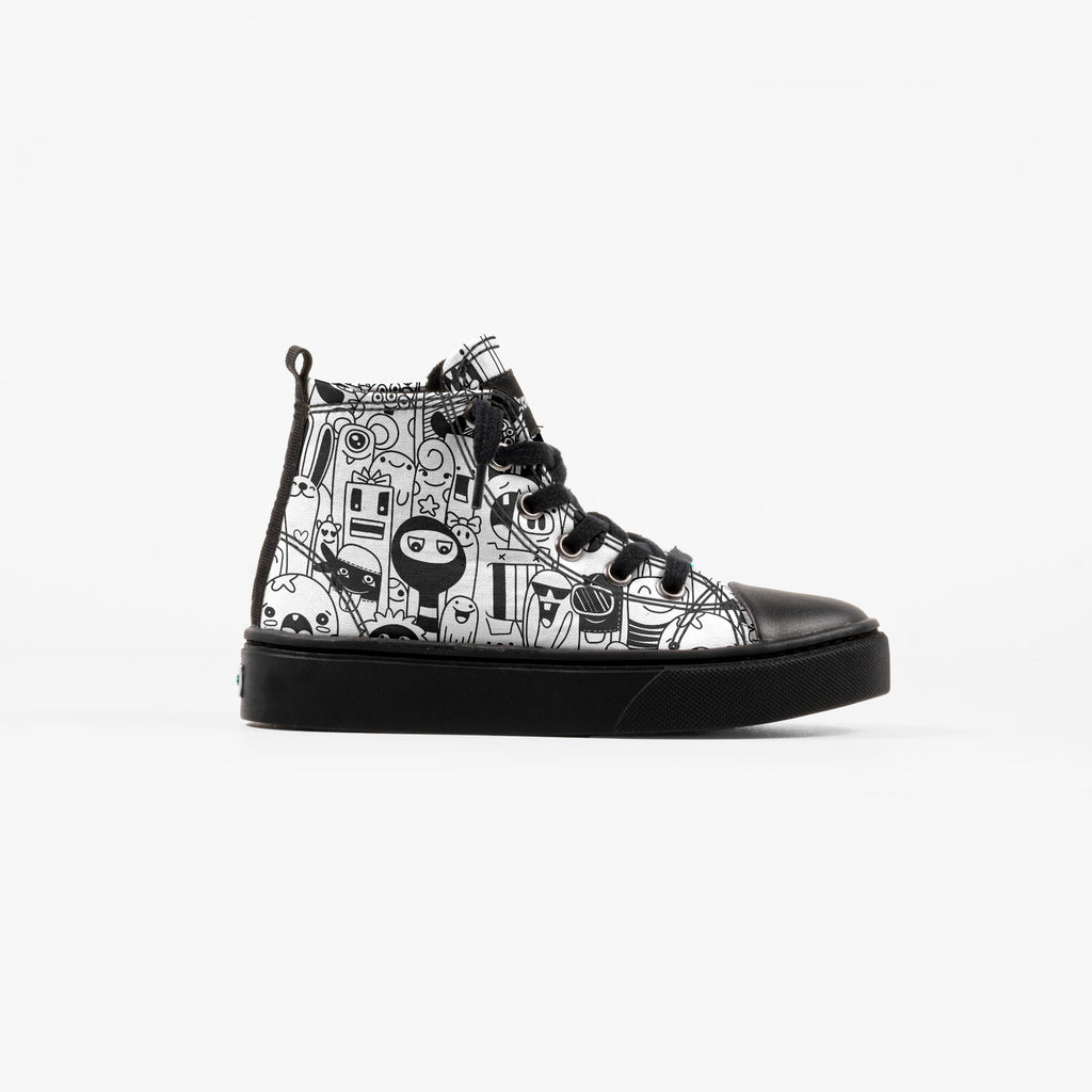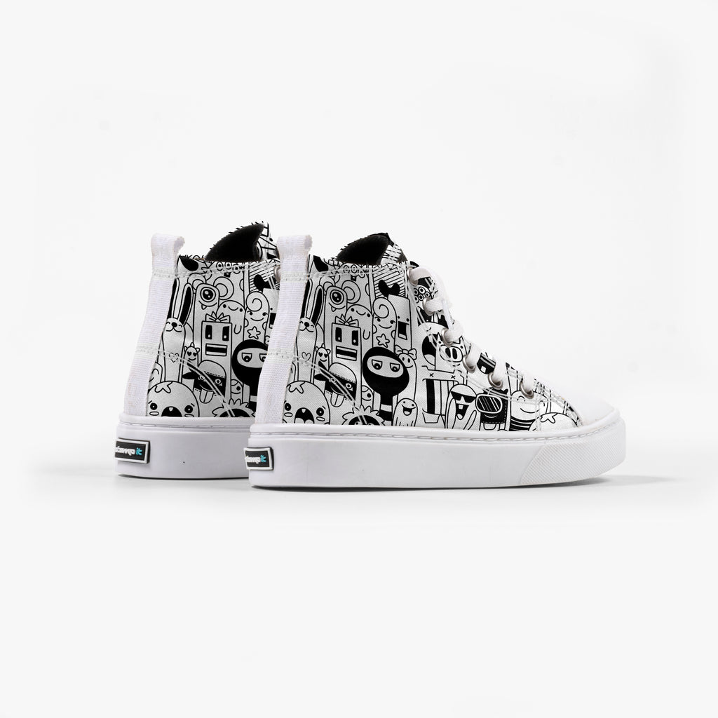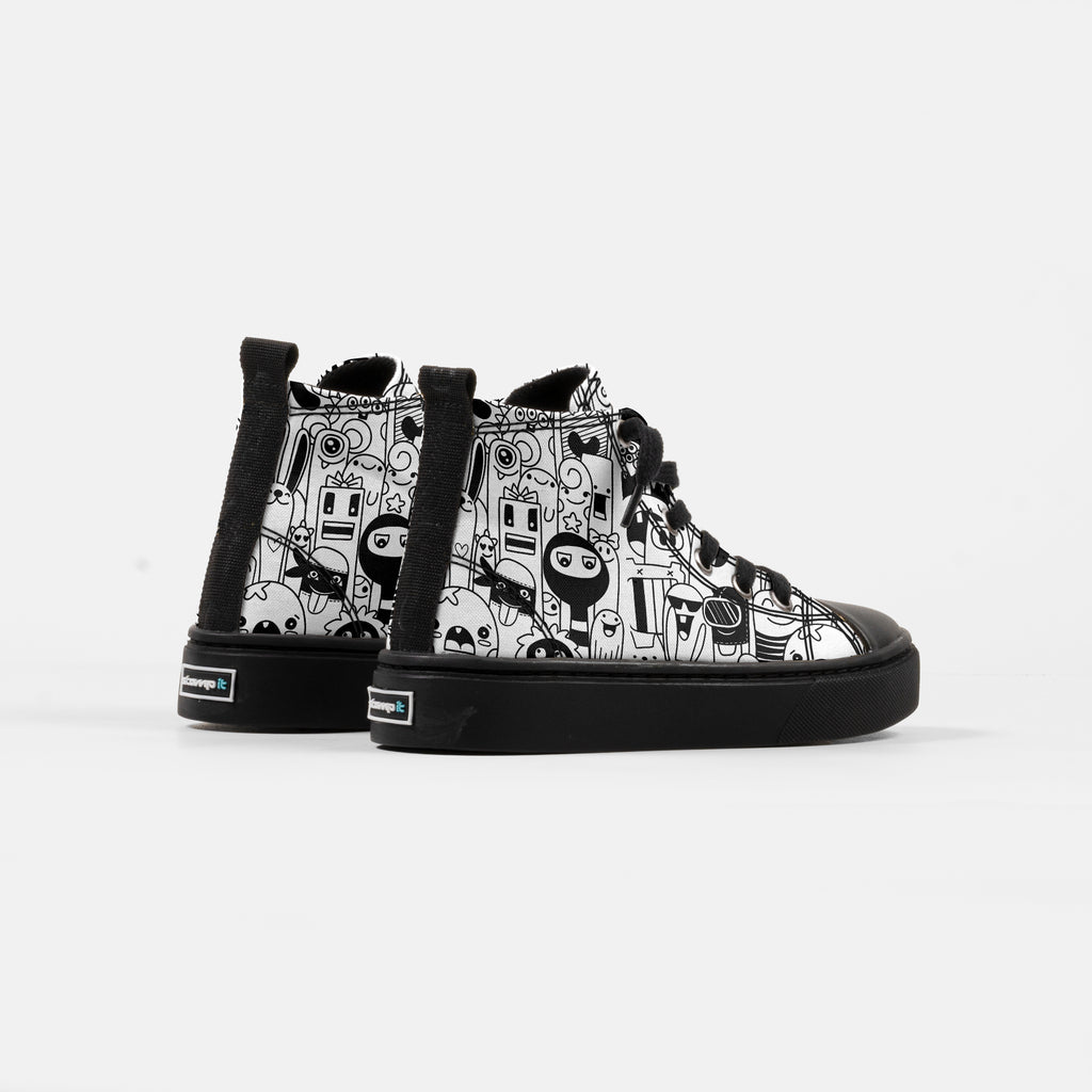 Tênis Cano Alto Infantil Branco e Preto Animais Comics Animais