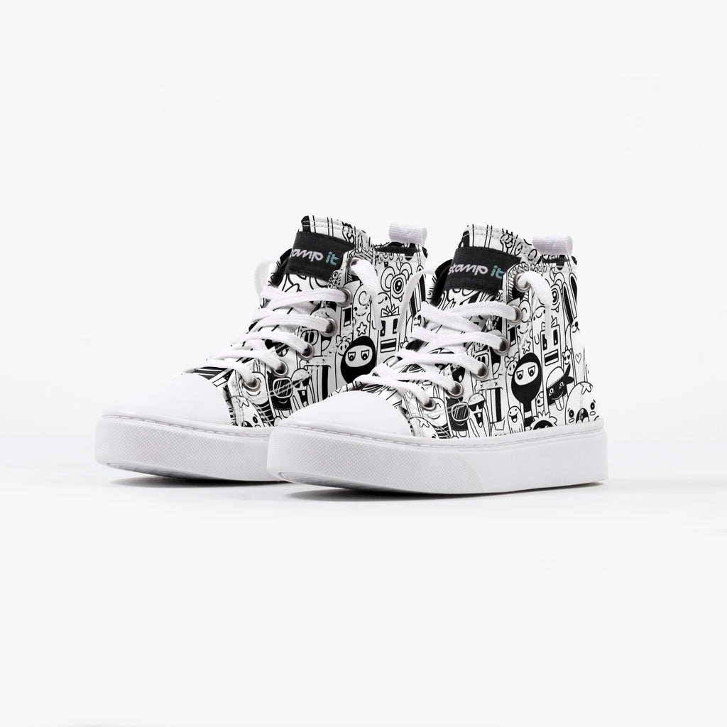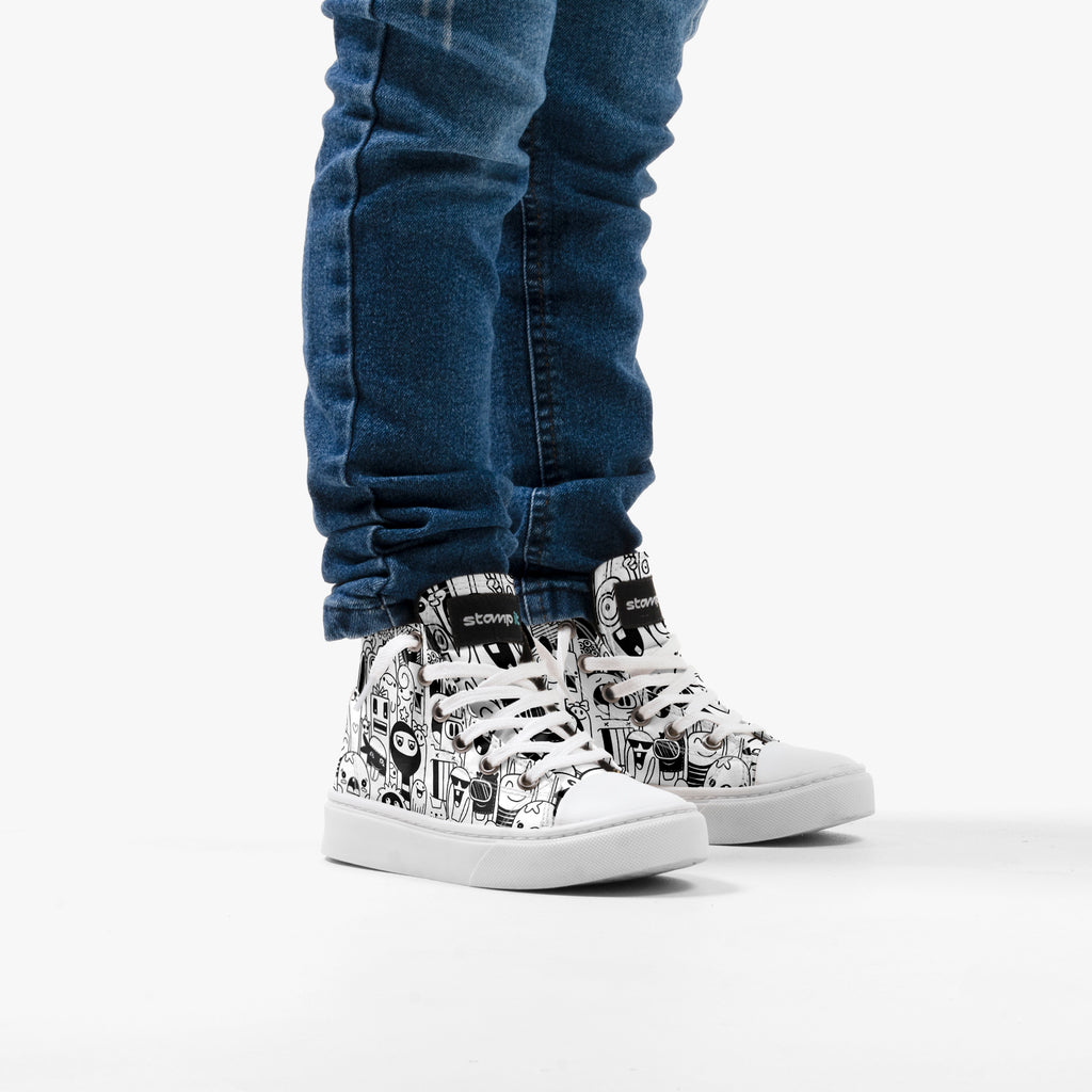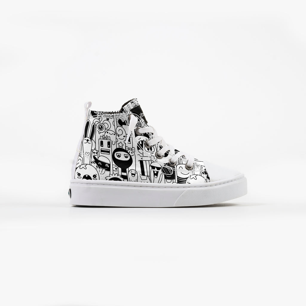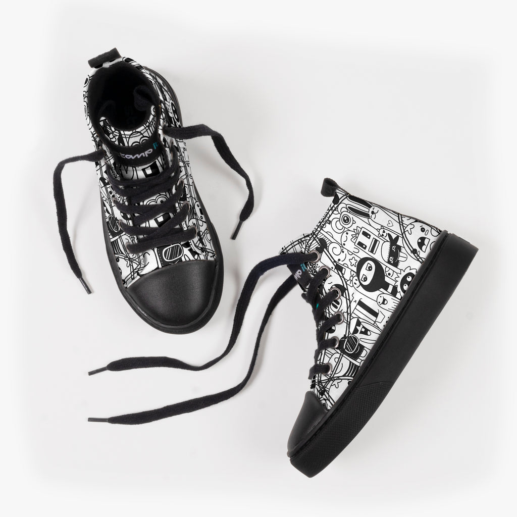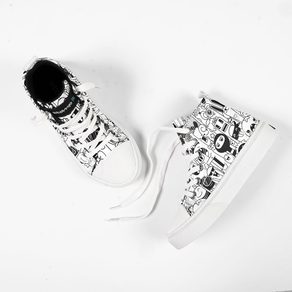 Tênis Cano Alto Infantil Branco e Preto Animais Comics Animais
