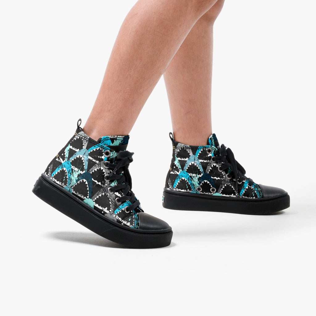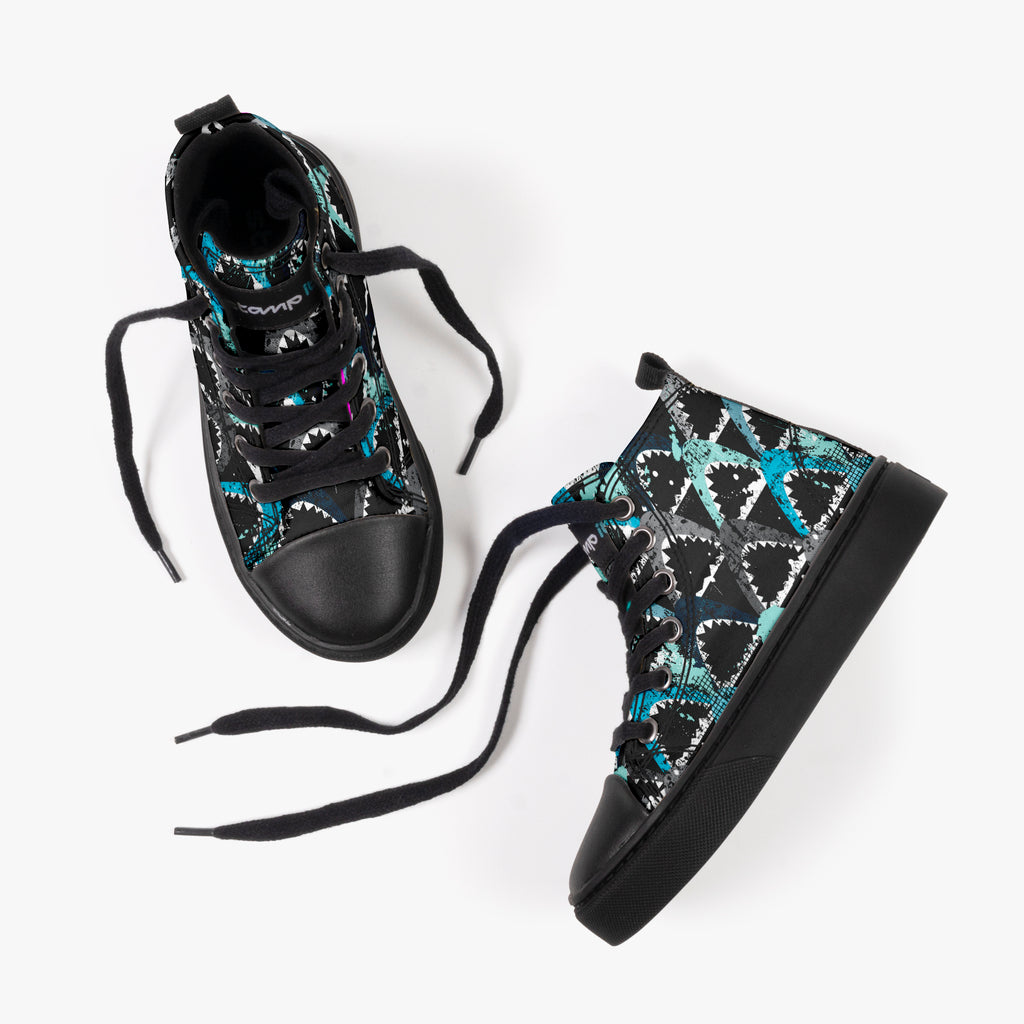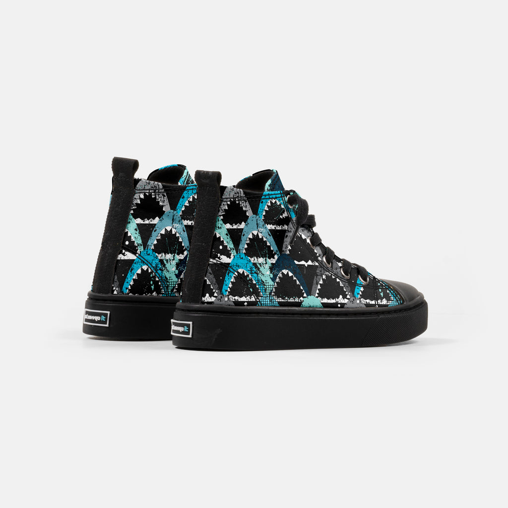 Tênis Cano Alto Infantil Shark's, confeccionado em lona, com cores e estampas exclusivas.