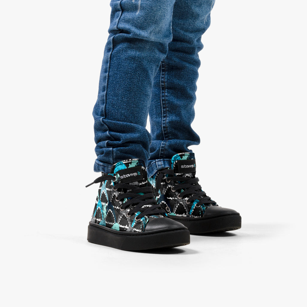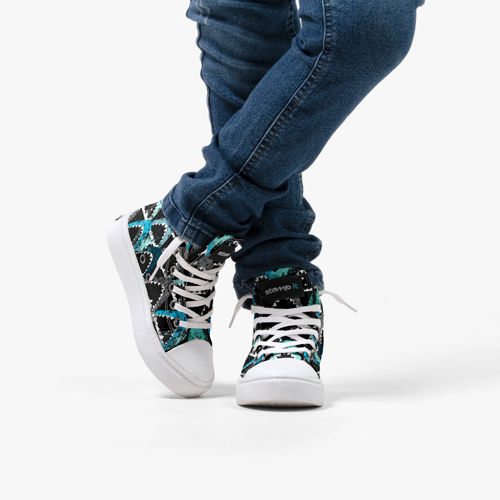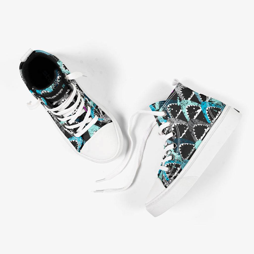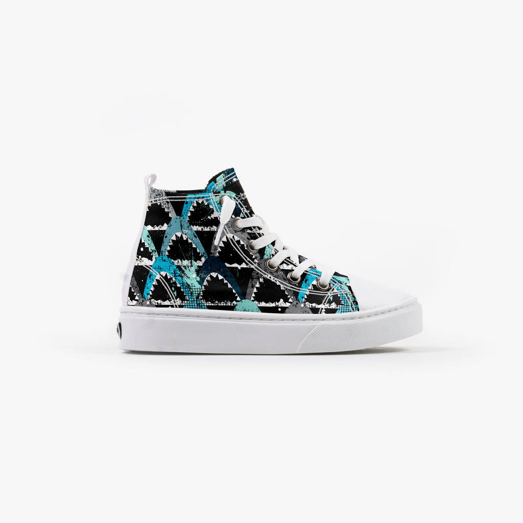 Tênis Cano Alto Infantil Shark's, confeccionado em lona, com cores e estampas exclusivas.