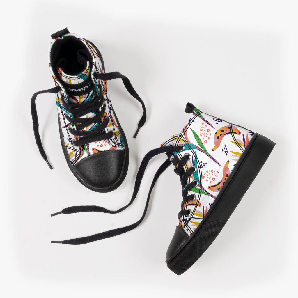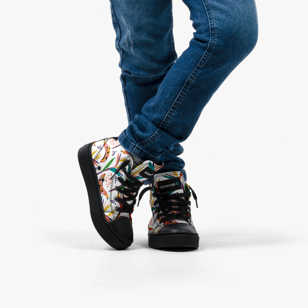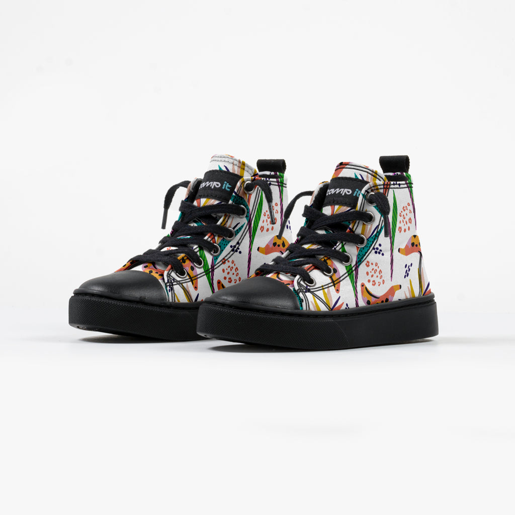 Tênis Cano Alto Infantil Wimp, confeccionado em lona, com cores e estampas exclusivas.