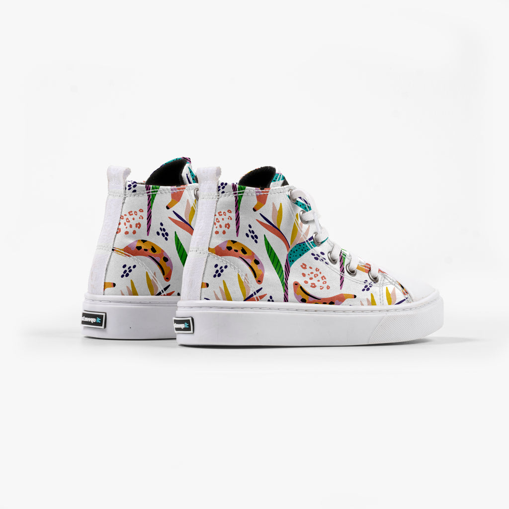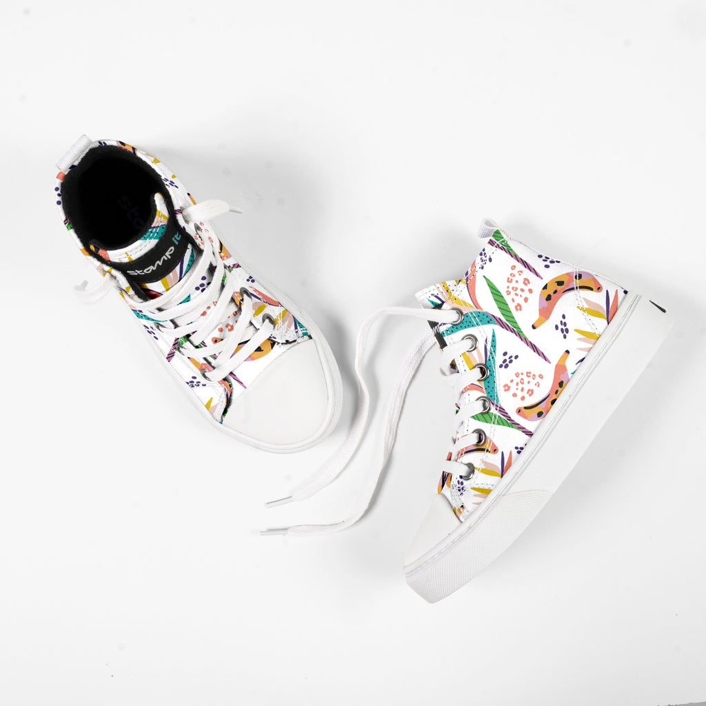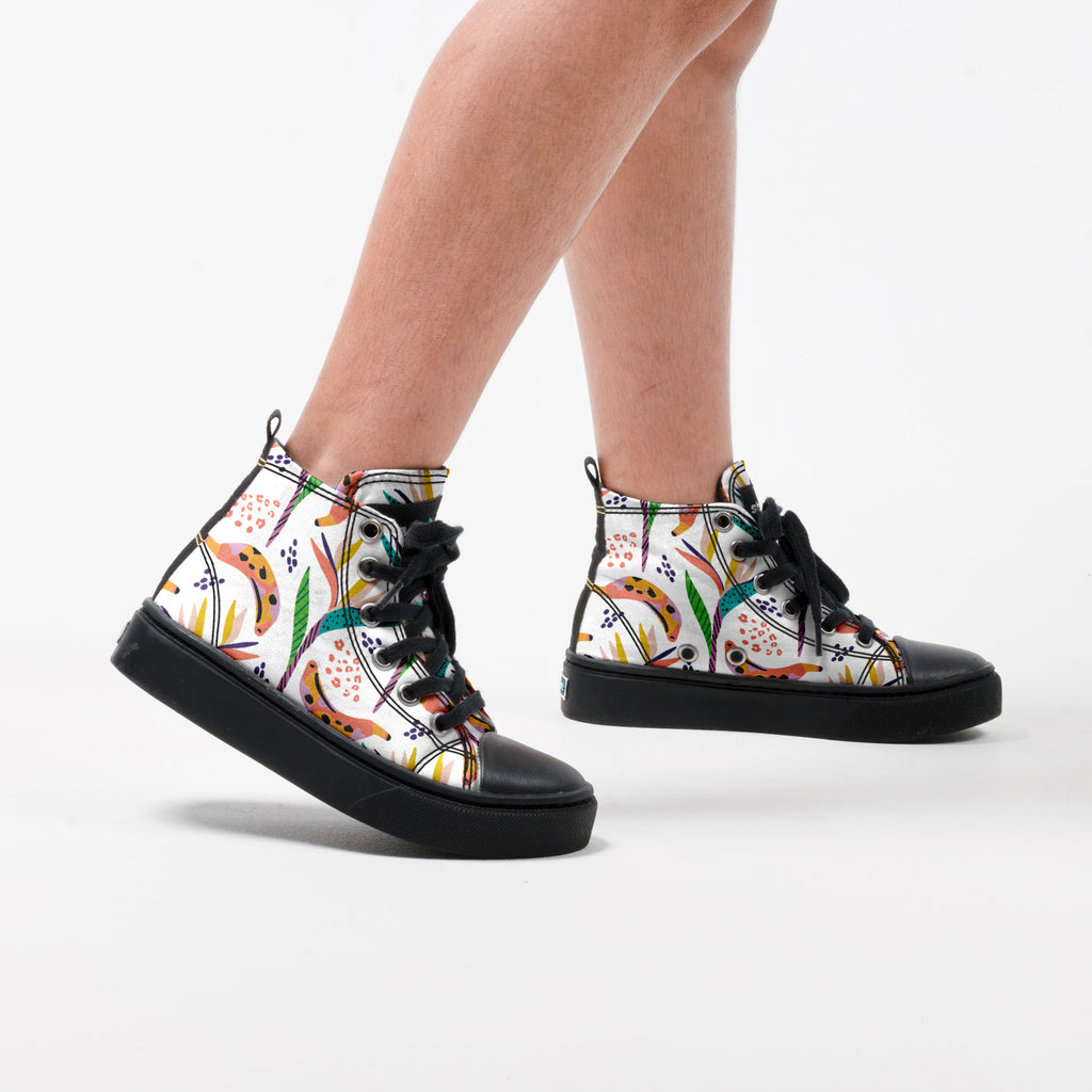 Tênis Cano Alto Infantil Wimp, confeccionado em lona, com cores e estampas exclusivas.