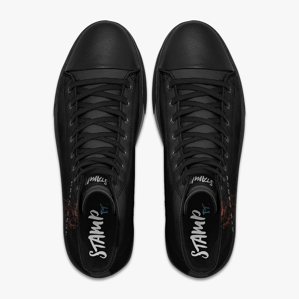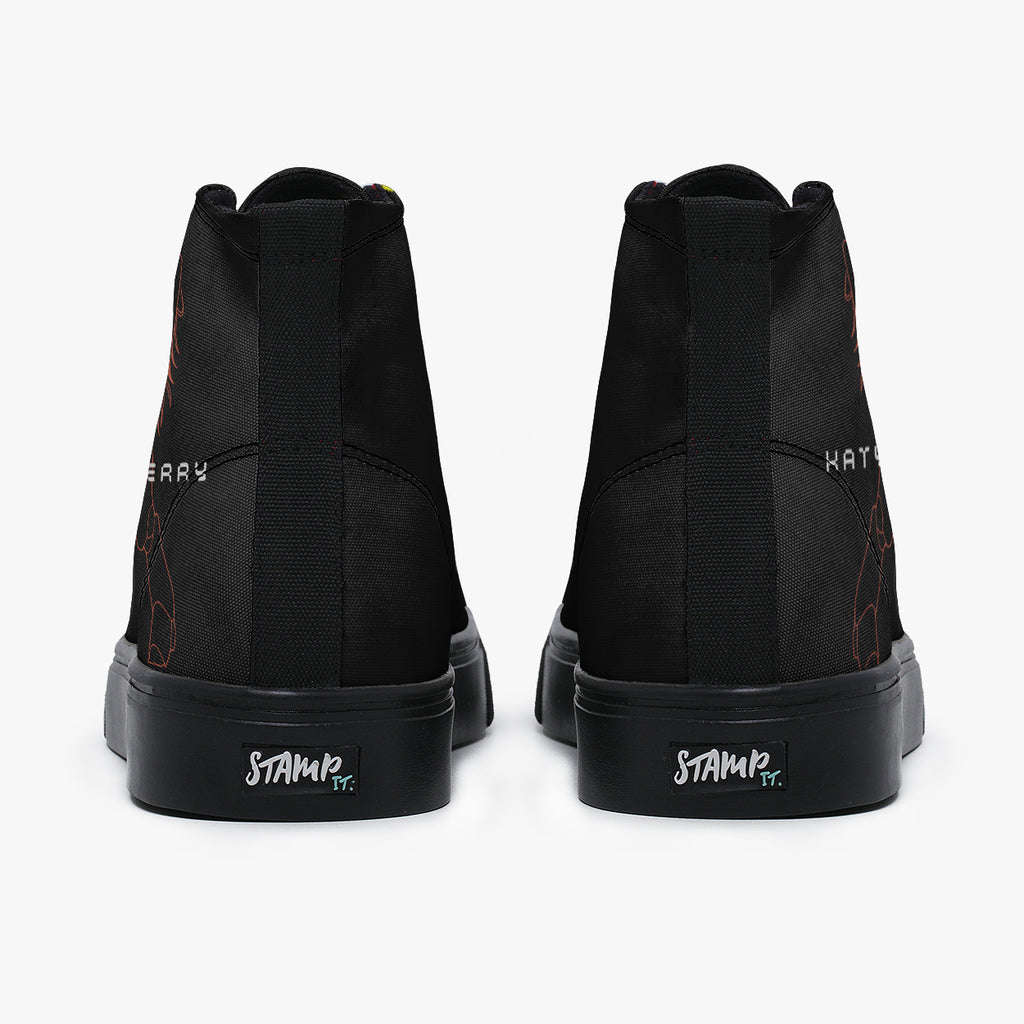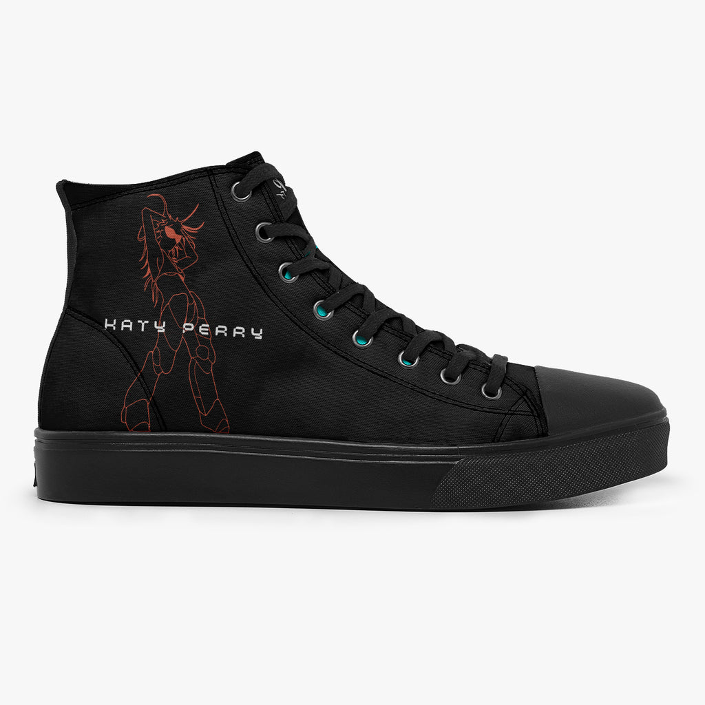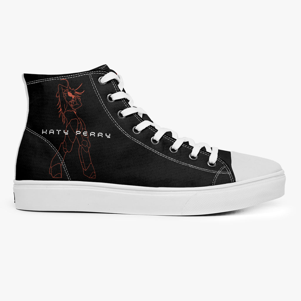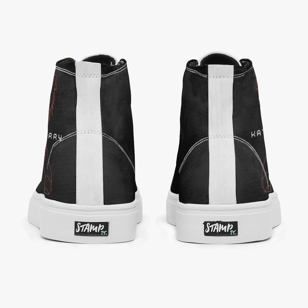 Tênis Cano Alto Katy Perry Woman’s World Pop Music, confeccionado em lona, com cores e estampas exclusivas.