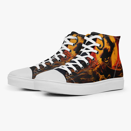 Tênis Cano Alto Laranja Espantalho Terror Halloween, confeccionado em lona, com cores e estampas exclusivas.