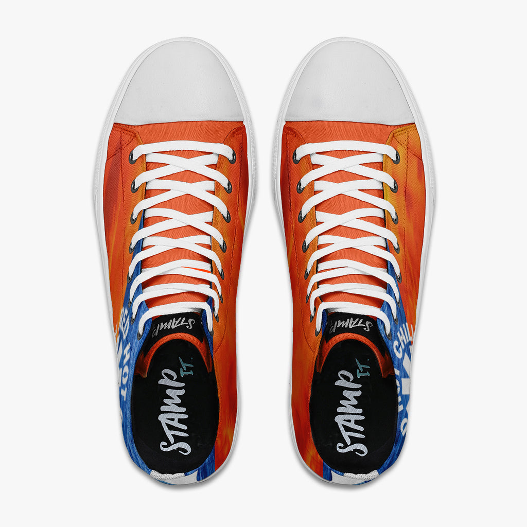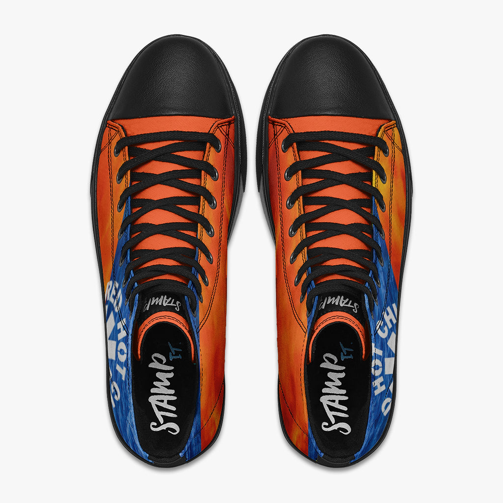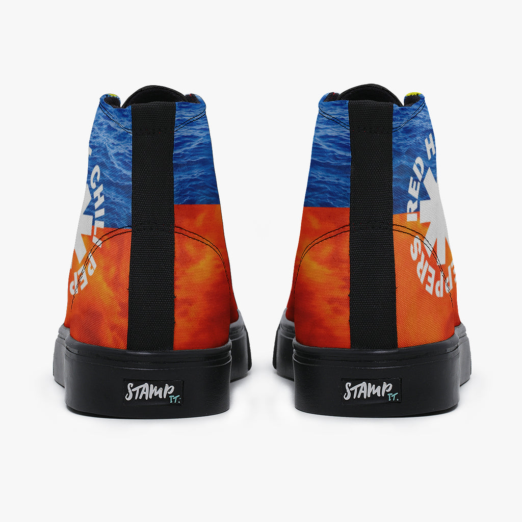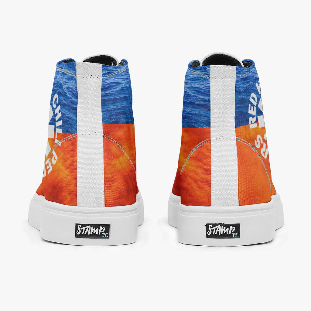 Tênis Cano Alto Laranja Rock N Roll Red Hot Chili Peppers Californication Aesthetic Bandas de Rock, confeccionado em lona, com cores e estampas exclusivas.