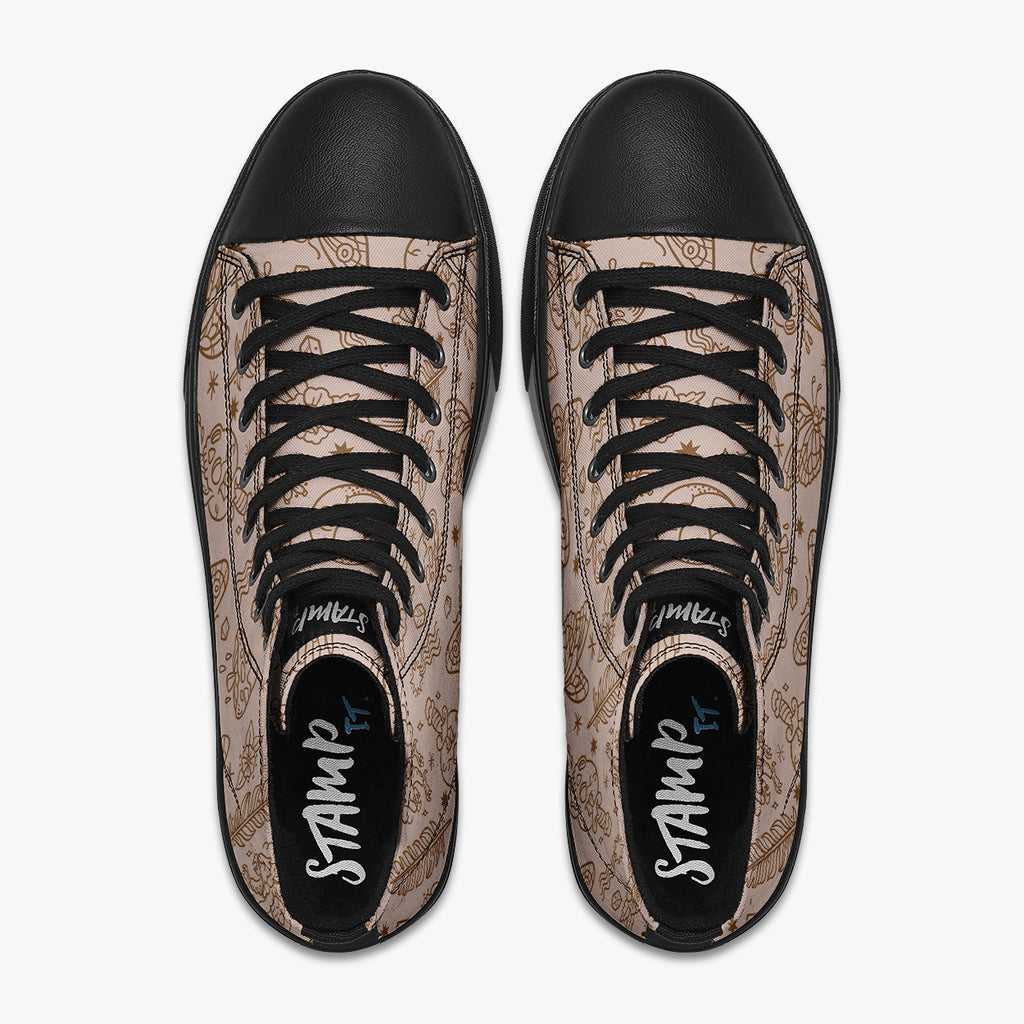 Tênis Cano Alto Marrom Desenhos Variados Abstrato