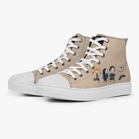 Tênis Cano Alto Marrom Kimetsu No Yaiba Demon Slayer Personagens Anime, confeccionado em lona, com cores e estampas exclusivas.