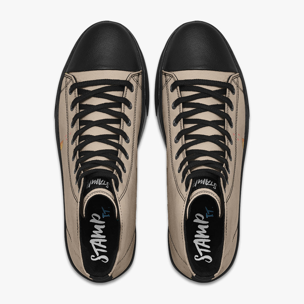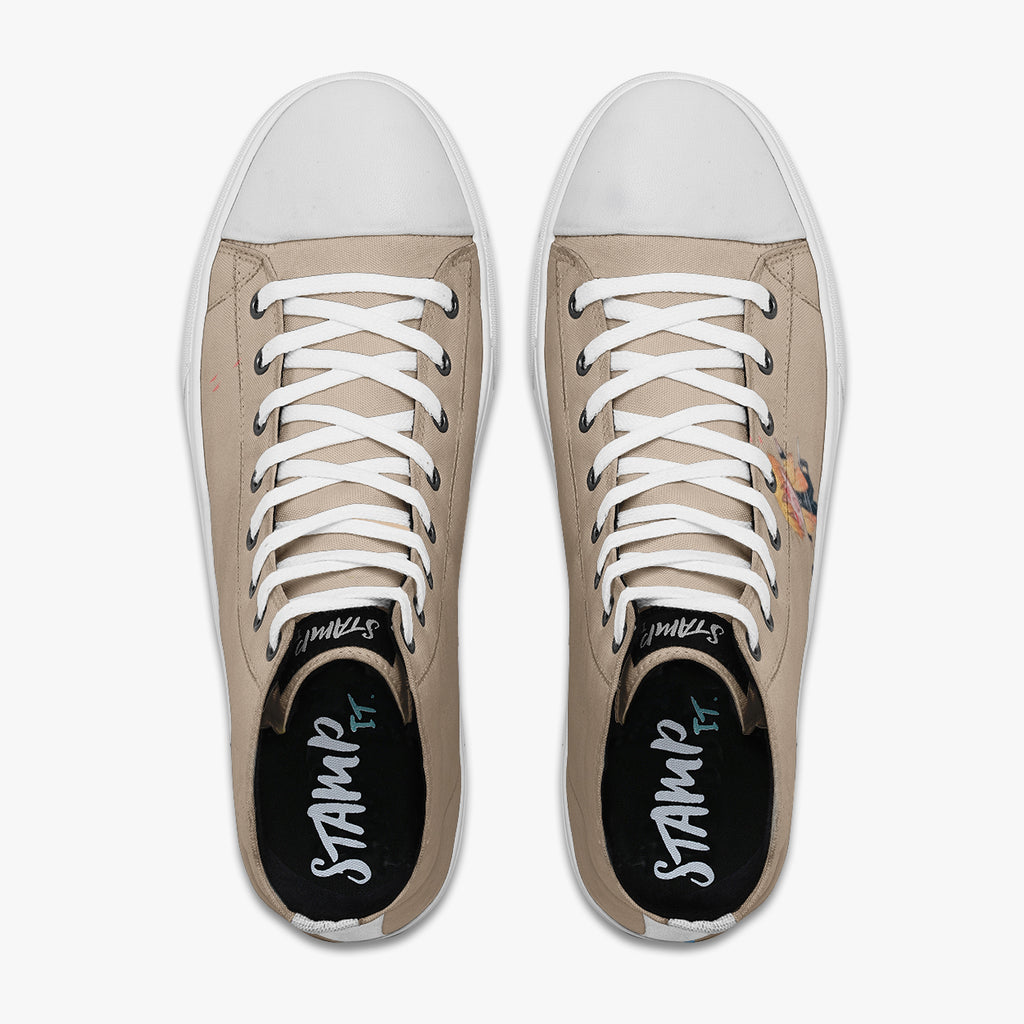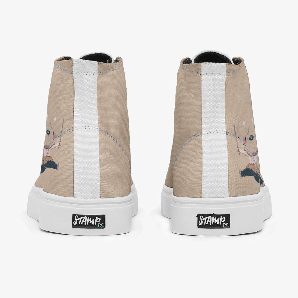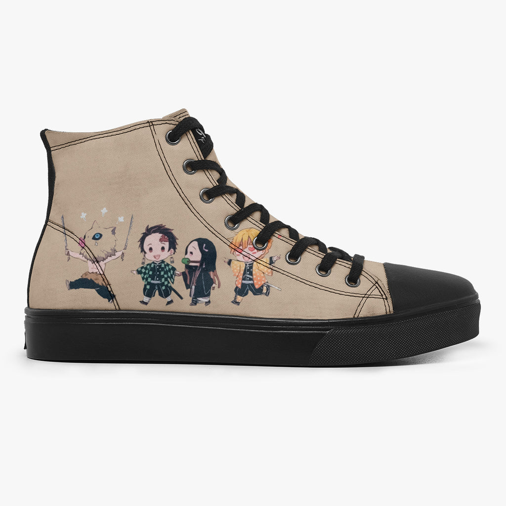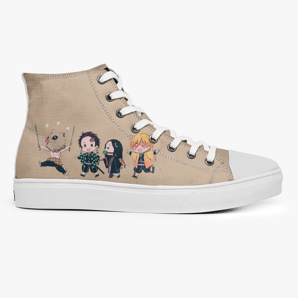 Tênis Cano Alto Marrom Kimetsu No Yaiba Demon Slayer Personagens Anime, confeccionado em lona, com cores e estampas exclusivas.