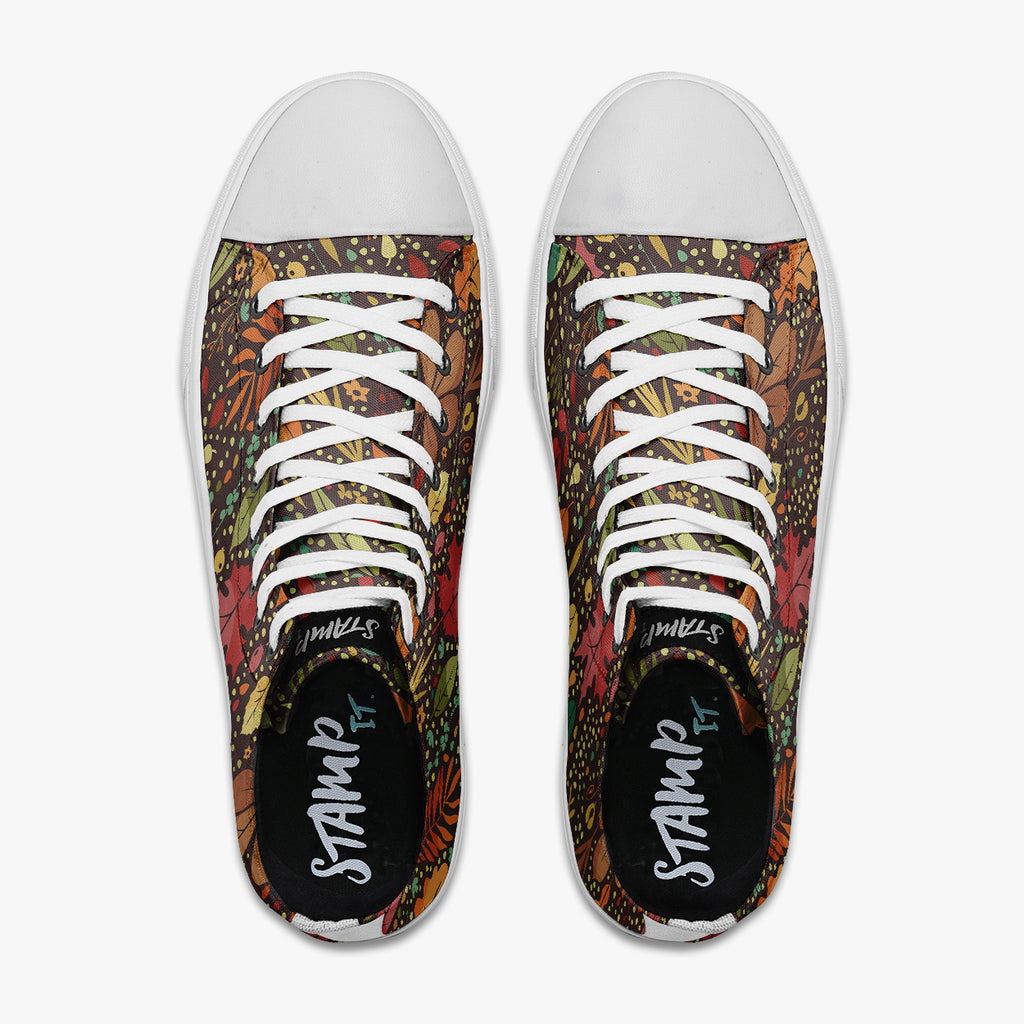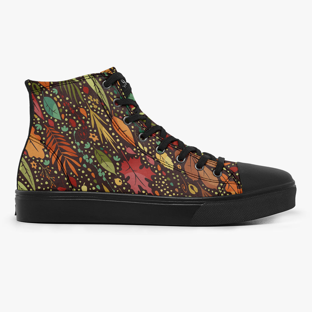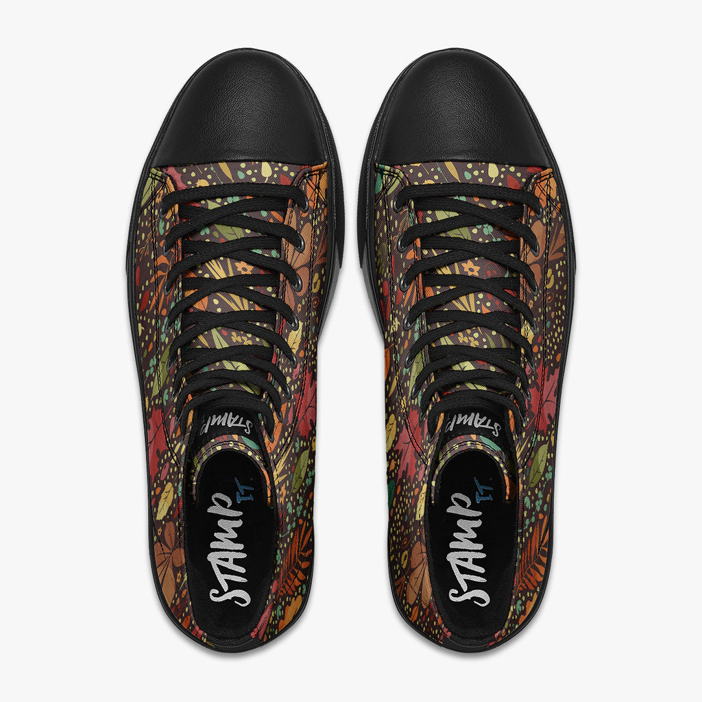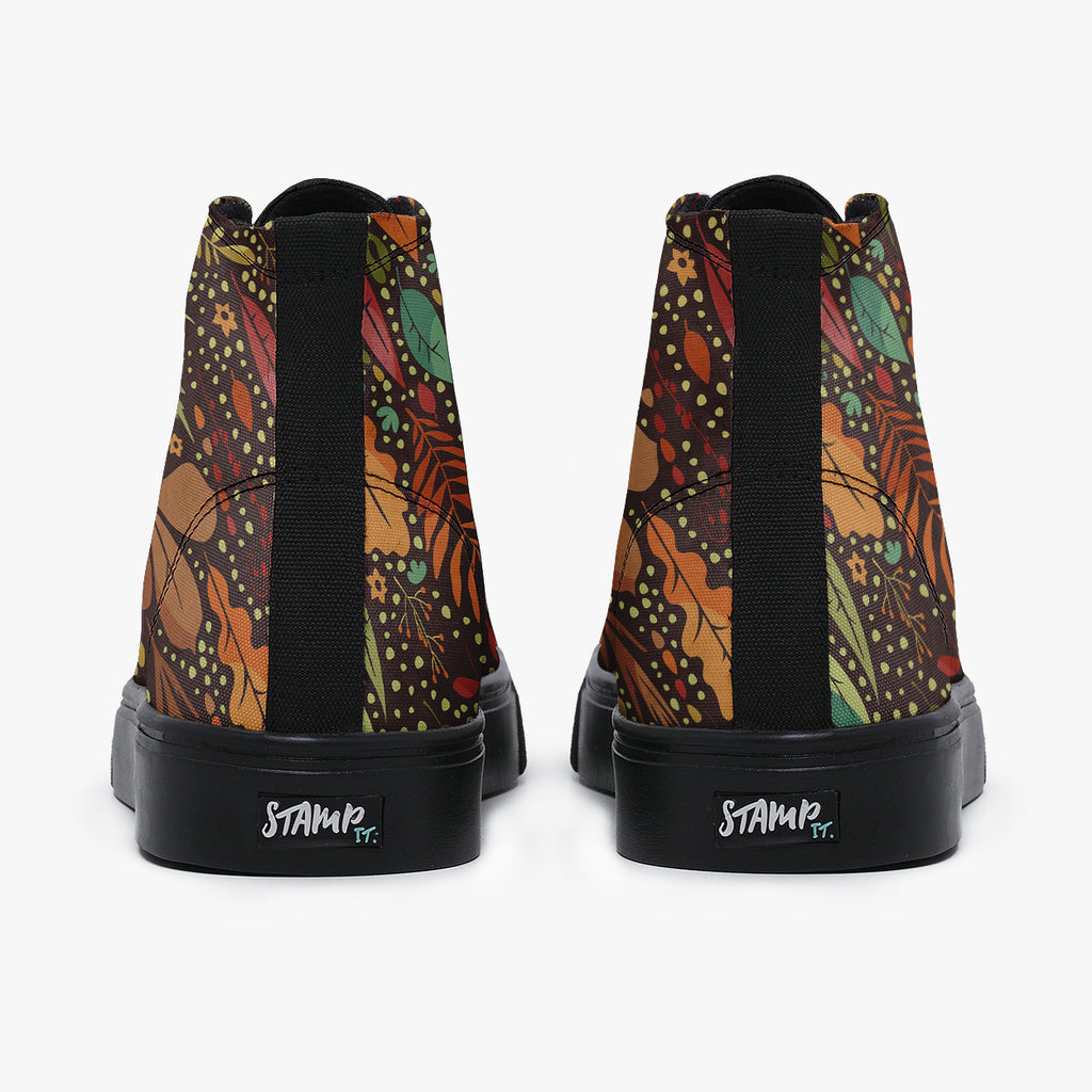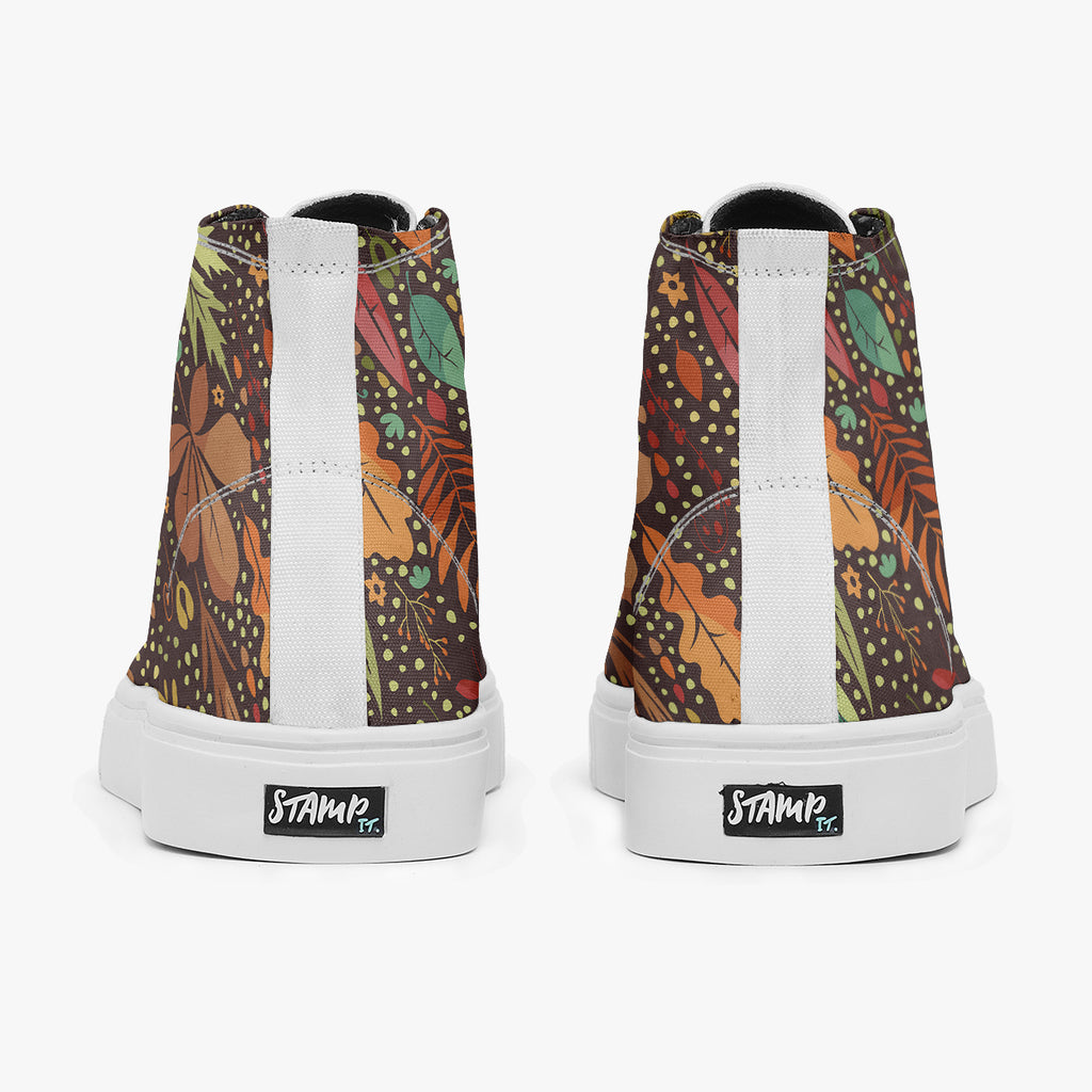 Tênis Cano Alto Marron Folhas Coloridas Flores e Folhas