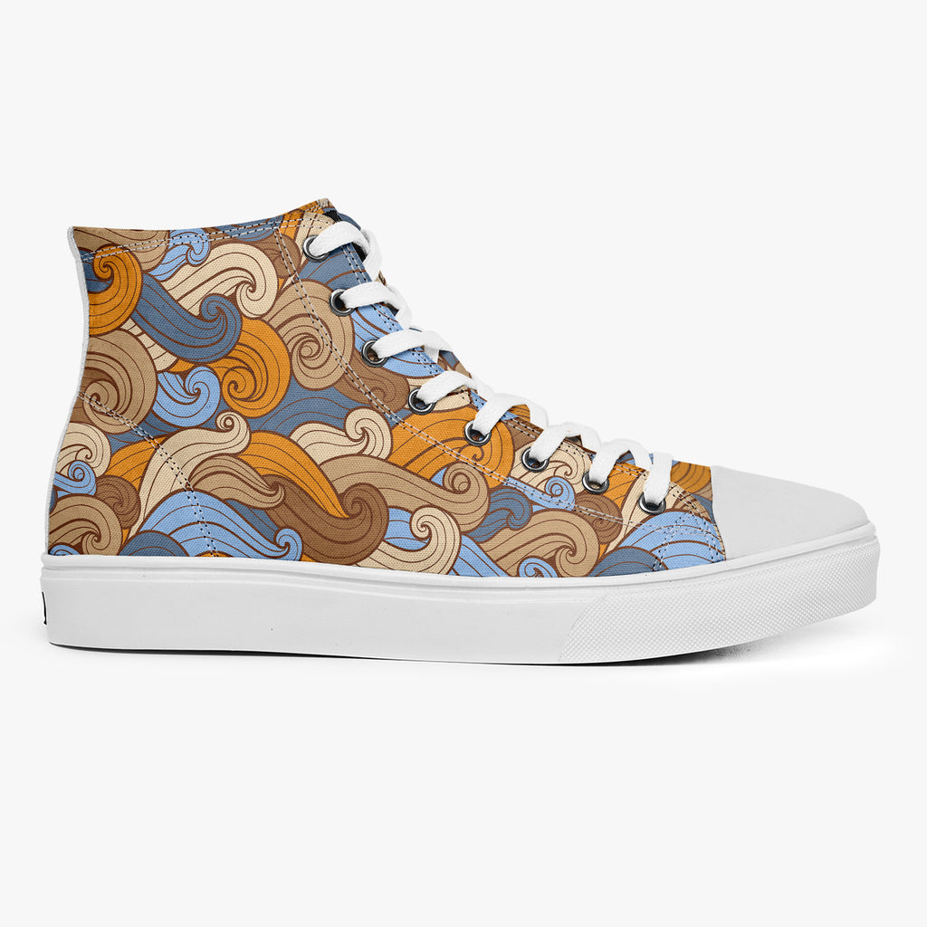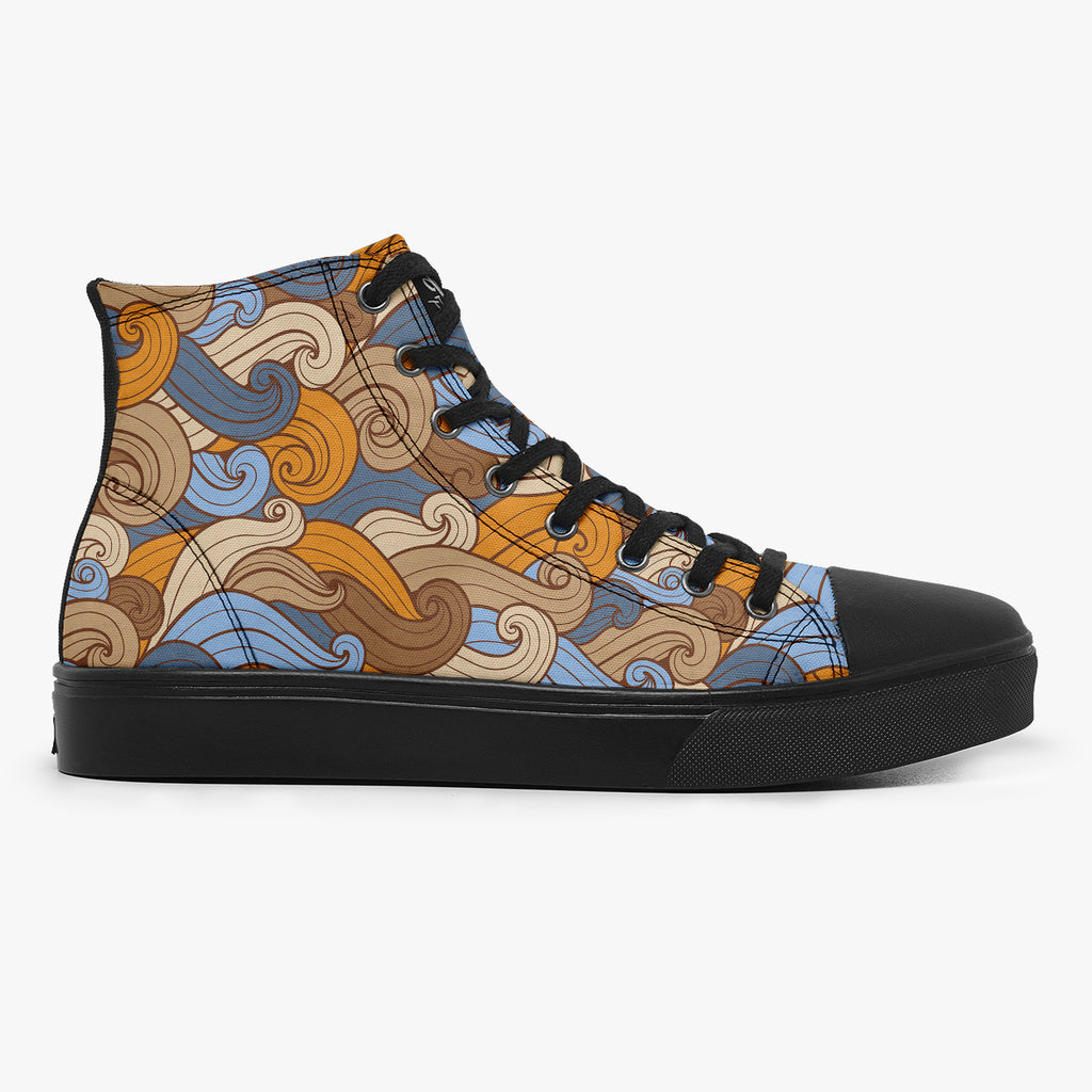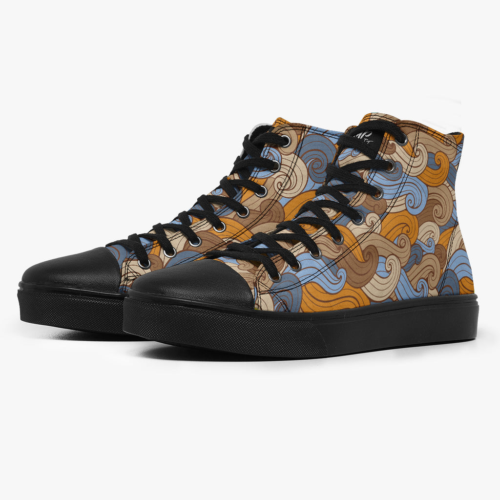 Tênis Cano Alto Marron Ondas Orientais Abstrato