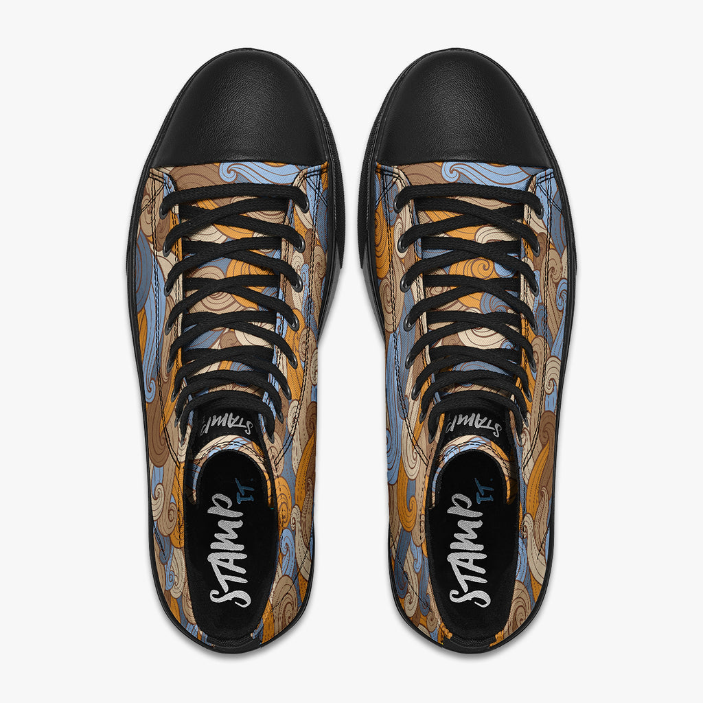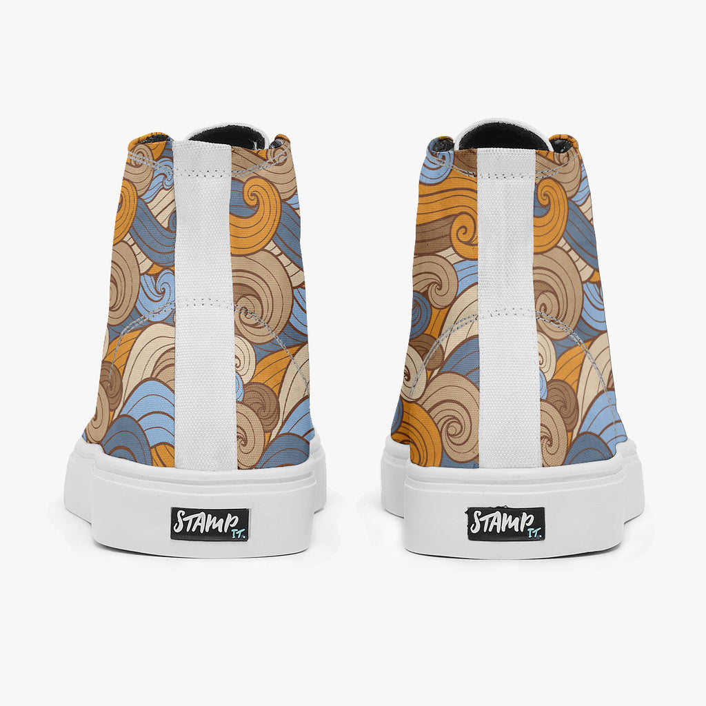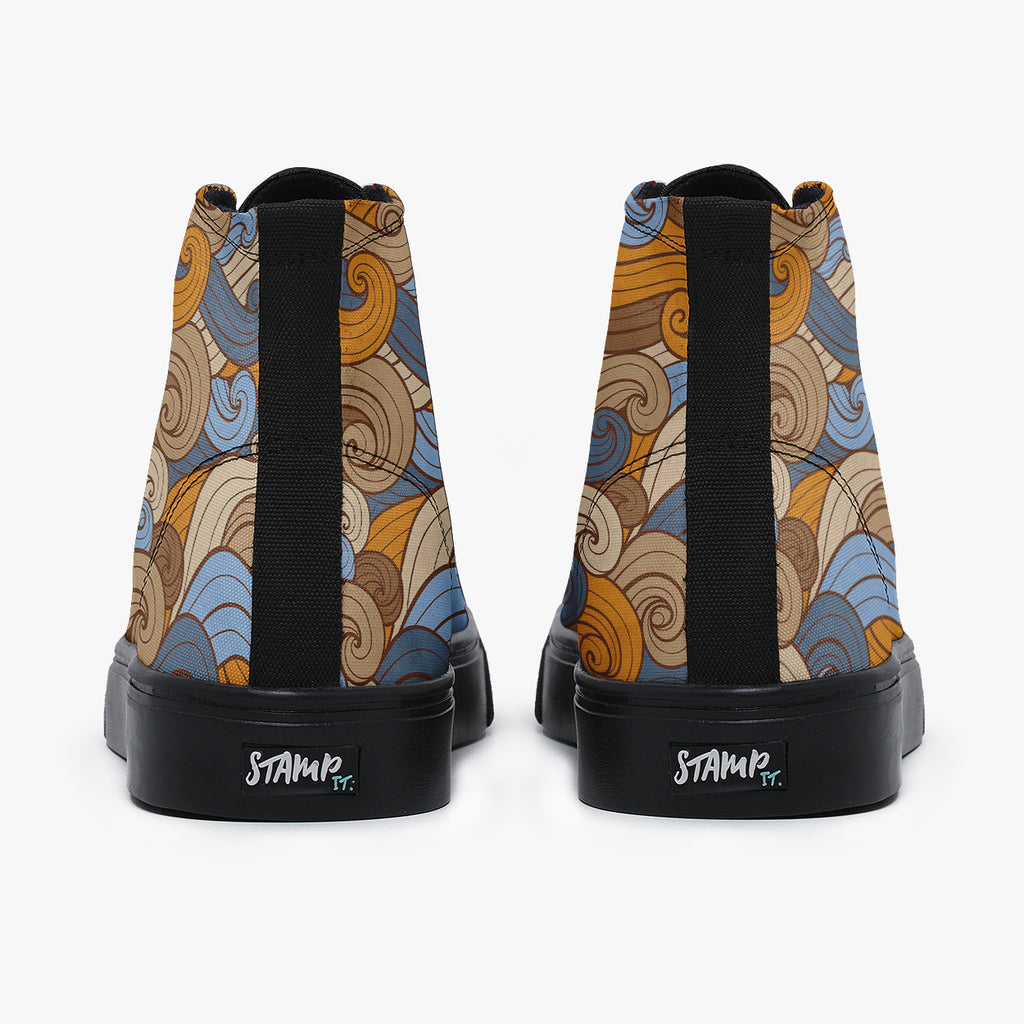 Tênis Cano Alto Marron Ondas Orientais Abstrato