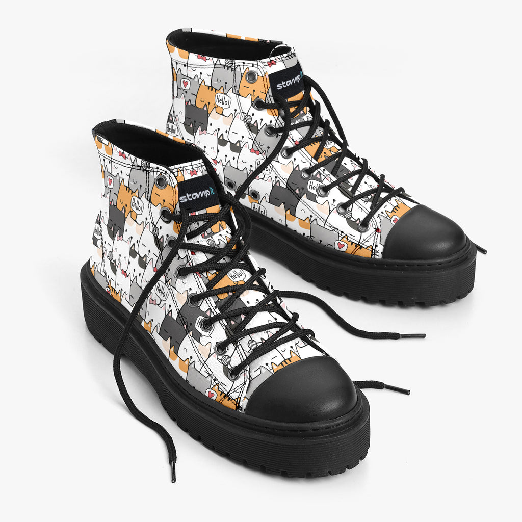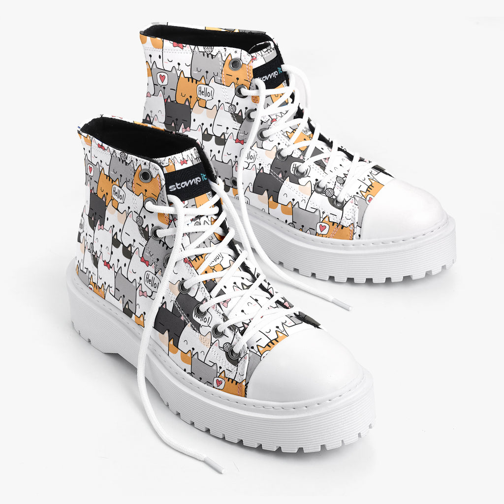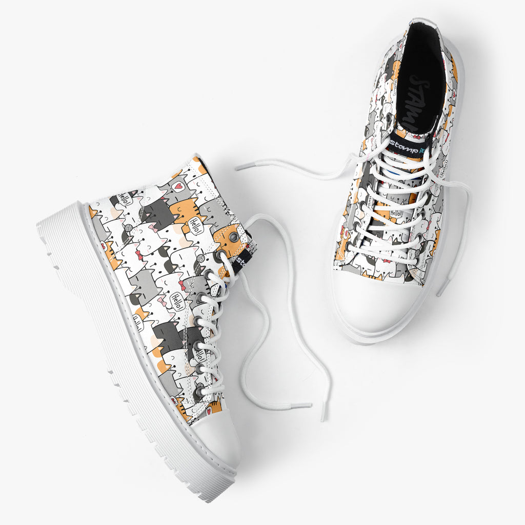 Tênis Cano Alto Plataforma Branco Gatinhos Hello Animais