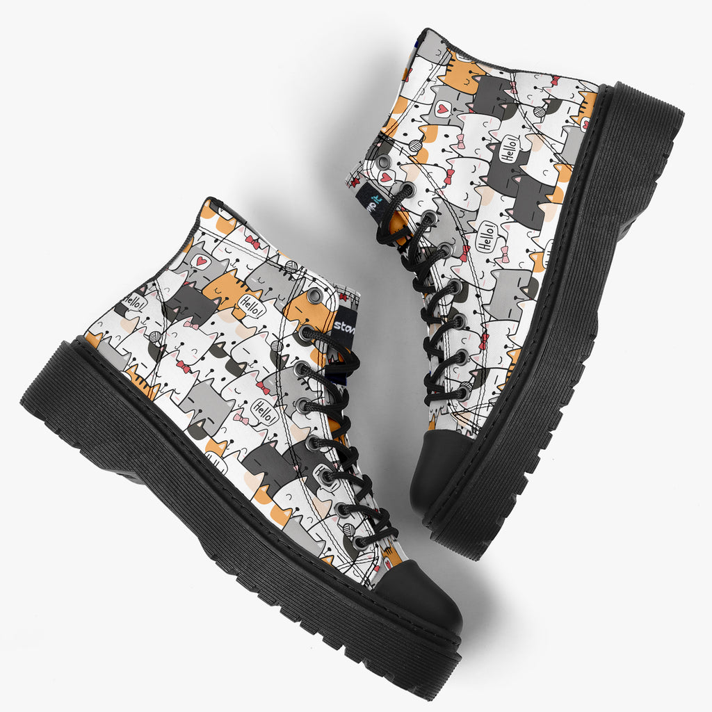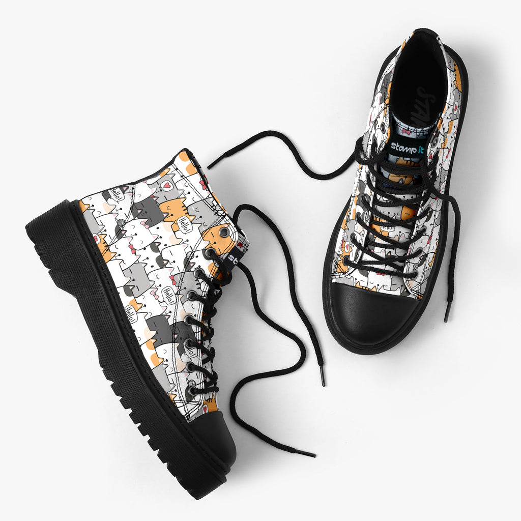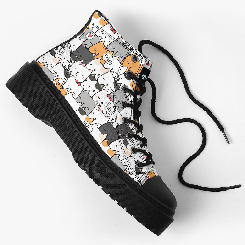 Tênis Cano Alto Plataforma Branco Gatinhos Hello Animais