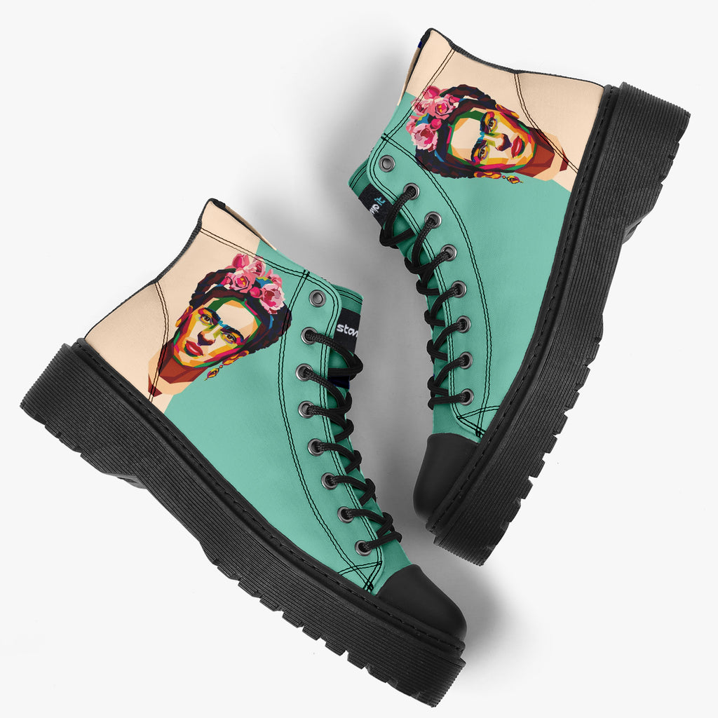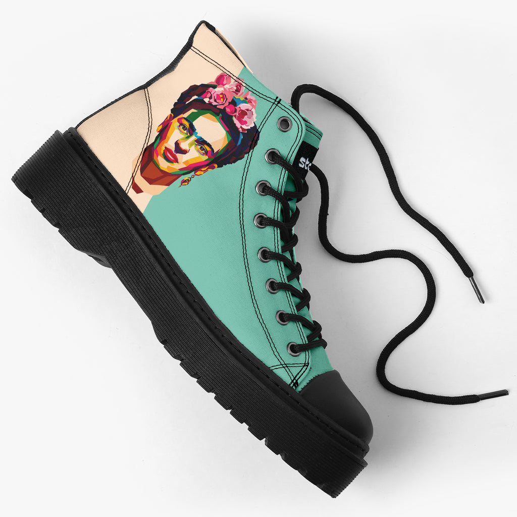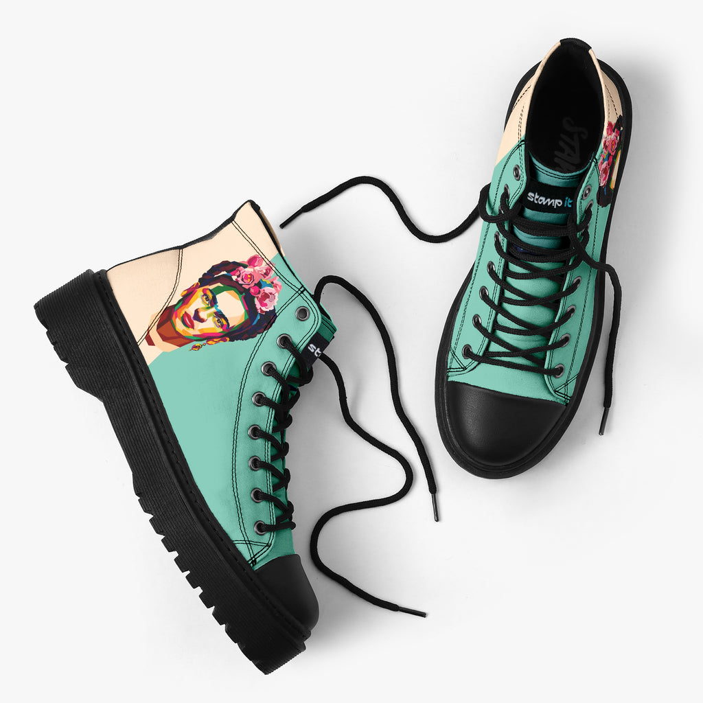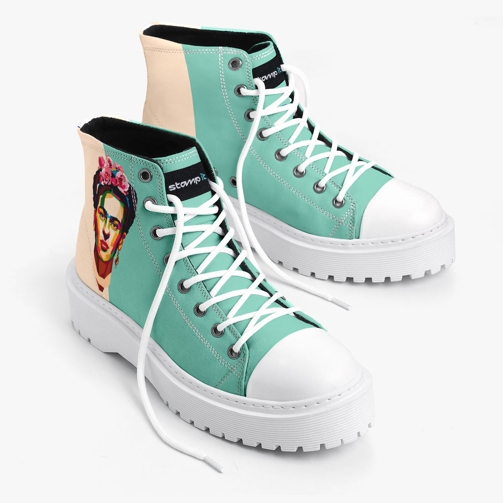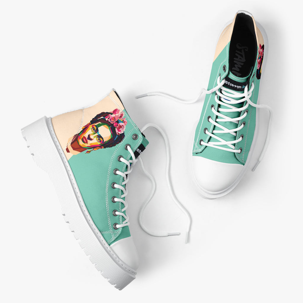 Tênis Cano Alto Plataforma Colorido Frida Kahlo Fanart Movimento Feminista Pride
