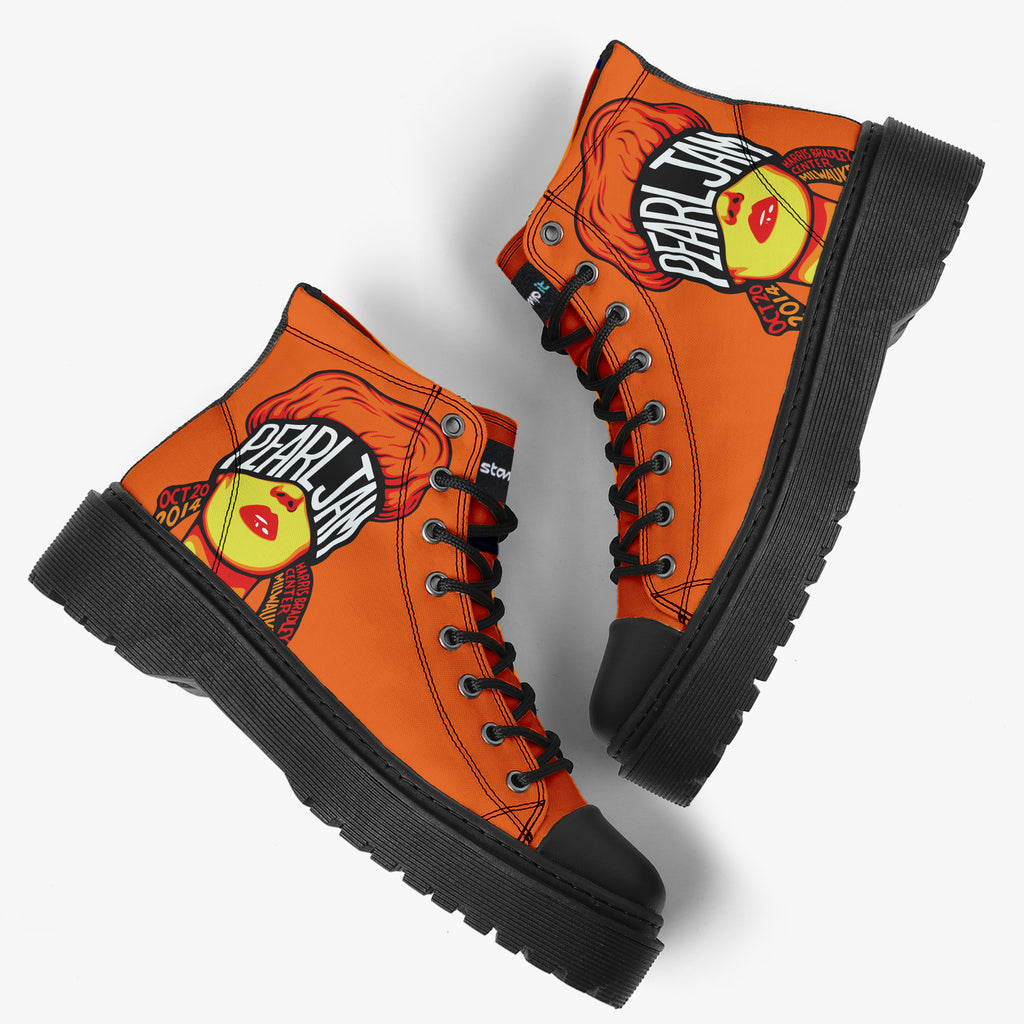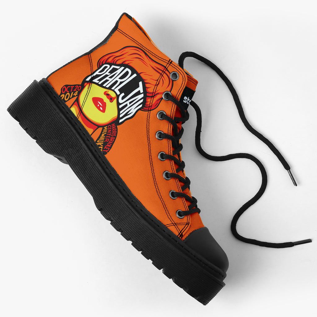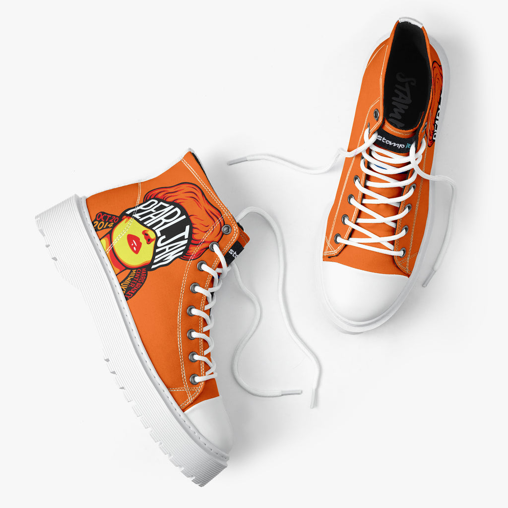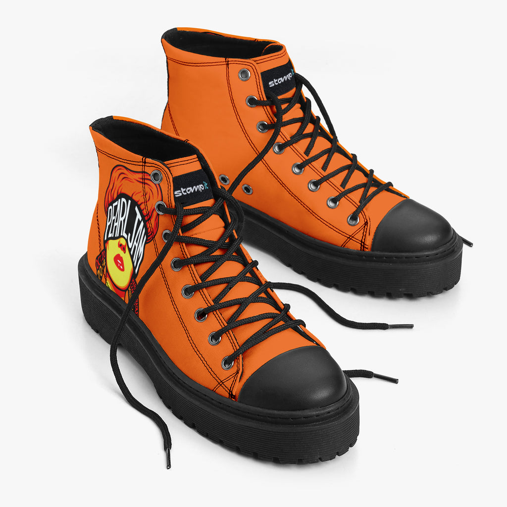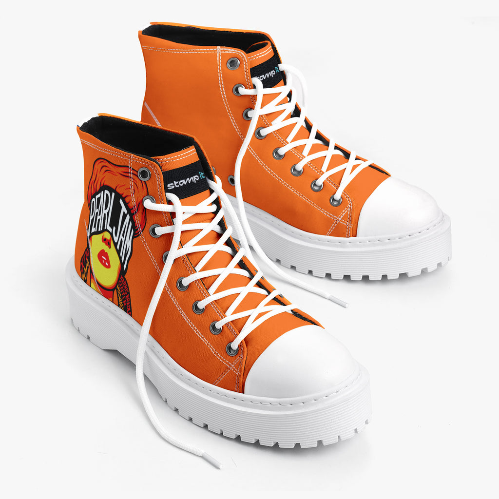 Tênis Cano Alto Plataforma Laranja Pearl Jam Grunge OCT 20 2014 Bandas de Rock, confeccionado em lona, com cores e estampas exclusivas.