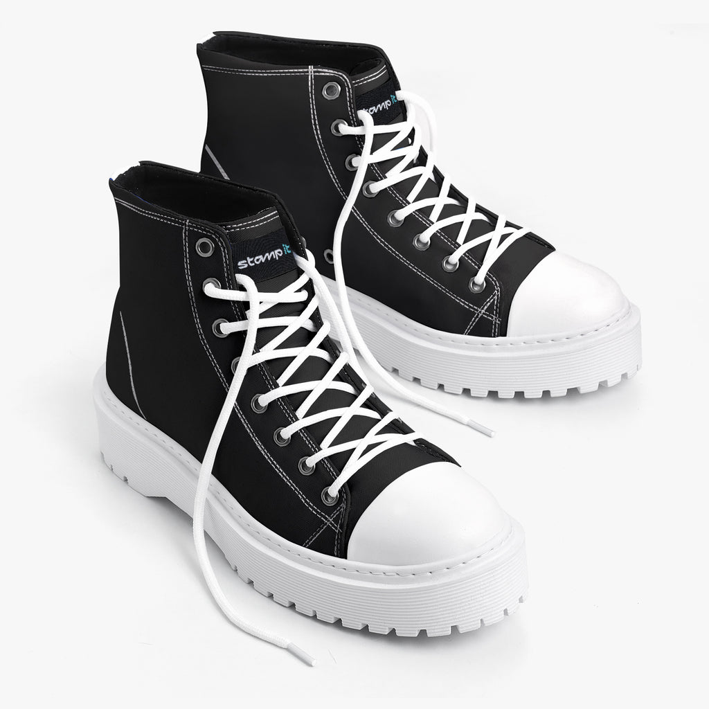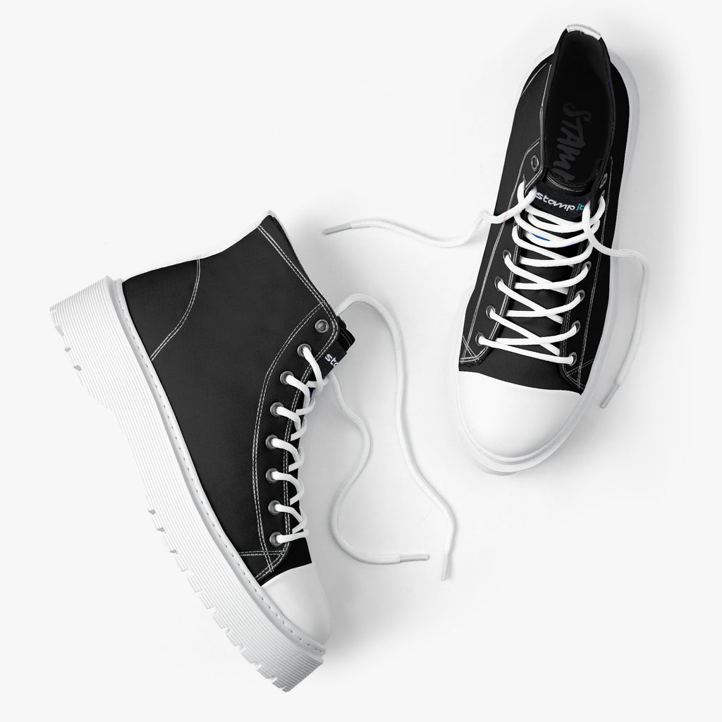 Tênis Cano Alto Plataforma Preto Básico Black Abstrato, confeccionado em lona, com cores e estampas exclusivas.