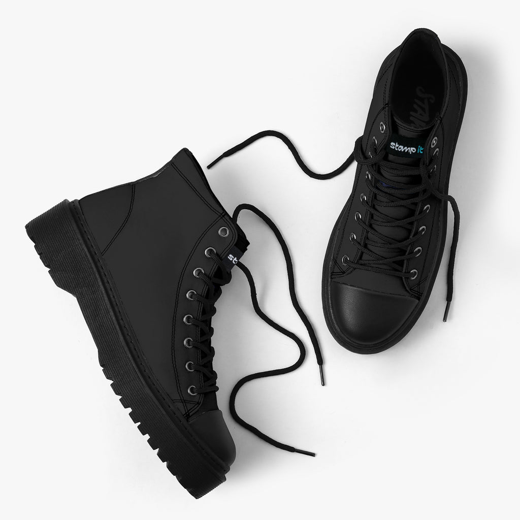 Tênis Cano Alto Plataforma Preto Básico Black Abstrato
