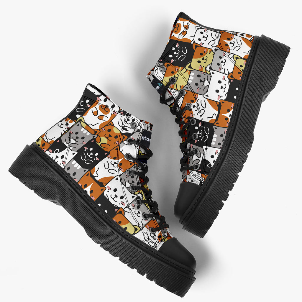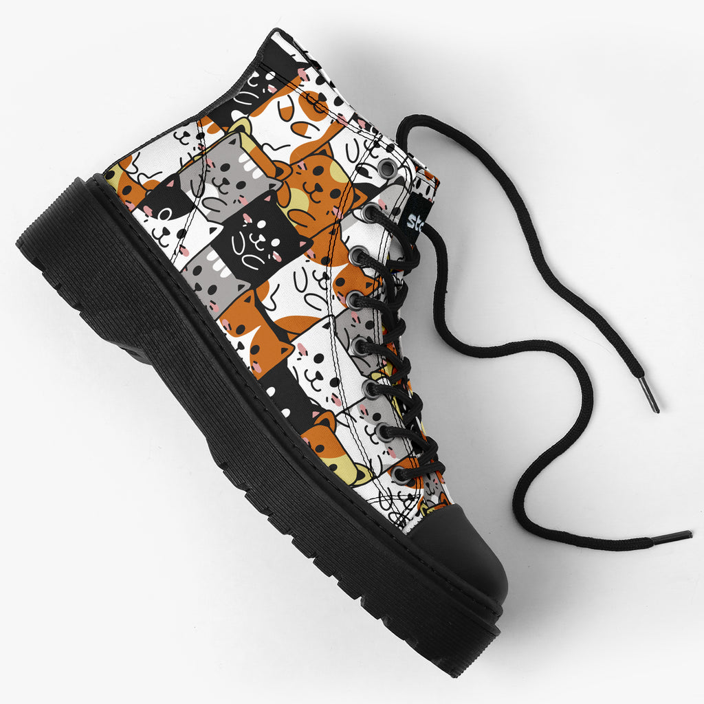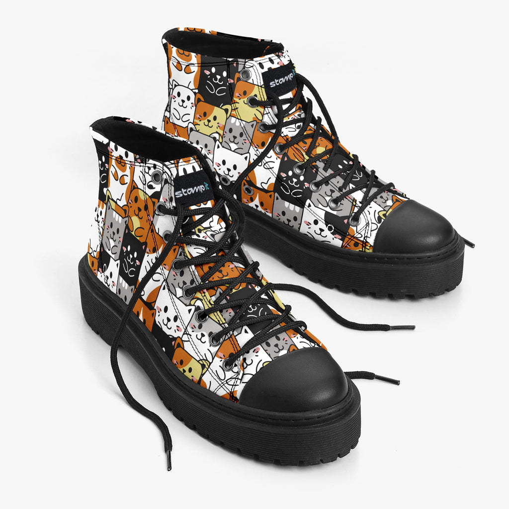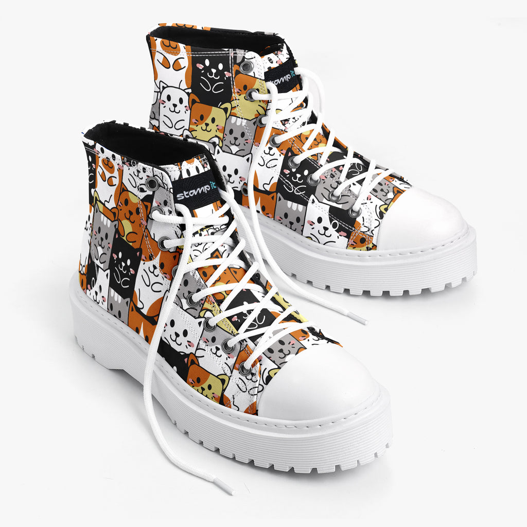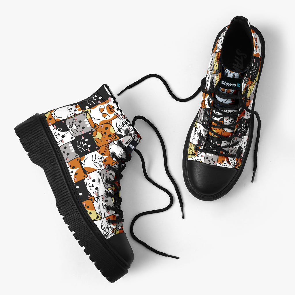 Tênis Cano Alto Plataforma Preto Gatinhos Cores Animais