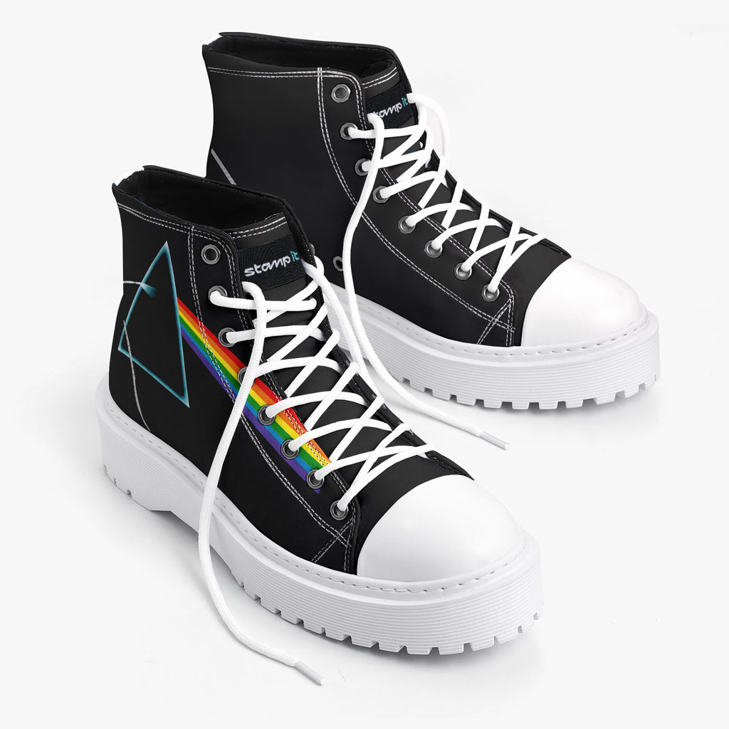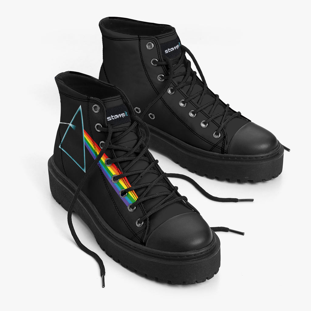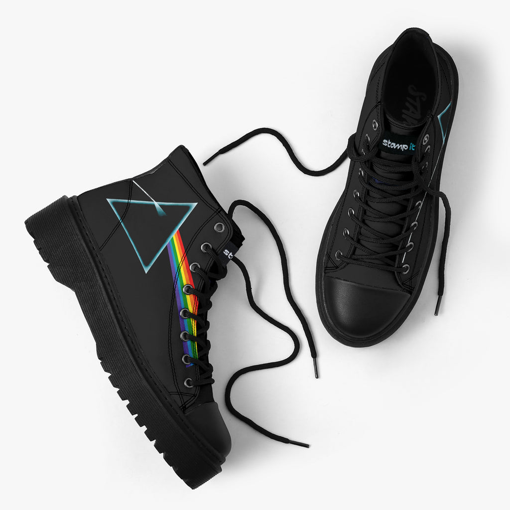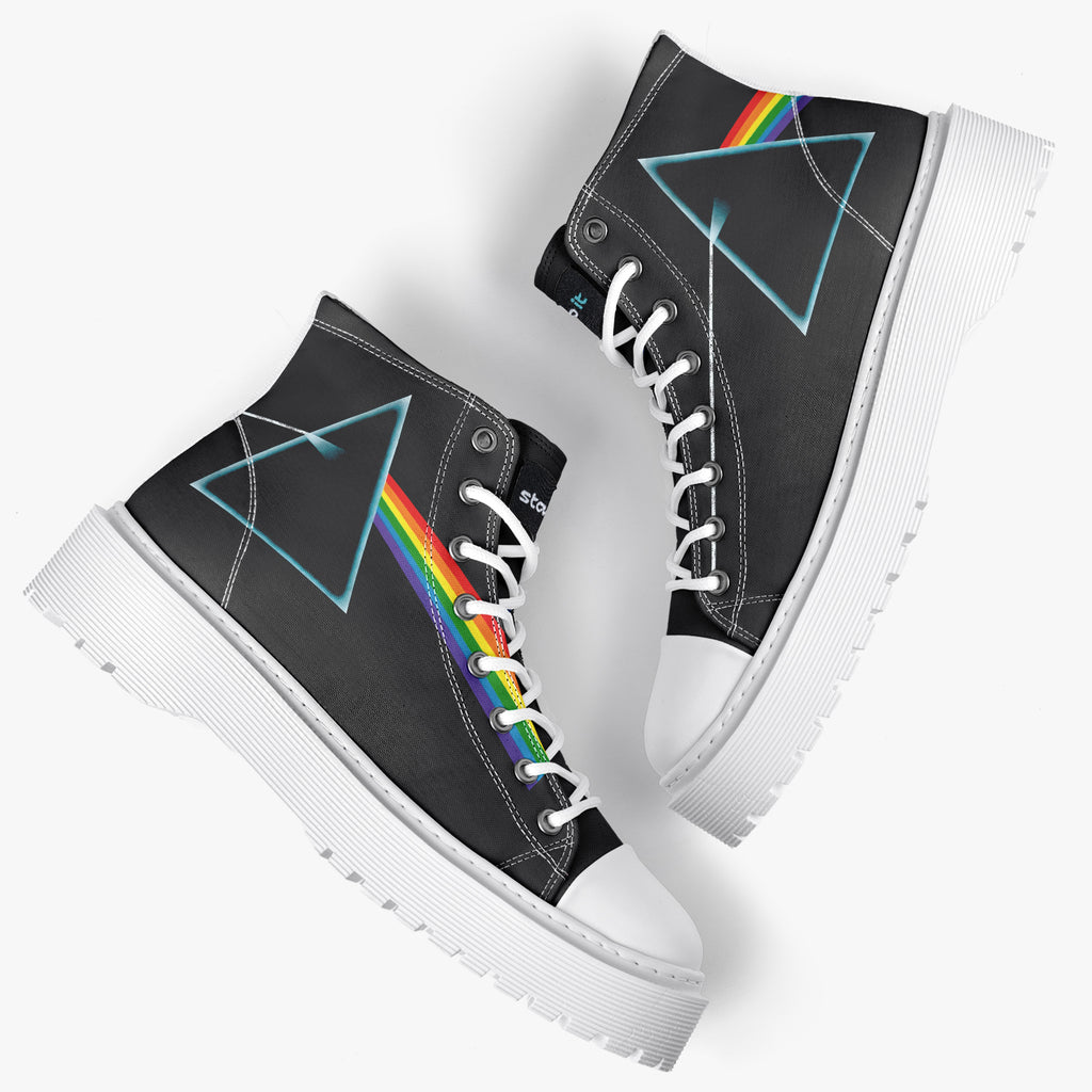 Tênis Cano Alto Plataforma Preto Pink Floyd The Dark Side Of The Moon Bandas de Rock