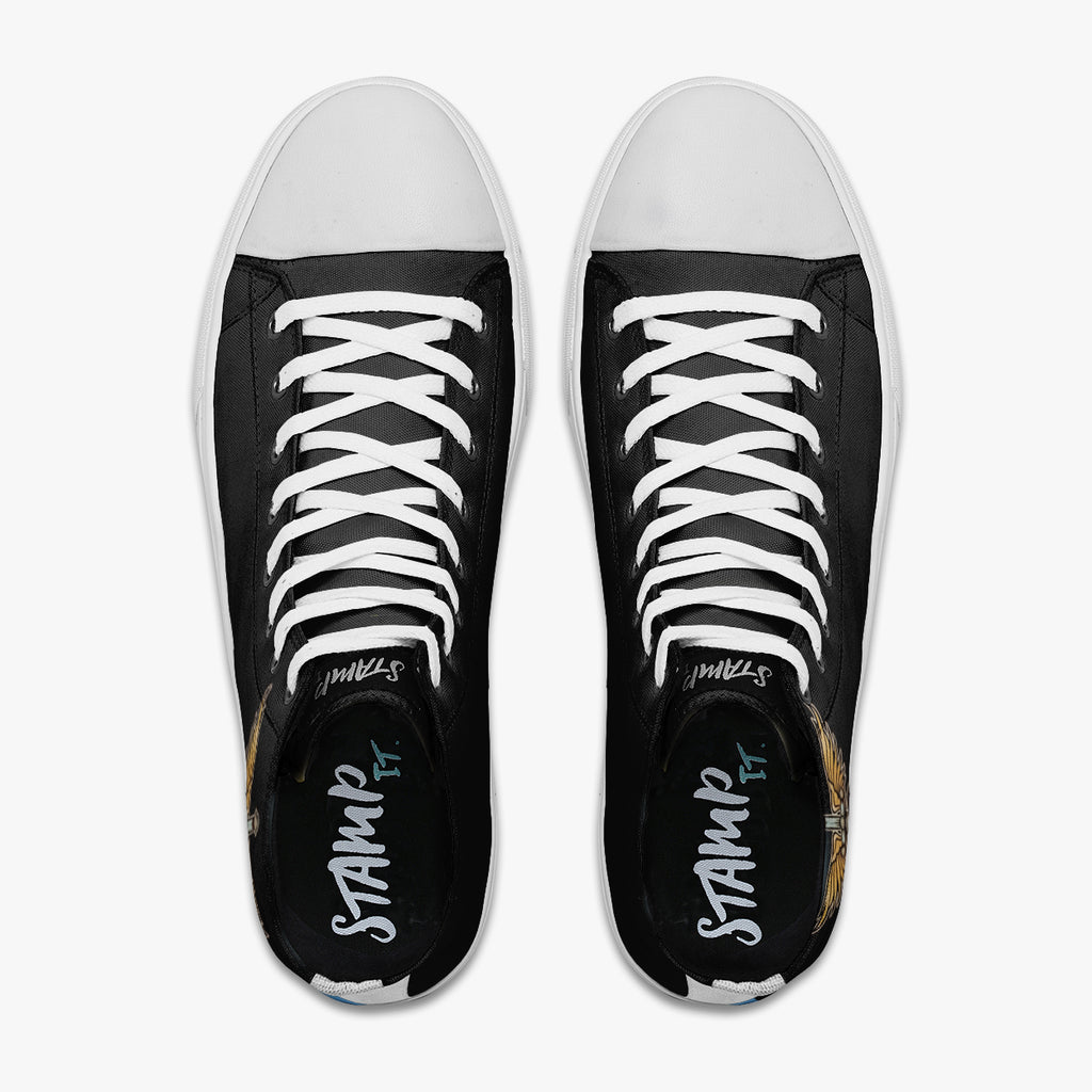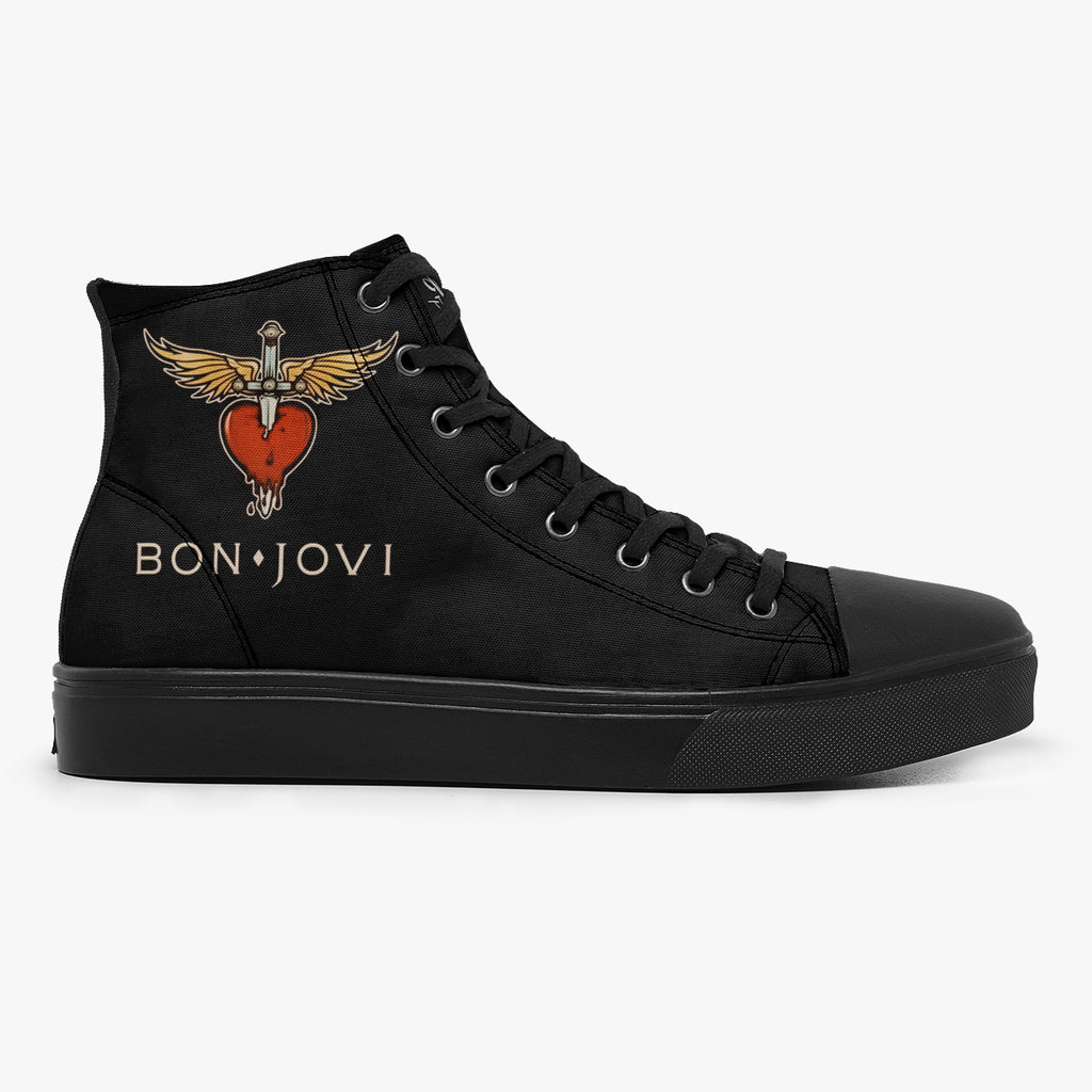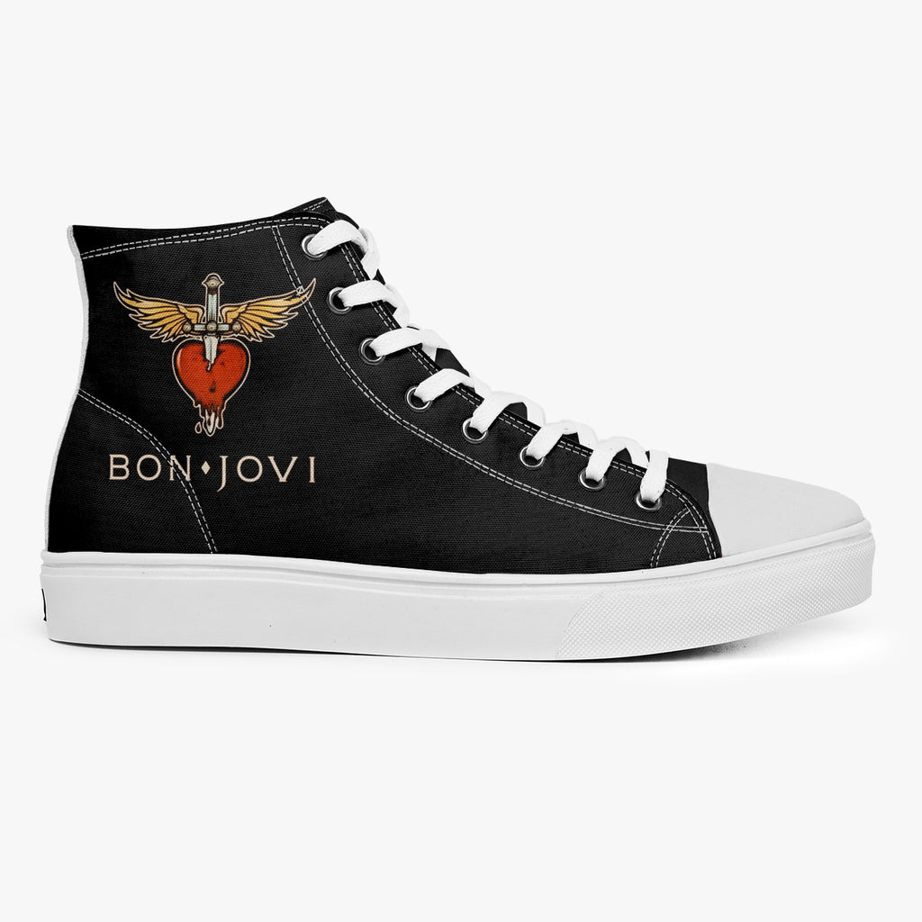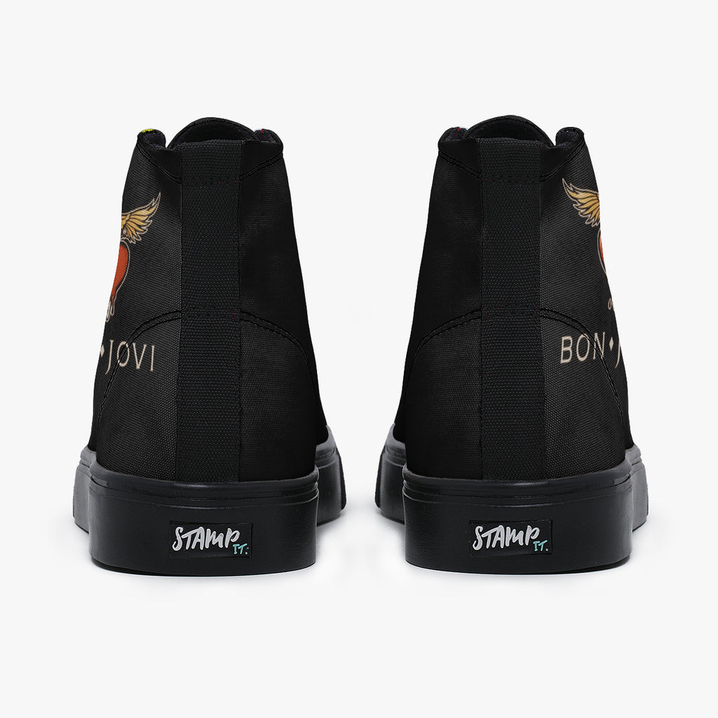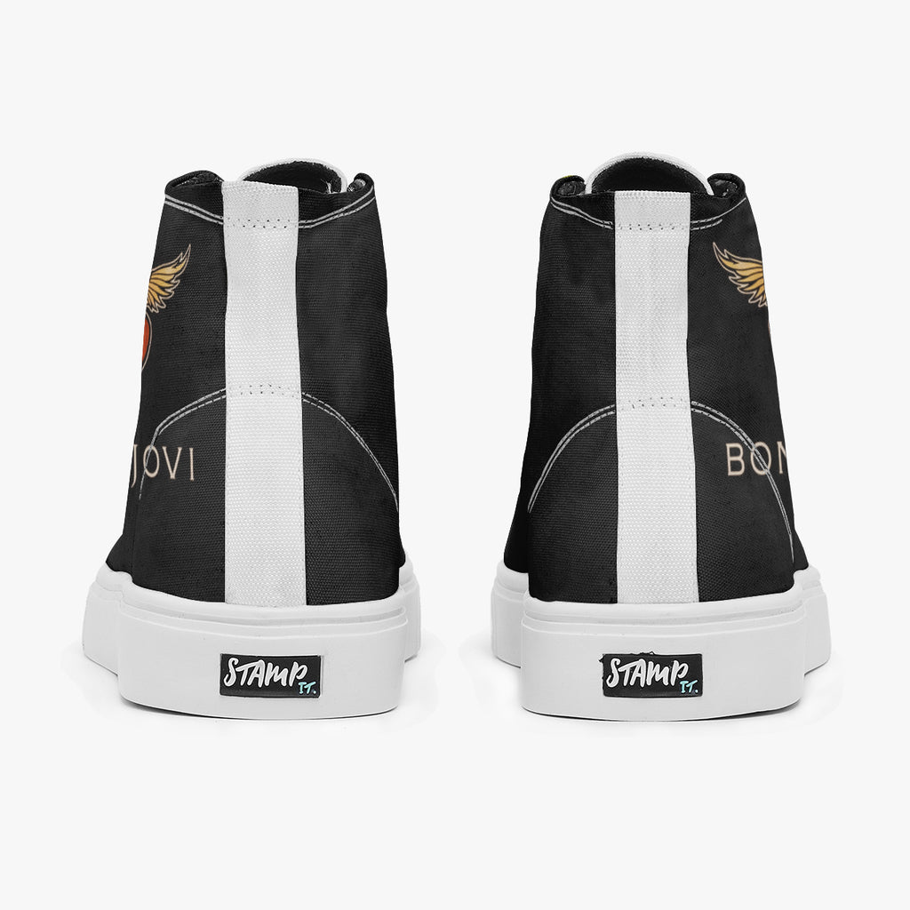 Tênis Cano Alto Preto Banda de Rock Anos 90 Bon Jovi Bandas de Rock, confeccionado em lona, com cores e estampas exclusivas.