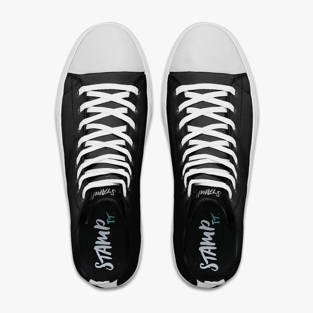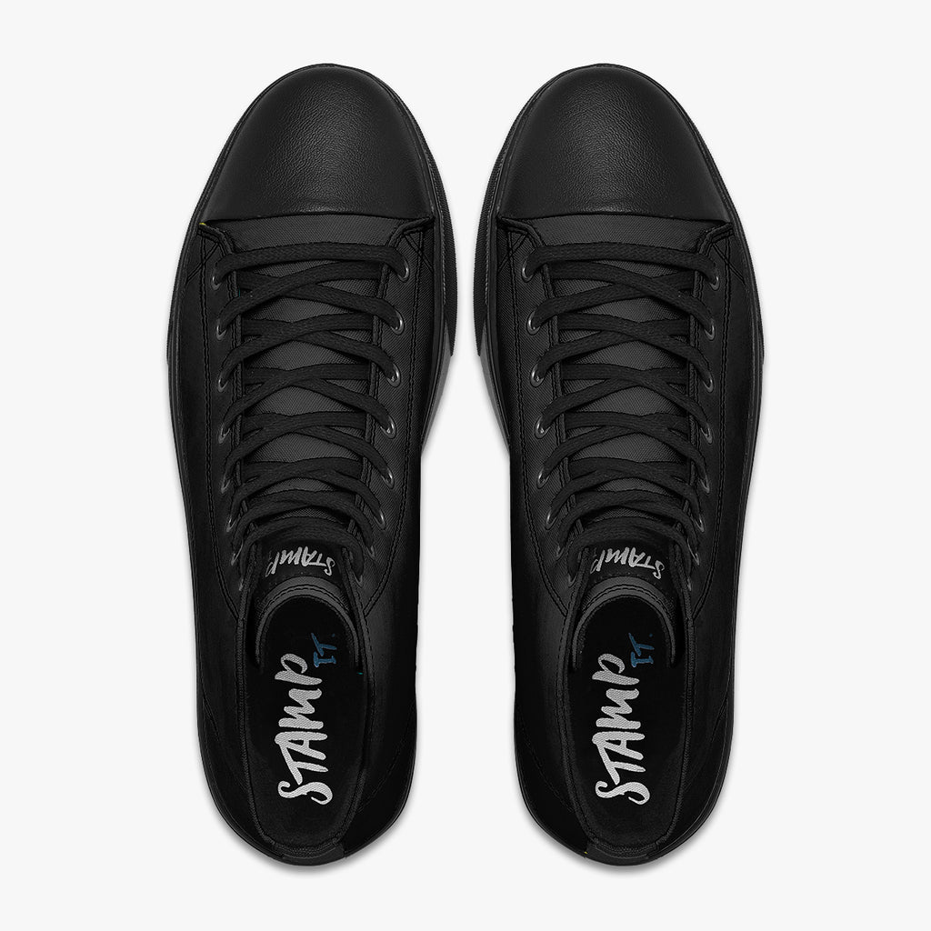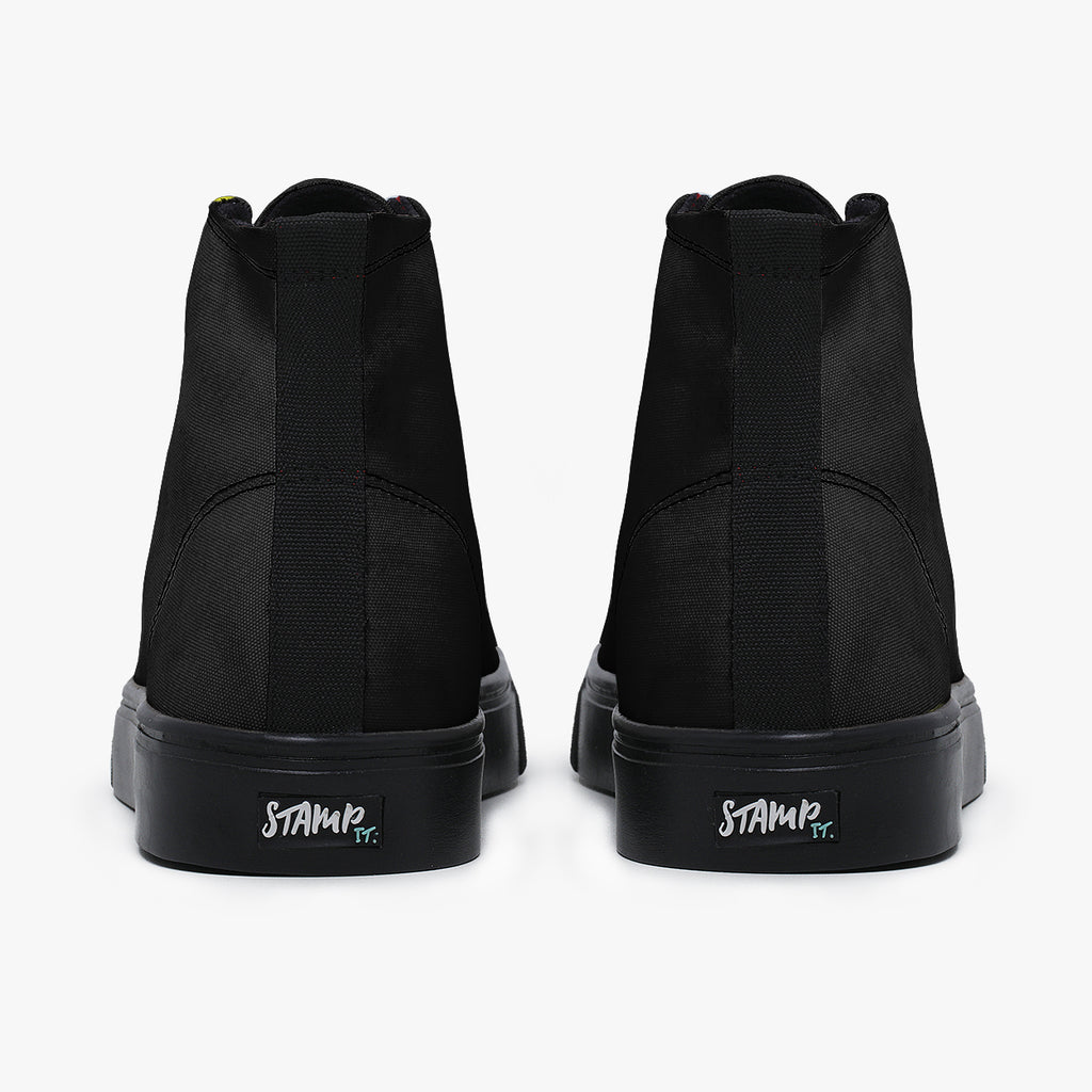 Tênis Cano Alto Preto Básico Black Abstrato, confeccionado em lona, com cores e estampas exclusivas.