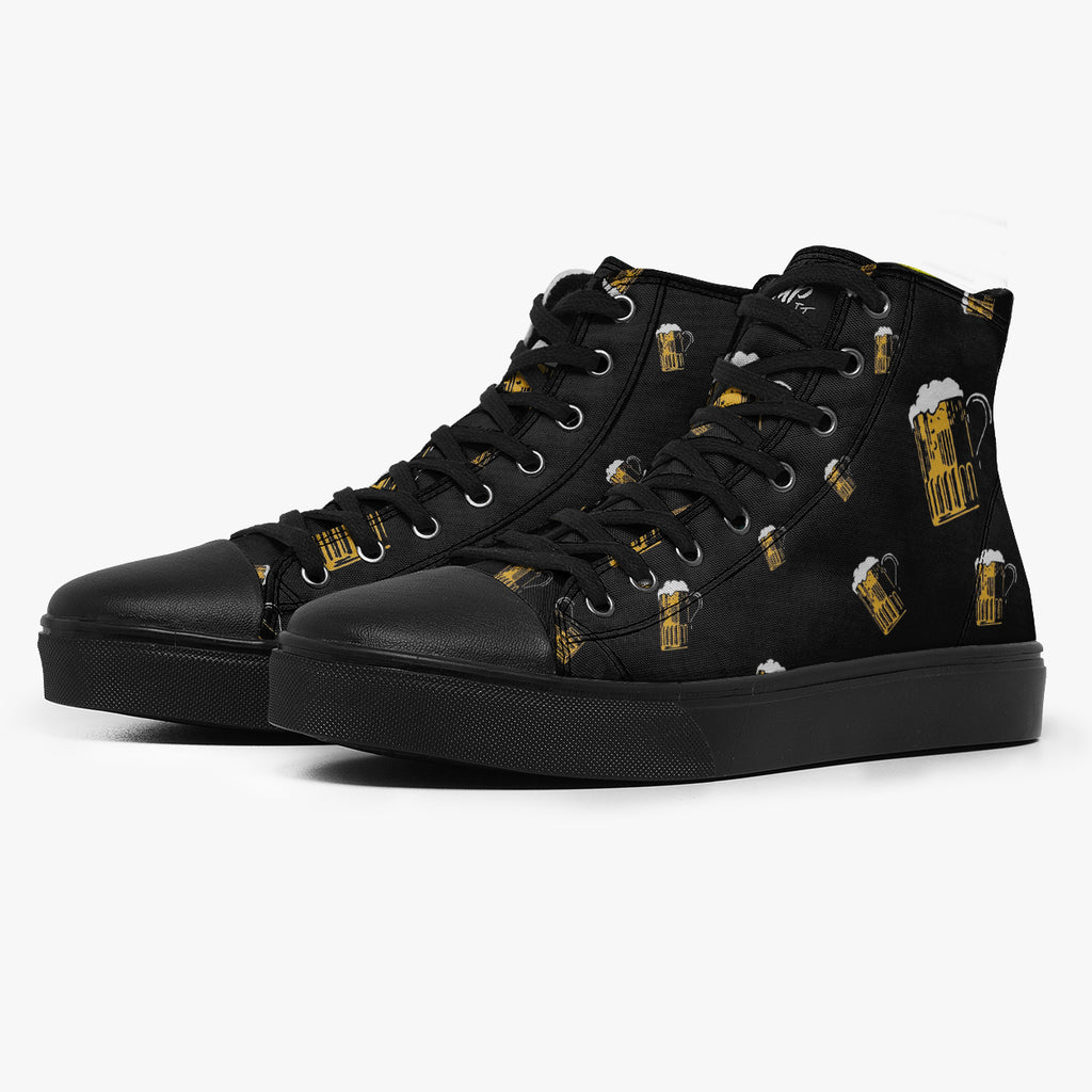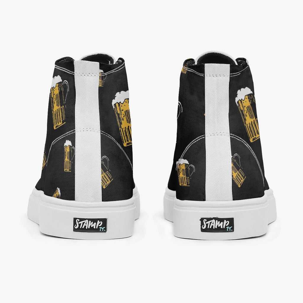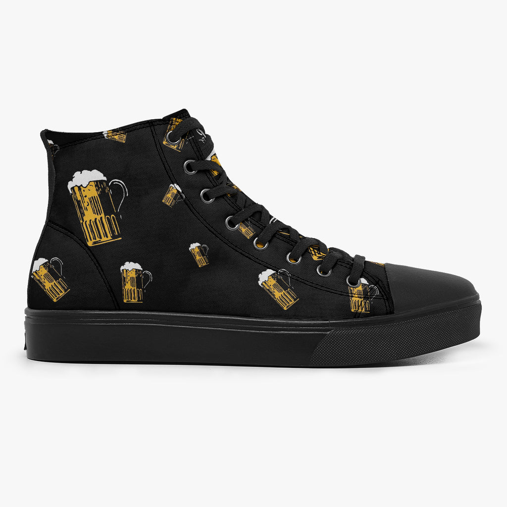 Tênis Cano Alto Preto Caneca Cerveja Abstrato, confeccionado em lona, com cores e estampas exclusivas.