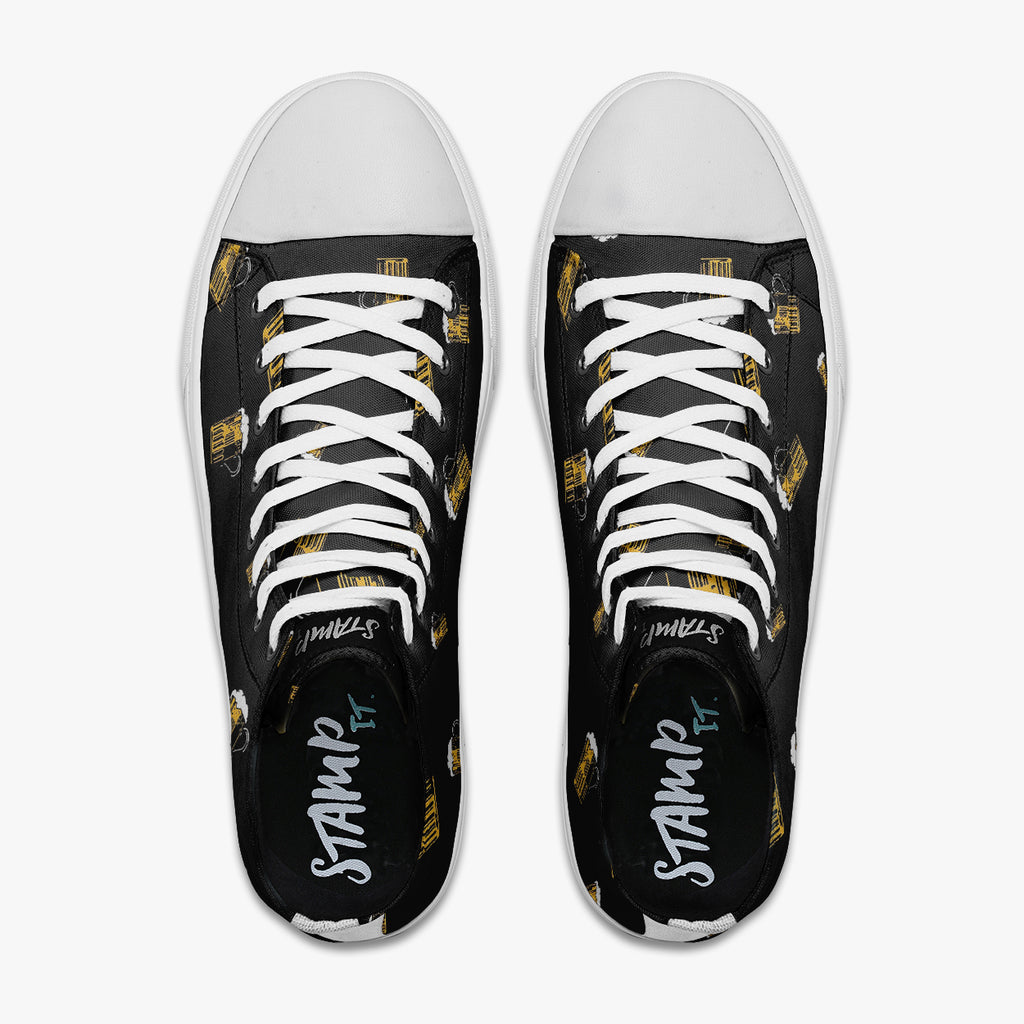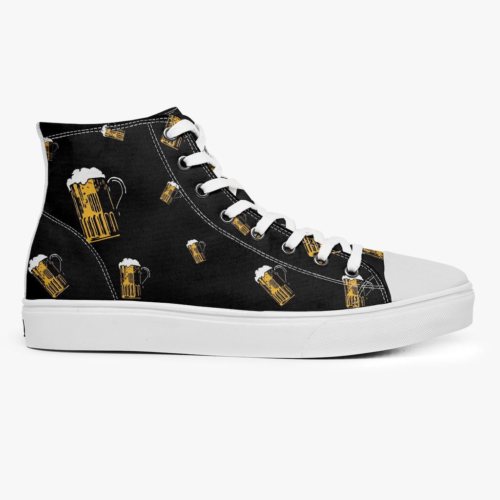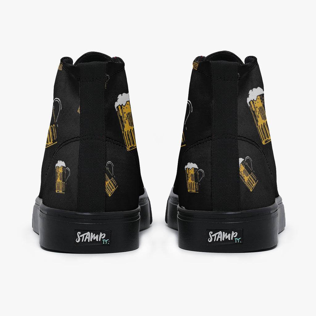 Tênis Cano Alto Preto Caneca Cerveja Abstrato, confeccionado em lona, com cores e estampas exclusivas.