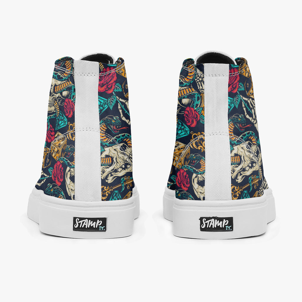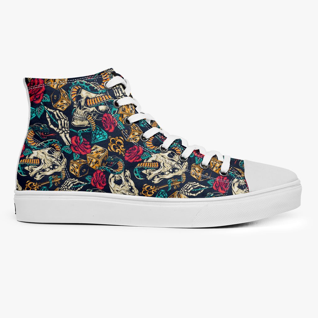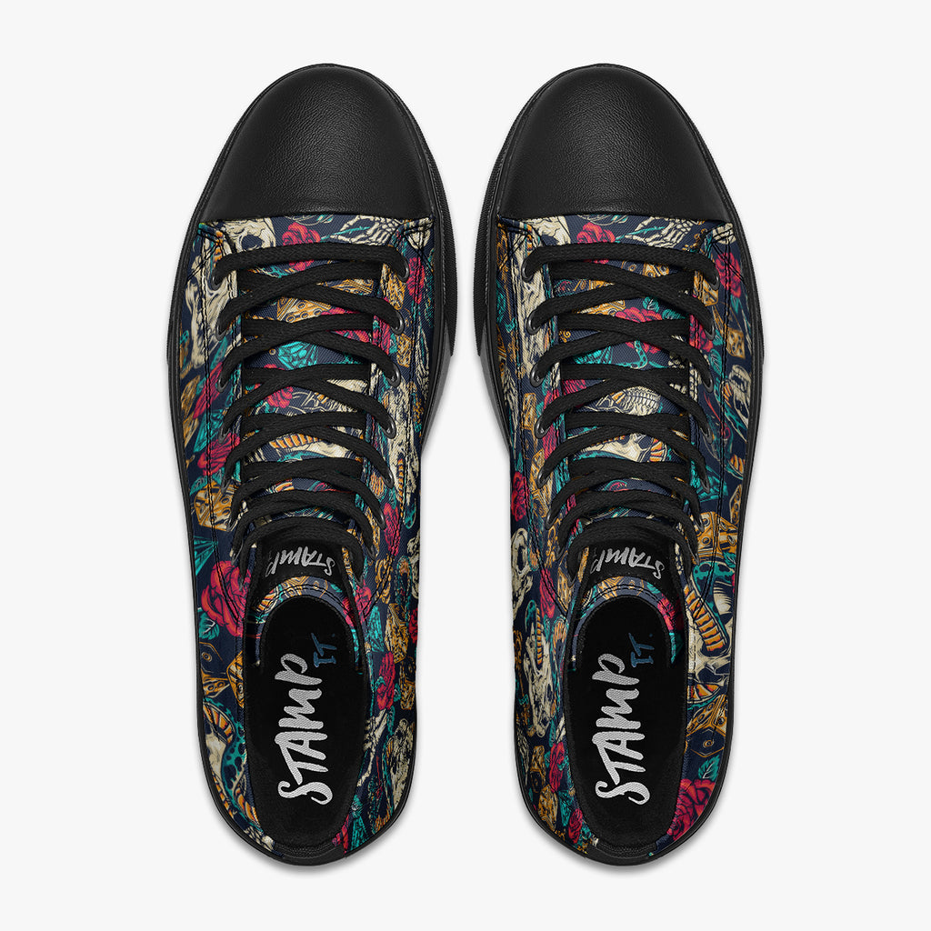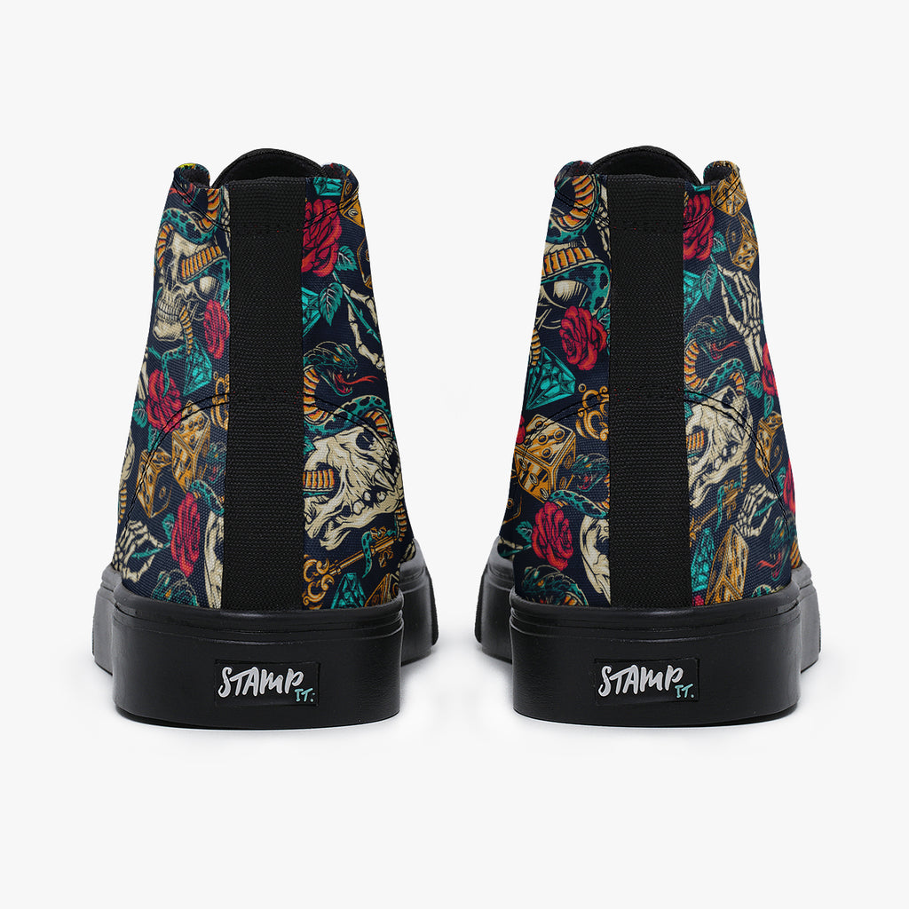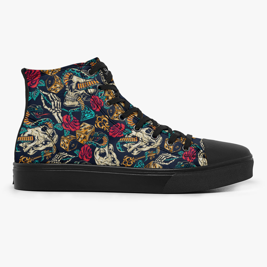 Tênis Cano Alto Preto Caveiras Cobras Dados Rosas Caveiras