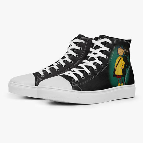 Tênis Cano Alto Preto Coraline e o Mundo Secreto Filmes, confeccionado em lona, com cores e estampas exclusivas.