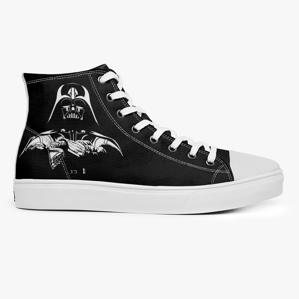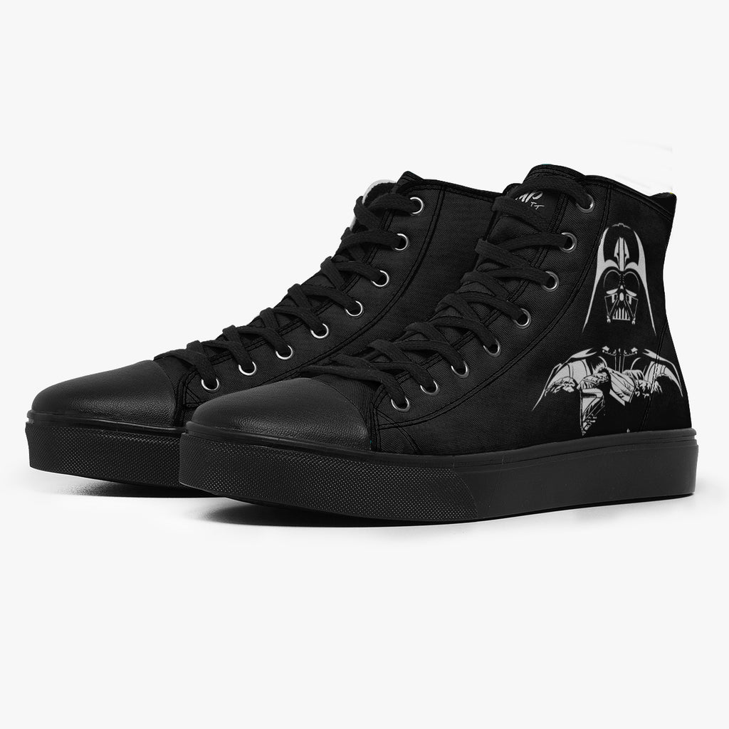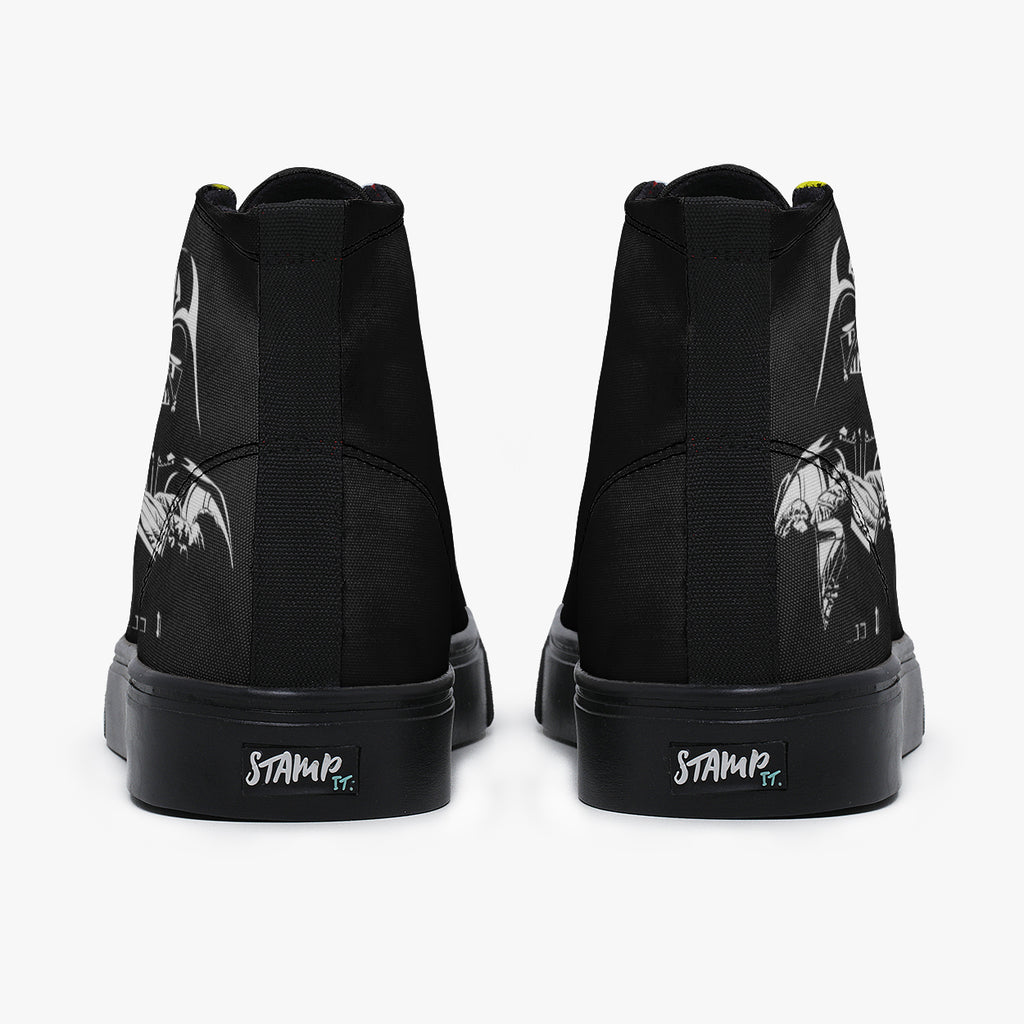 Tênis Cano Alto Preto Darth Vader Encarando Guerra Nas Estrelas Séries e Filmes, confeccionado em lona, com cores e estampas exclusivas.