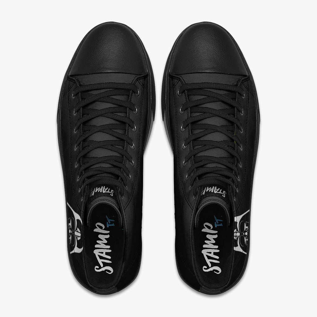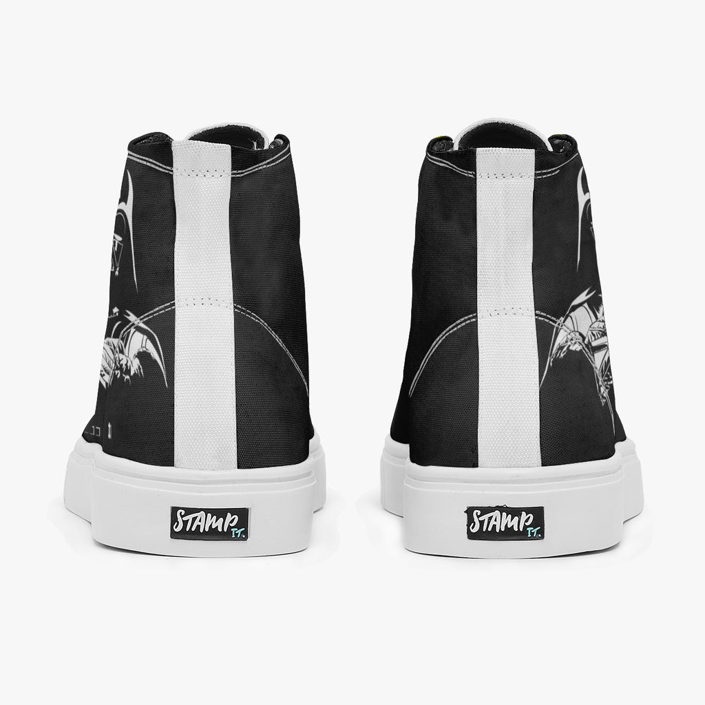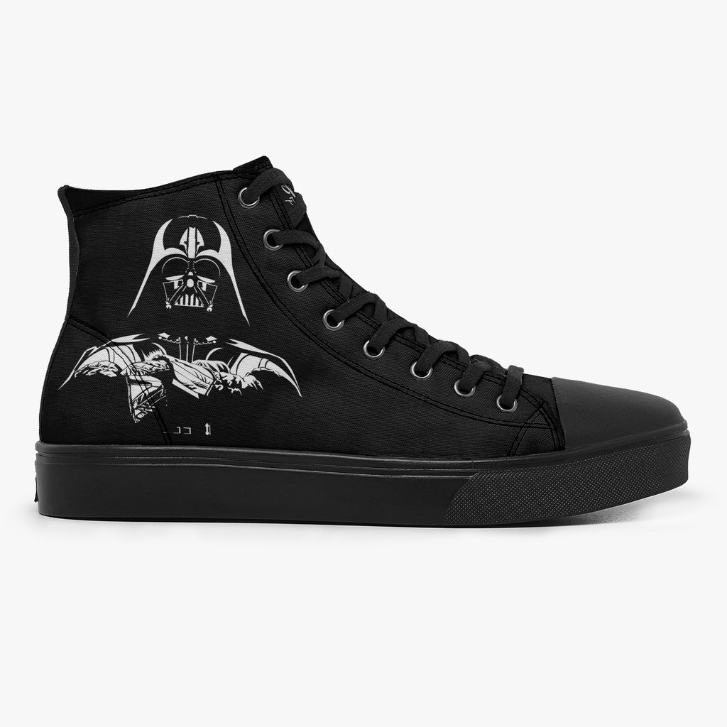 Tênis Cano Alto Preto Darth Vader Encarando Guerra Nas Estrelas Séries e Filmes, confeccionado em lona, com cores e estampas exclusivas.