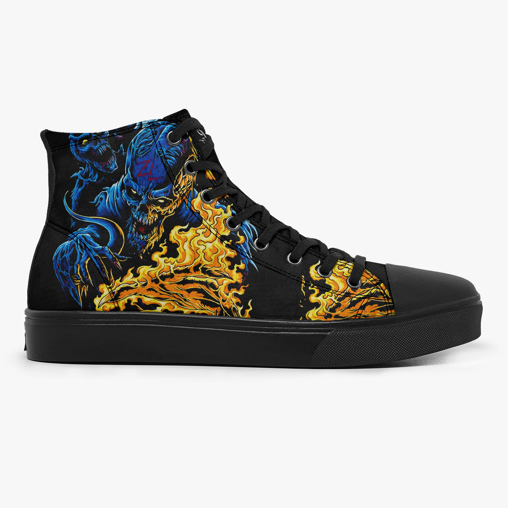 Tênis Cano Alto Preto Fire Dead Man Halloween Caveiras