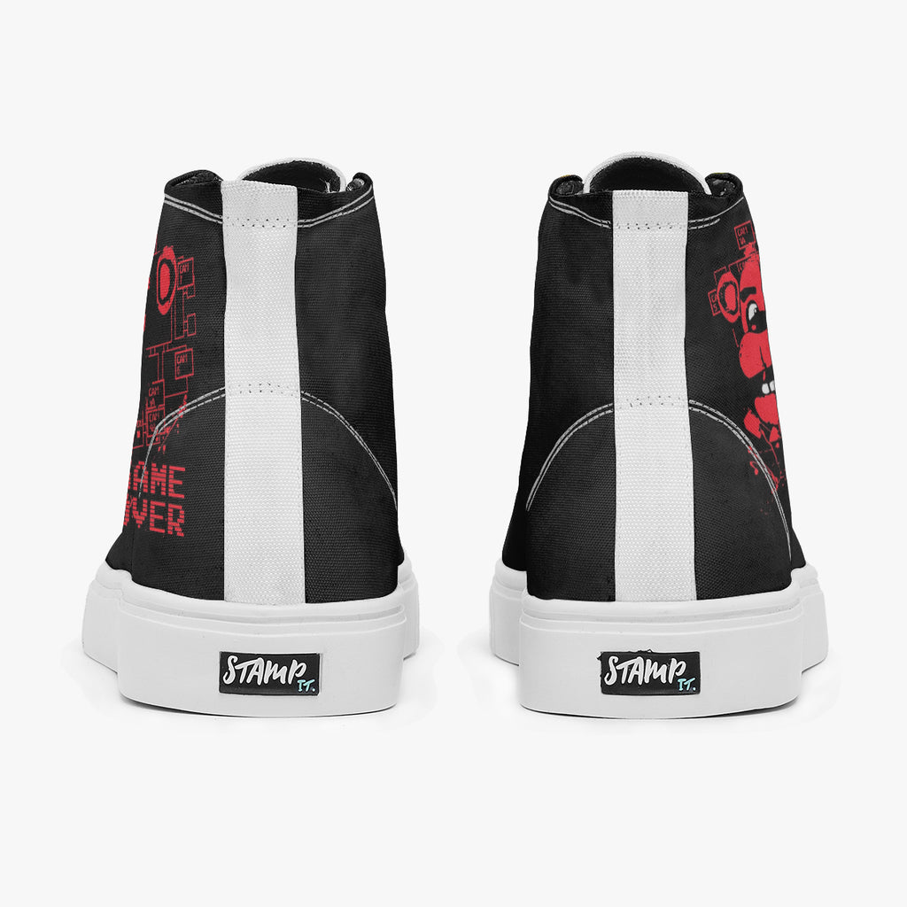 Tênis Cano Alto Preto Game Over Five Nights At Freddy’s Games , confeccionado em lona, com cores e estampas exclusivas.