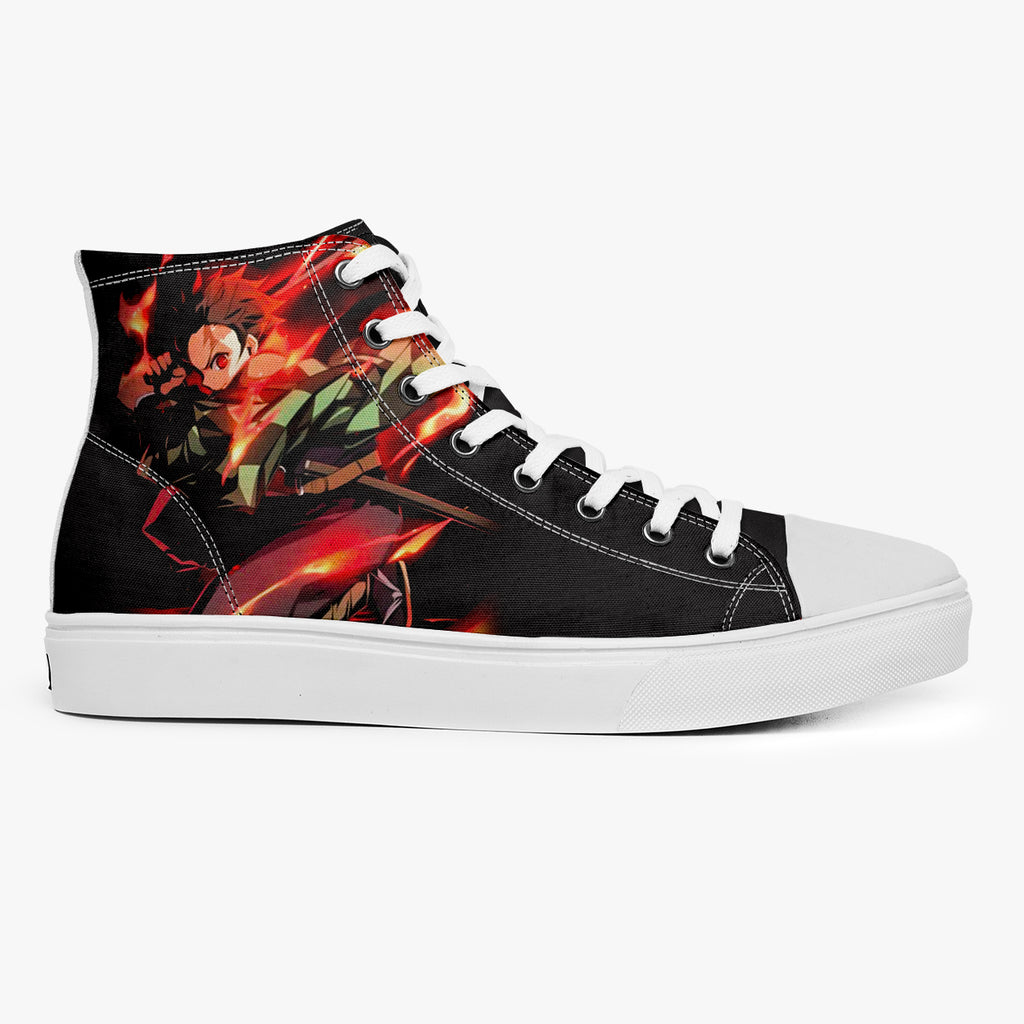 Tênis Cano Alto Preto Kimetsu No Yaiba Demon Slayer Tanjiro Dança do Fogo Anime