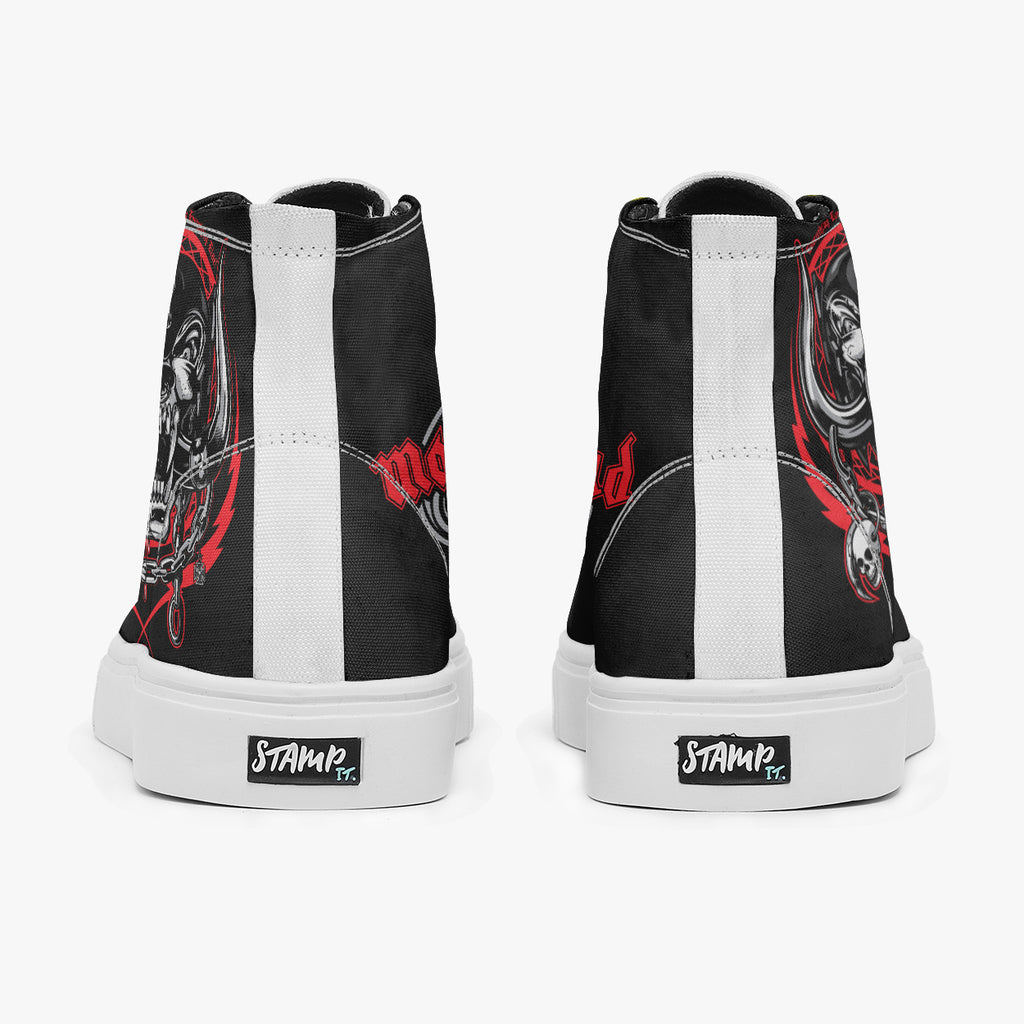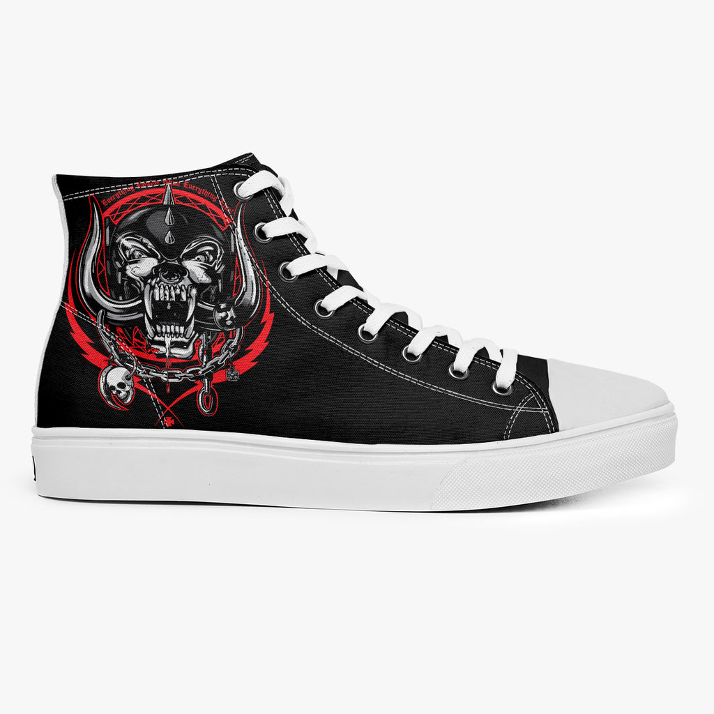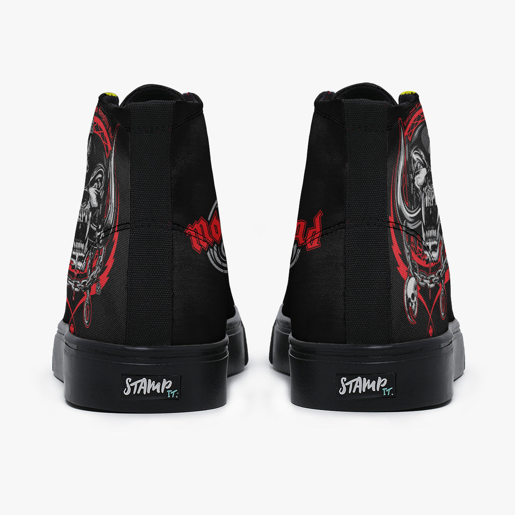 Tênis Cano Alto Preto Motorhead Bandas De Rock, confeccionado em lona, com cores e estampas exclusivas.