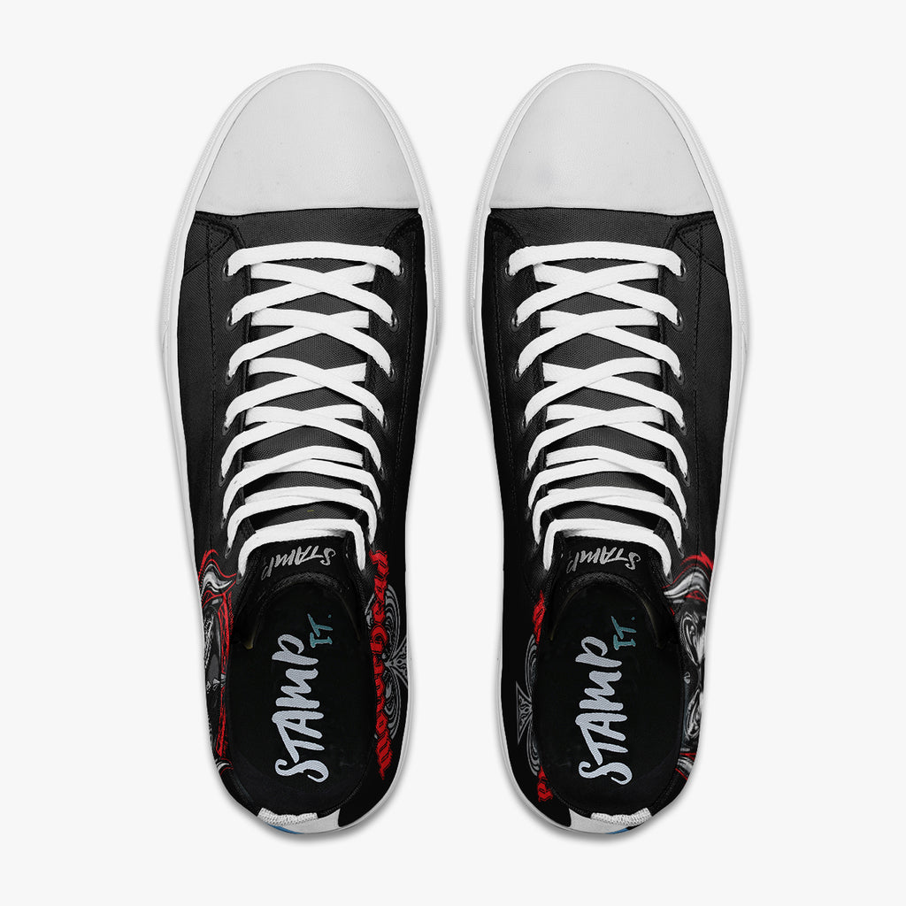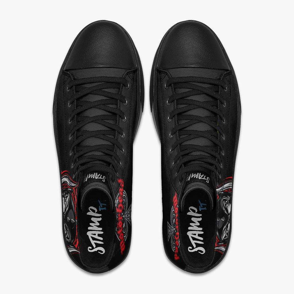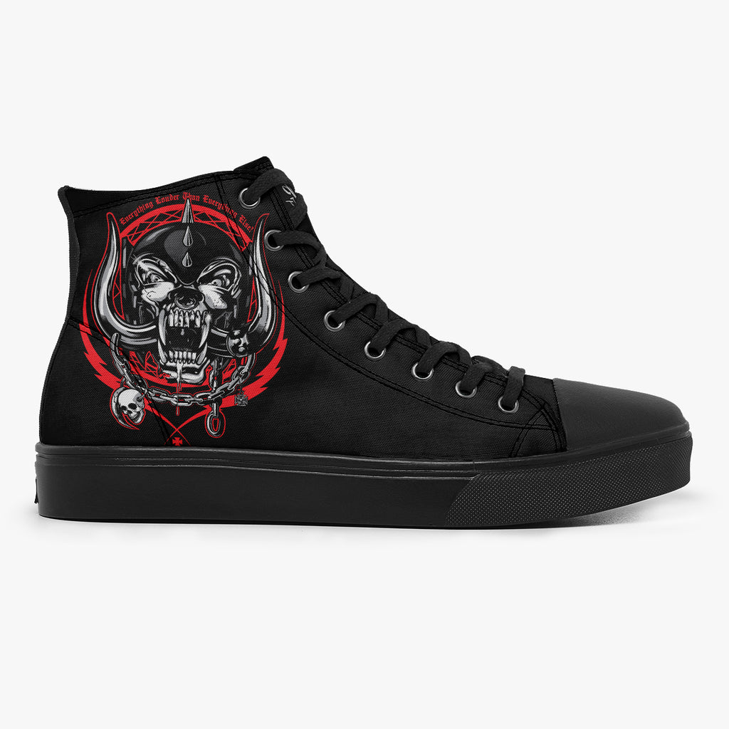 Tênis Cano Alto Preto Motorhead Bandas De Rock, confeccionado em lona, com cores e estampas exclusivas.
