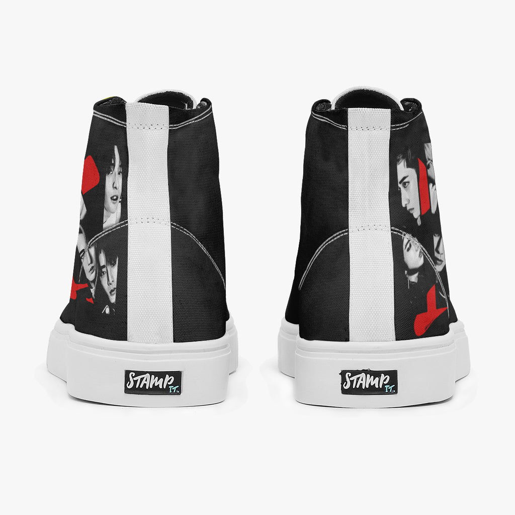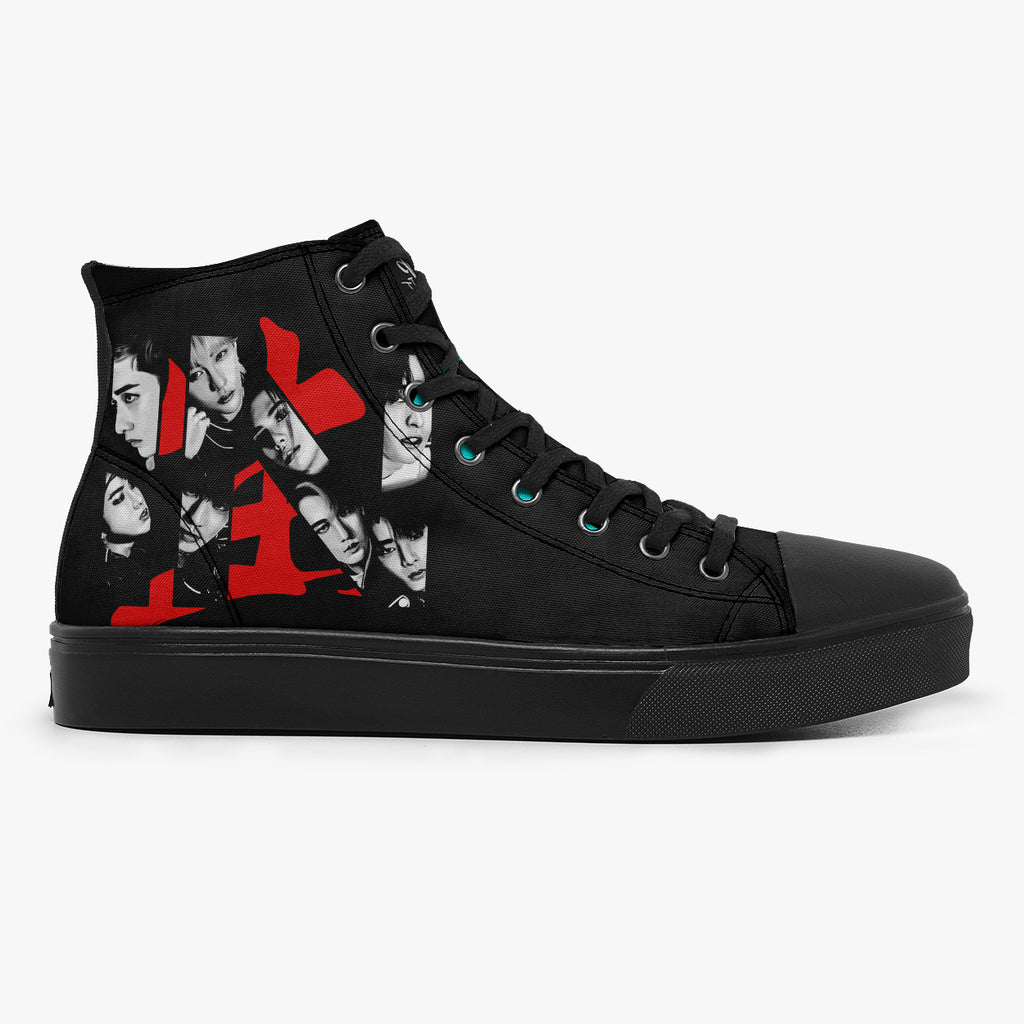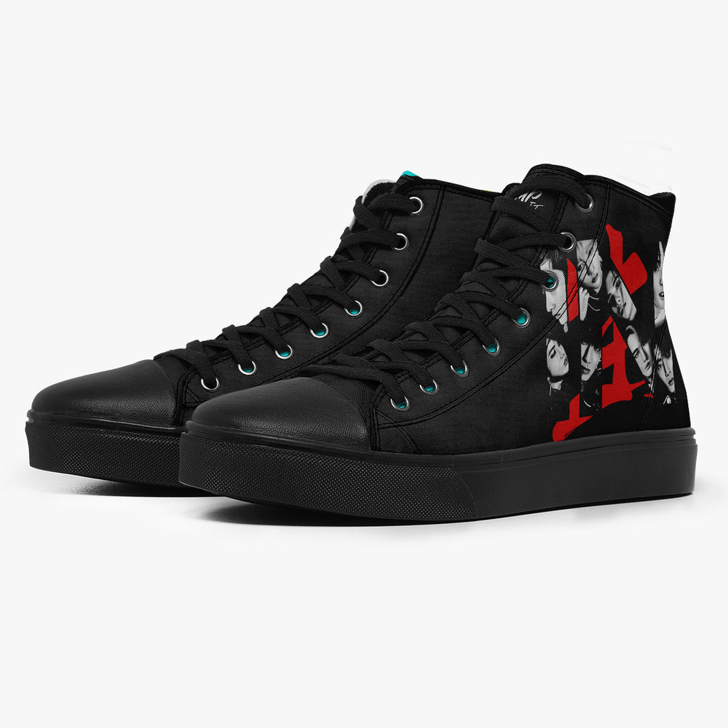 Tênis Cano Alto Preto Stray Kids In Life, confeccionado em lona, com cores e estampas exclusivas.