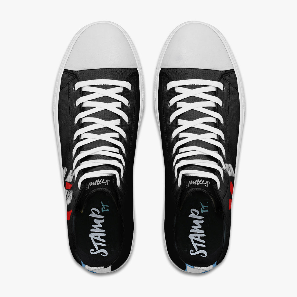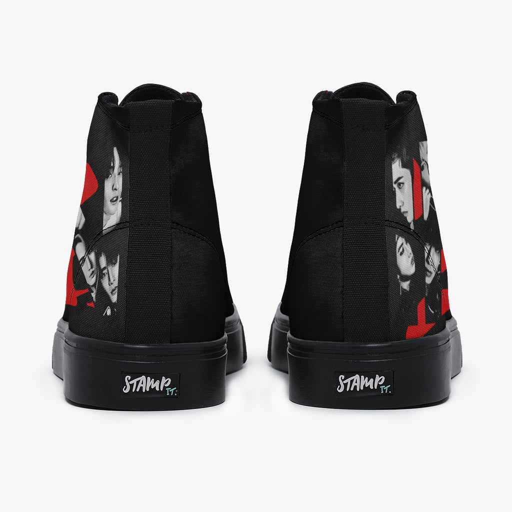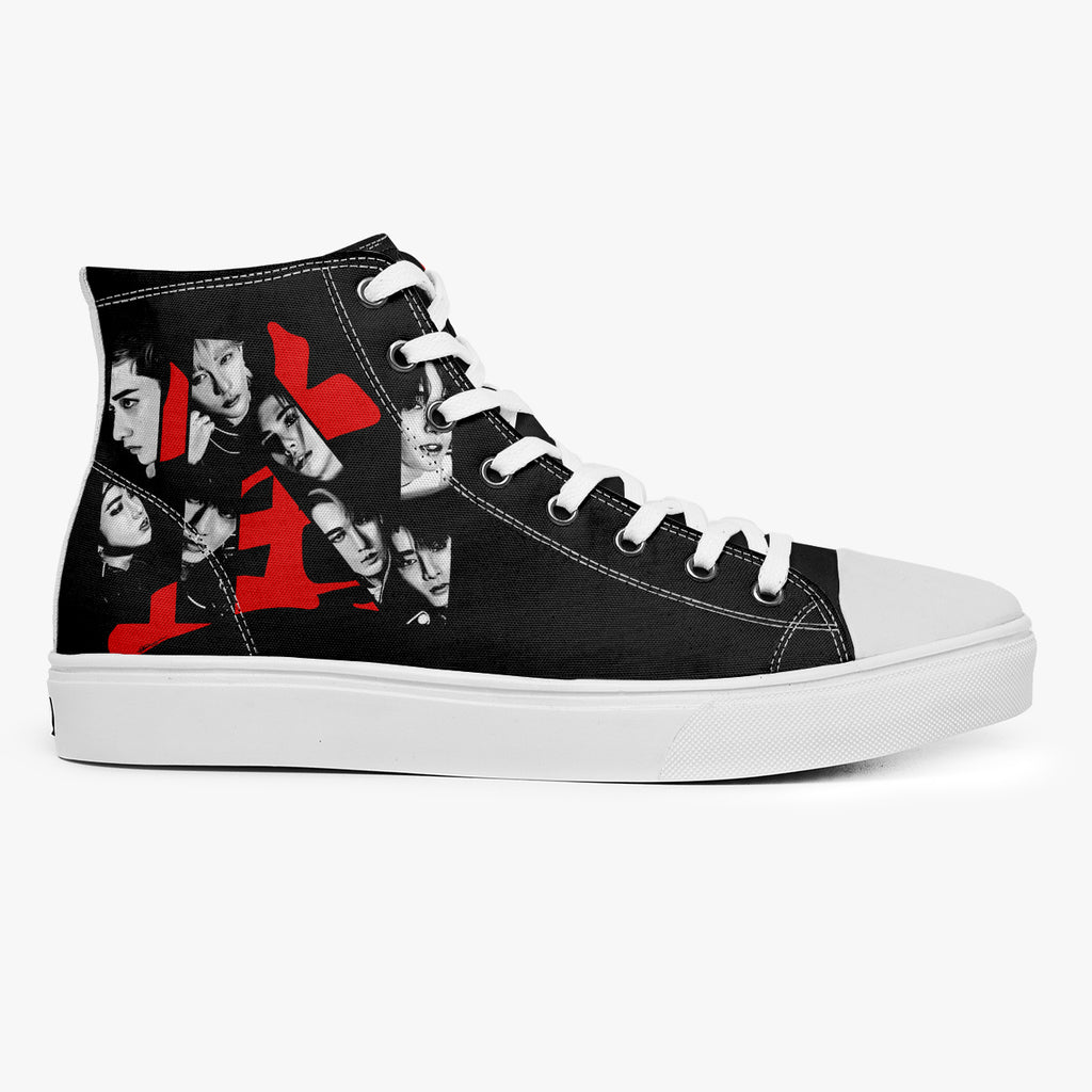 Tênis Cano Alto Preto Stray Kids In Life, confeccionado em lona, com cores e estampas exclusivas.