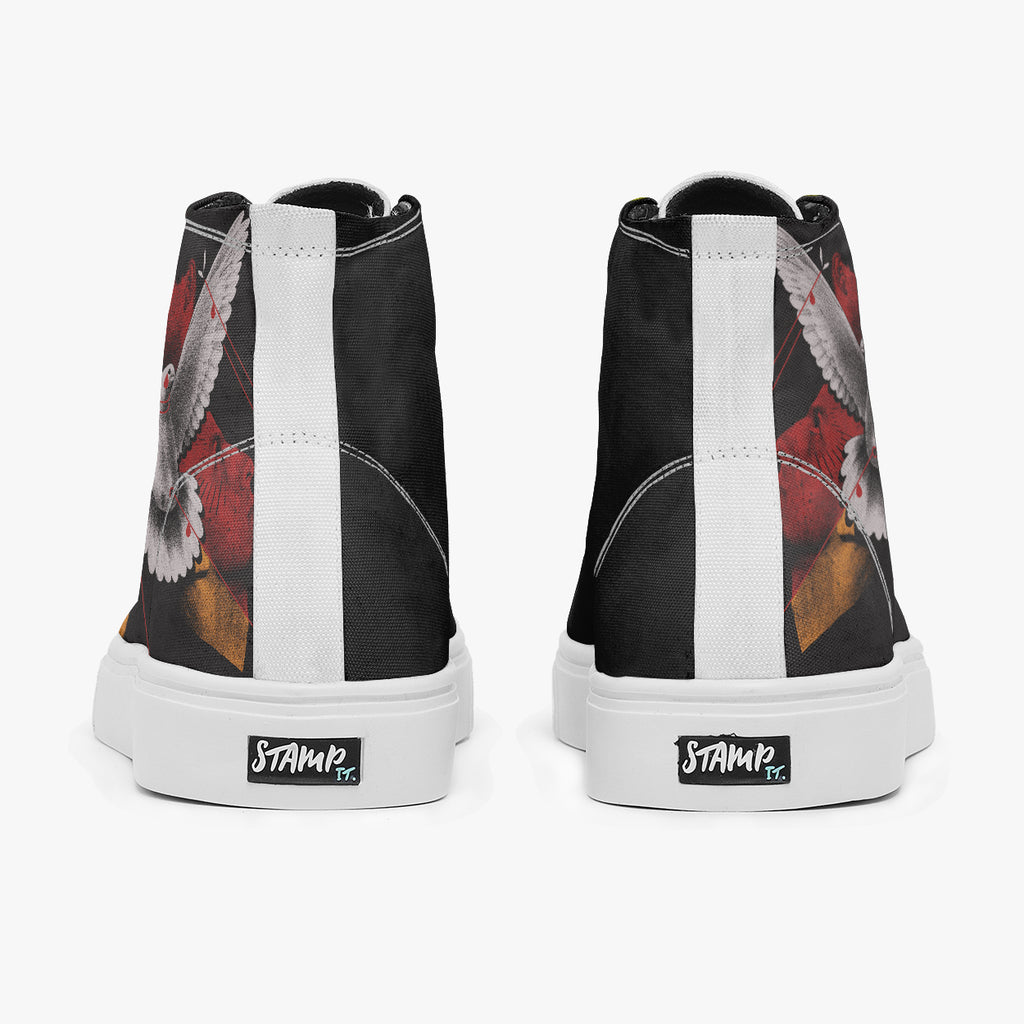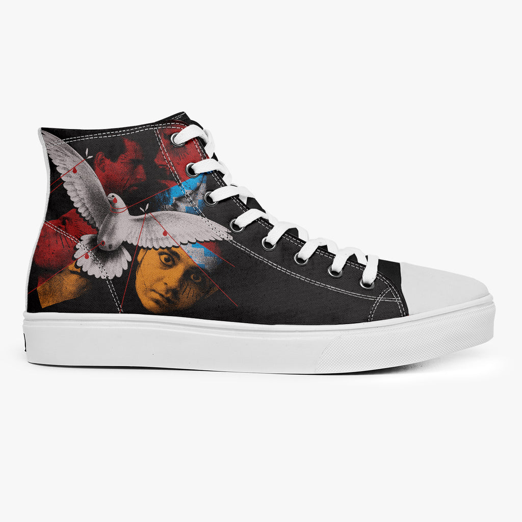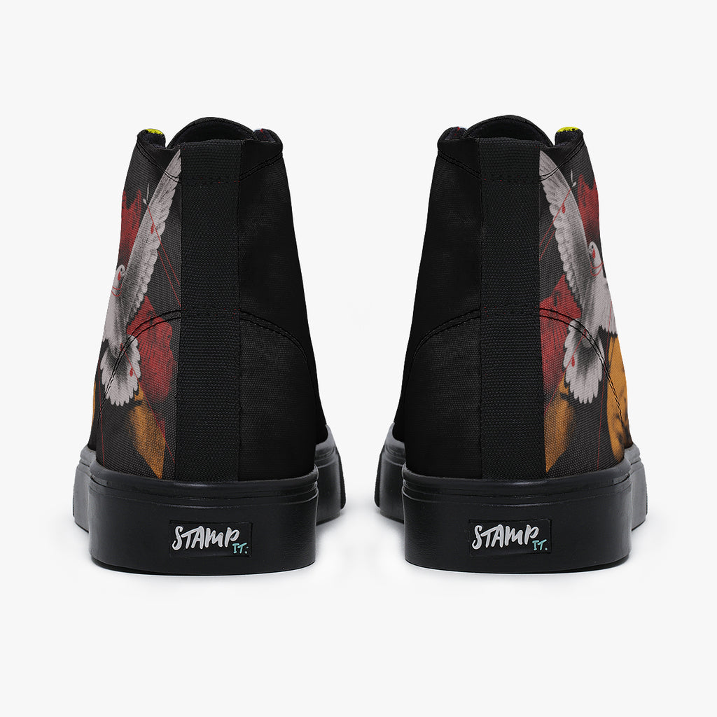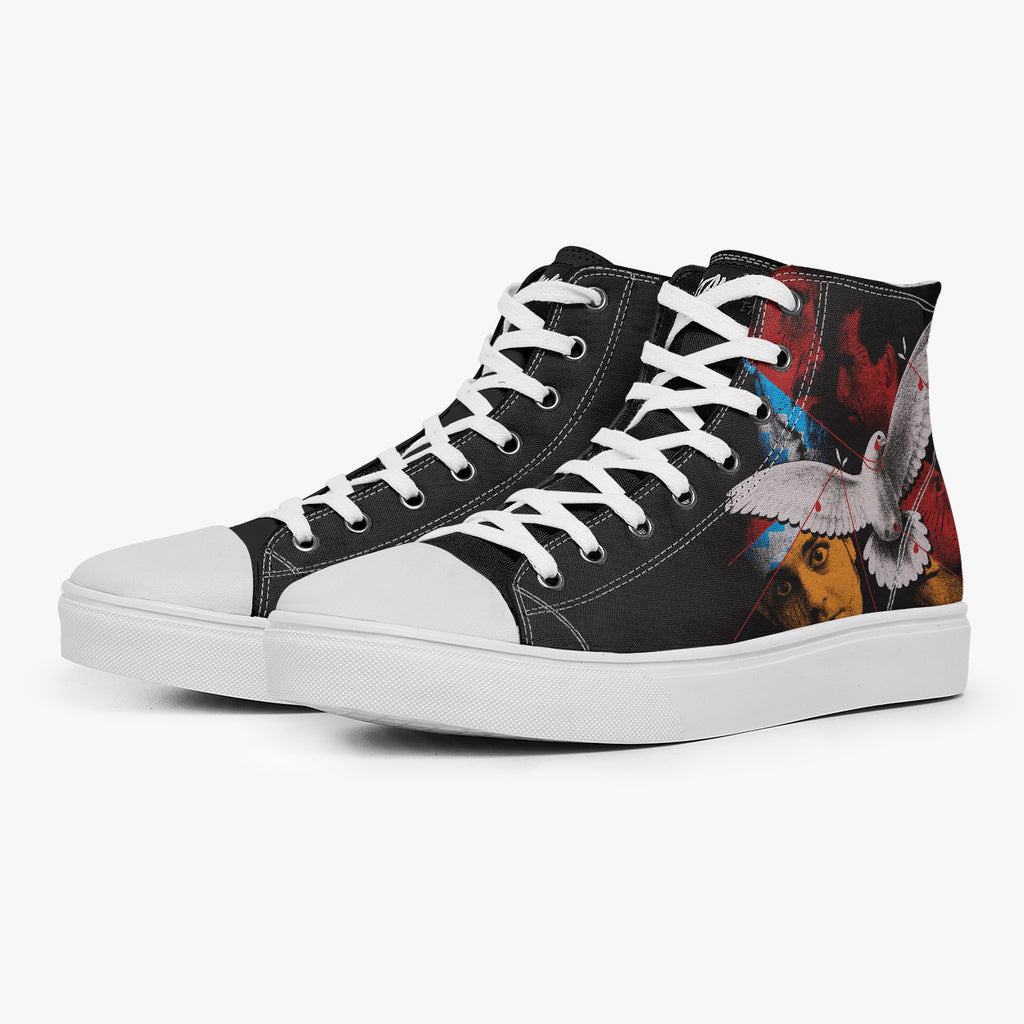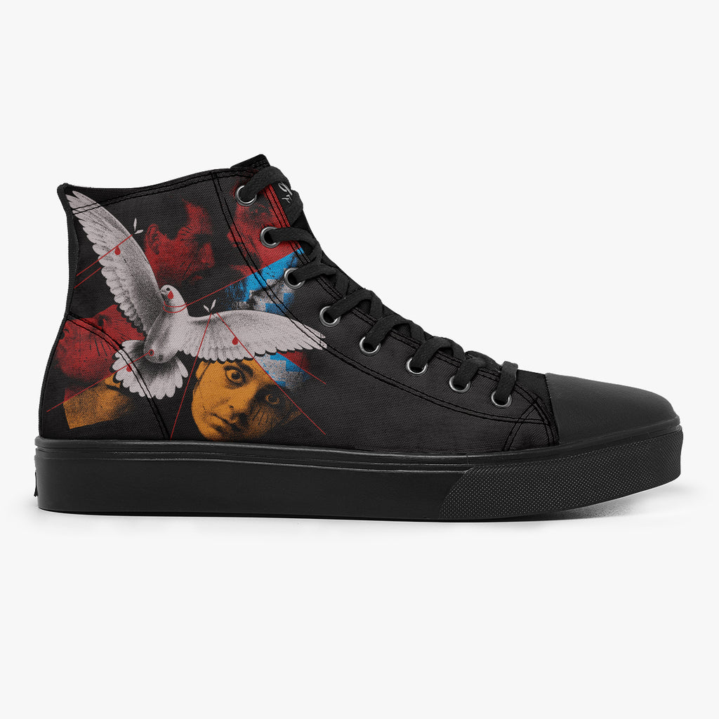Tênis Cano Alto Preto System Of A Down Bandas de Rock, confeccionado em lona, com cores e estampas exclusivas.