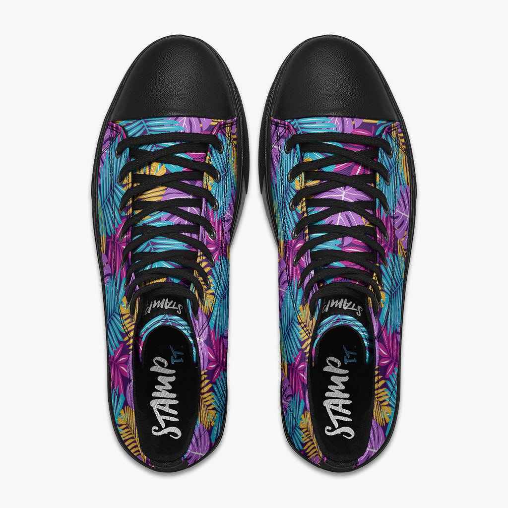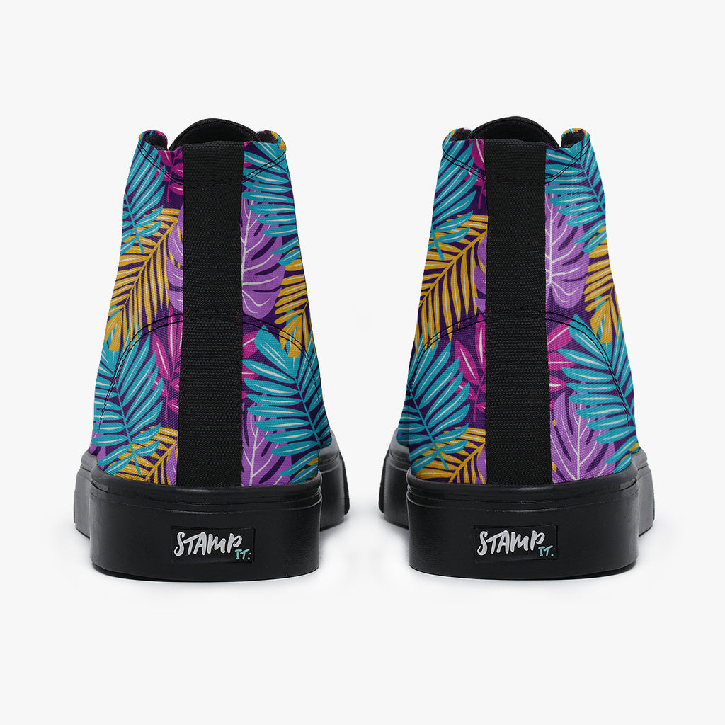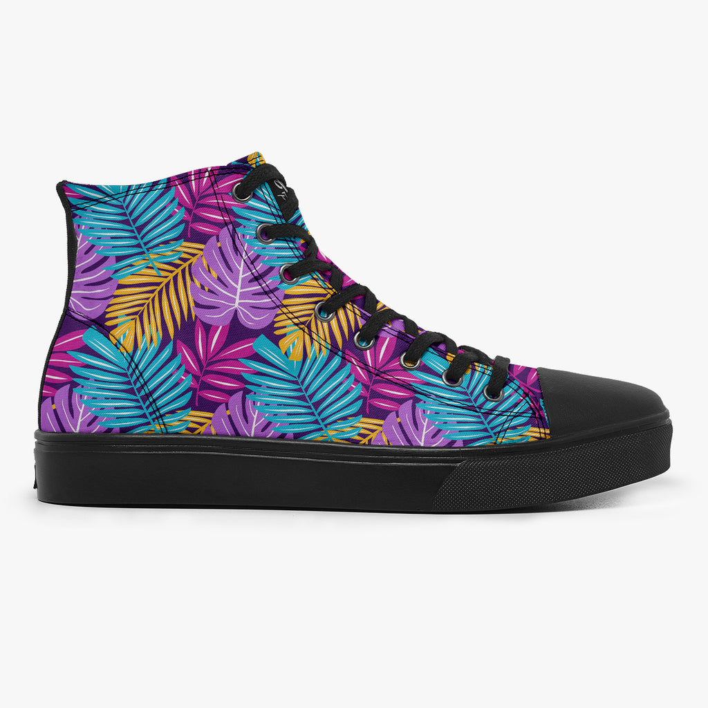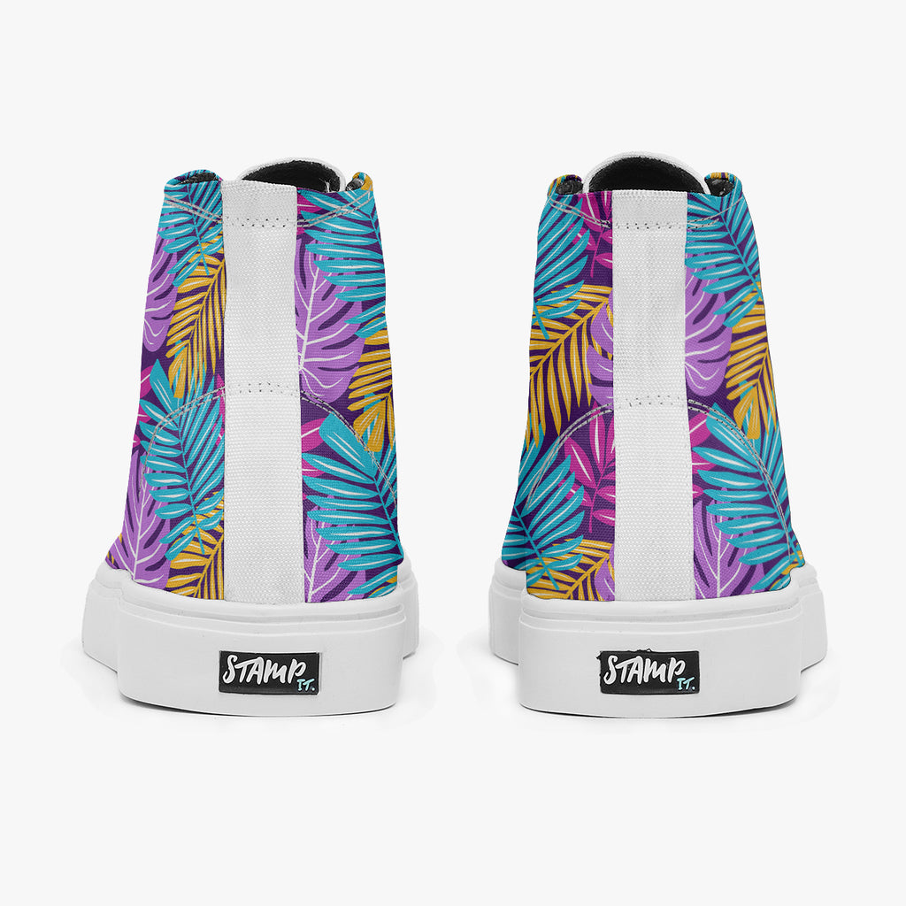 Tênis Cano Alto Roxo Varias Folhas Coloridas Flores e Folhas